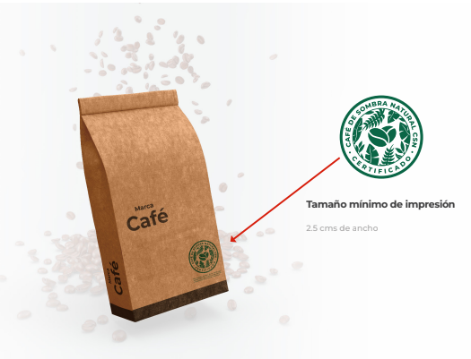 La utilización de la Marca de Certificación "CAFÉ DE SOMBRA NATURAL CSN" debe ajustarse a los colores, tonos y la proporción especificados establecidos en el Anexo C "Manual de Identidad Gráfica". Las personas usuarias autorizadas pueden hacer uso de la marca en embalajes secundarios de productos, con la condición de que se incluya el texto siguiente, de una manera que se declare que la Marca de certificación "CAFÉ DE SOMBRA NATURAL CSN" y el texto estén ligados: "Este producto proviene de un cafetal bajo sombra natural, cuyas prácticas son amigables con el medio ambiente y cumplen reglas de uso de la Marca de Certificación Registrada "CAFÉ DE SOMBRA NATURAL CSN". Agregando la vigencia de uso de la marca y la leyenda "usuario autorizado", seguido del folio de persona productora.