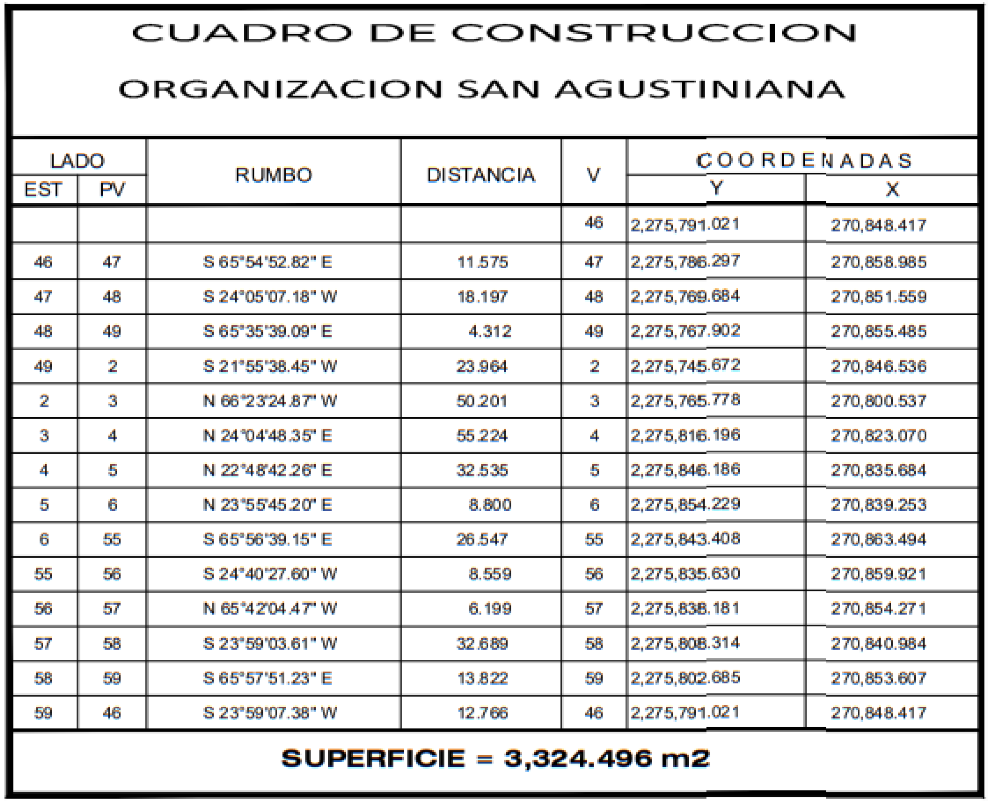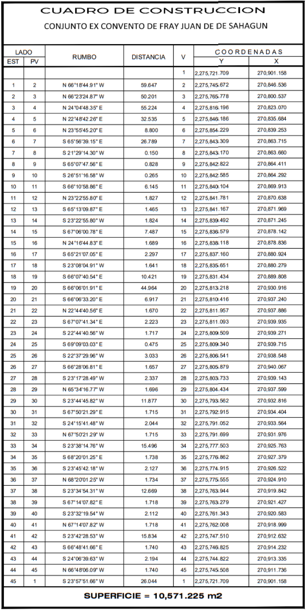 III.- Que el inmueble materia del presente ordenamiento tiene una superficie de 10,571.225 metros cuadrados, cuyas medidas y colindancias se consignan en el plano topográfico número TOPO PB 1, aprobado y registrado por la Dirección de Registro Público y Control Inmobiliario, adscrita a la Dirección General de Política y Gestión Inmobiliaria de este Instituto, bajo el número DRPCI/7063/11-1549-6/2022/T, de fecha 19 de abril de 2022, cuya descripción poligonal a continuación se describe: