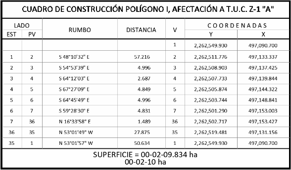 21. Que el comisionado técnico del RAN y el comisionado agrario de la Sedatu rindieron el "informe de comisión de Trabajos Técnicos e Informativos de Expropiación", de 25 de marzo de 2024, en el que señalan que la superficie real a expropiar al ejido "Becal", municipio de Calkiní, estado de Campeche es de 00-09-93 ha de uso común, que se describen en el siguiente plano y cuadros de construcción:
