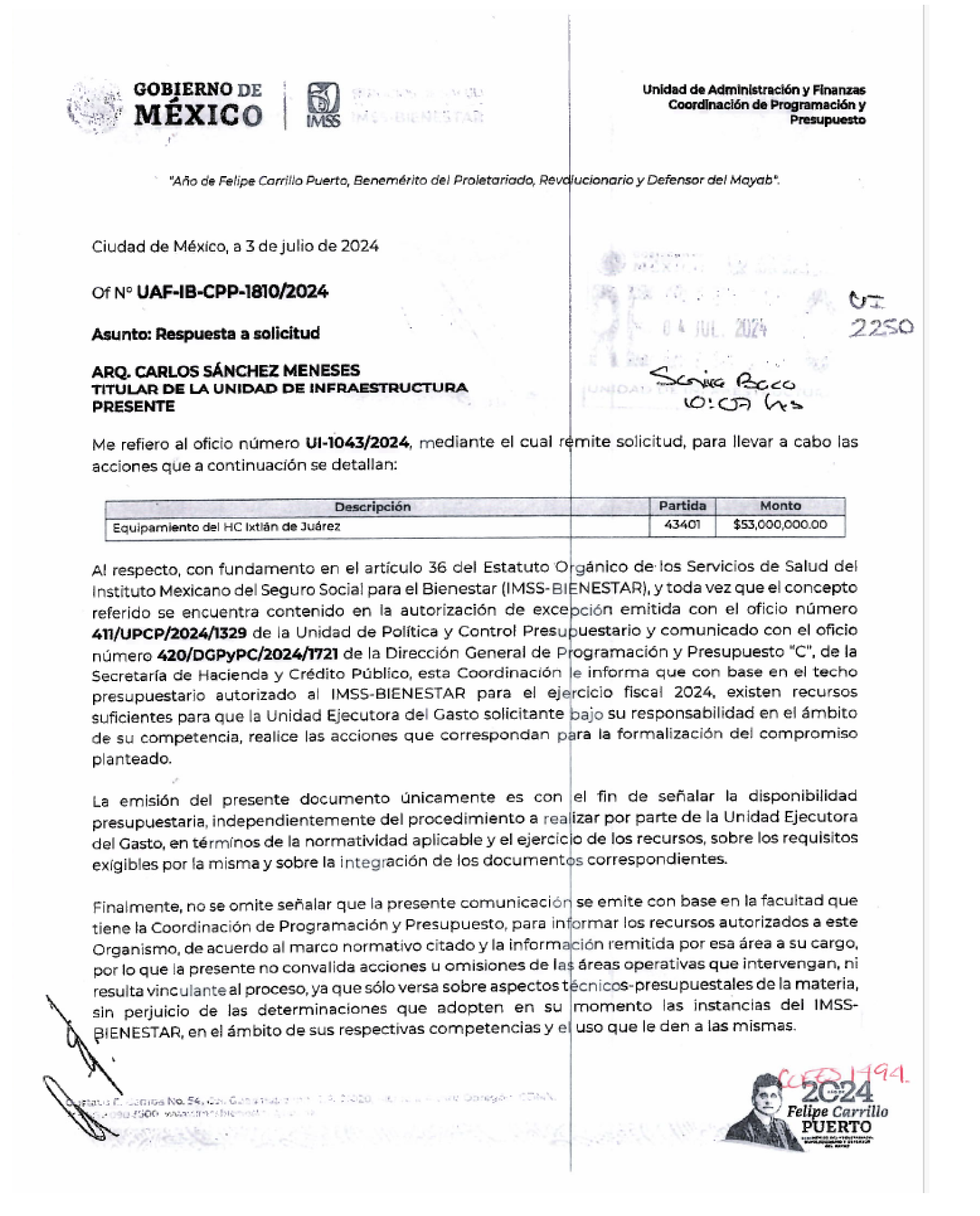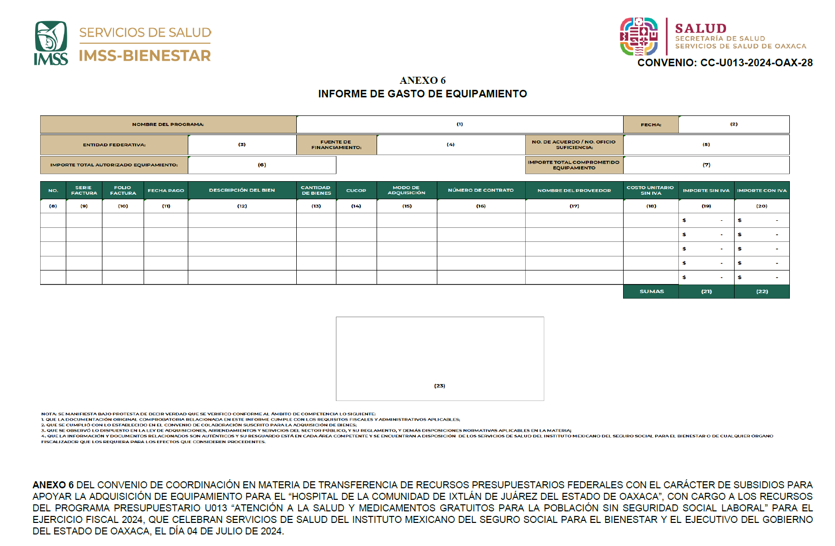 | 1 | SIN CLUES | HOSPITAL INTEGRAL (COMUNITARIO) | DOMICILIO CONOCIDO, C.P.68725 | IXTLÁN DE JUÁREZ | $53,000,000.00 |