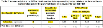 | | 2 | Como dice: 6.9 Iluminación El diseño de las plazas de cobro debe contemplar una adecuada iluminación tanto en la entrada como en la salida de las mismas, así como en los carriles de cobro, a fin de mitigar los riesgos de seguridad que se agravan en condiciones nocturnas o por condiciones meteorológicas adversas. El diseño debe proporcionar el nivel de luminancia necesario a fin de que el usuario identifique los carriles de cobro abiertos y seleccione el carril apropiado para efectuar el pago. Asimismo, el diseño de la iluminación de los carriles con pago manual y por telepeaje debe ser suficiente para que el señalamiento, las pantallas, el equipo de control de tránsito y el cobro del peaje, resulten siempre visibles. En las zonas de aceleración y de transición de salida, la iluminación debe proporcionar una transición suave para el usuario que sale de la plaza, mismo que debe simultáneamente acelerar y entrelazarse con otros vehículos que salen de la misma, antes de unirse a cualquier carril de la carretera por la que continúan. En el caso de los carriles de cobro, el diseño evitará el deslumbramiento y proporcionará una iluminación uniforme a través de dicho carril. Tanto para los tramos de aproximación a las plataformas de arribo como para dichas plataformas, el diseño de iluminación debe considerar lo establecido en la NOM-013-ENER-2013, Eficiencia energética para sistemas de alumbrado en vialidades o la que la sustituya. Como debe decir: 6.9 Iluminación El diseño de las plazas de cobro debe contemplar una adecuada iluminación tanto en la entrada como en la salida de las mismas, así como en los carriles de cobro, a fin de mitigar los riesgos de seguridad que se agravan en condiciones nocturnas o por condiciones meteorológicas adversas. El diseño debe proporcionar el nivel de luminancia necesario a fin de que el usuario identifique los carriles de cobro abiertos y seleccione el carril apropiado para efectuar el pago. Asimismo, el diseño de la iluminación de los carriles con pago manual y por telepeaje debe ser suficiente para que el señalamiento, las pantallas, el equipo de control de tránsito y el cobro del peaje, resulten siempre visibles. En las zonas de aceleración y de transición de salida, la iluminación debe proporcionar una transición suave para el usuario que sale de la plaza, mismo que debe simultáneamente acelerar y entrelazarse con otros vehículos que salen de la misma, antes de unirse a cualquier carril de la carretera por la que continúan. En el caso de los carriles de cobro, el diseño evitará el deslumbramiento y proporcionará una iluminación uniforme a través de dicho carril. Tanto para los tramos de aproximación a las plataformas de arribo como para dichas plataformas, el diseño de iluminación debe considerar lo establecido en las normas NOM-013-ENER-2013, Eficiencia energética para sistemas de alumbrado en vialidades y NOM-031-ENER-2019, Eficiencia energética para luminarios con led para iluminación de vialidades y áreas exteriores públicas. Especificaciones y métodos de pruebas. Justificación: La NOM-013-ENER-2013 es el marco normativo donde se establecen los niveles de iluminancia mínima promedio y valor máximo de la relación de uniformidad promedio para vialidades de acuerdo al tipo de pavimento. Ejemplo en la tabla 2 de la NOM-013-ENER-2013 se especifica el valor de luxes y su relación de uniformidad que debe entregar una luminaria en una autopista ![]() Pero la NOM-013-ENER-2013 no establece los límites de deslumbramiento y toda vez, que la especificación 6.9 menciona "contemplar una adecuada iluminación tanto en la entrada como en la salida", es muy importante que considerar el deslumbramiento que generan los luminarios de LEDs y que estos deben cumplir con la tabla 4 de la NOM-031-ENER-2019 ![]() | Se considera pertinente agregar la referencia de la NOM-031-ENER-2019, Eficiencia energética para luminarios con led para iluminación de vialidades y áreas exteriores públicas. Especificaciones y métodos de pruebas, toda vez que dicha NOM considera el deslumbramiento que generan los luminarios tipo LEDs, cuando se proyecte su uso en las plazas de cobro. Procede | 6.9. Iluminación El diseño de las plazas de cobro debe contemplar una adecuada iluminación tanto en la entrada como en la salida de las mismas, así como en los carriles de cobro, a fin de mitigar los riesgos de seguridad que se agravan en condiciones nocturnas o por condiciones meteorológicas adversas. El diseño debe proporcionar el nivel de luminancia necesario a fin de que el usuario identifique los carriles de cobro abiertos y seleccione el carril apropiado para efectuar el pago. Asimismo, el diseño de la iluminación de los carriles con pago manual y por telepeaje debe ser suficiente para que el señalamiento, las pantallas, el equipo de control de tránsito y el cobro del peaje, resulten siempre visibles. En las zonas de aceleración y de transición de salida, la iluminación debe proporcionar una transición suave para el usuario que sale de la plaza, mismo que debe simultáneamente acelerar y entrelazarse con otros vehículos que salen de la misma, antes de unirse a cualquier carril de la carretera por la que continúan. En el caso de los carriles de cobro, el diseño evitará el deslumbramiento y proporcionará una iluminación uniforme a través de dicho carril. Tanto para los tramos de aproximación a las plataformas de arribo como para dichas plataformas, el diseño de iluminación debe considerar lo establecido en las normas NOM-013-ENER-2013, Eficiencia energética para sistemas de alumbrado en vialidades y NOM-031-ENER-2019, Eficiencia energética para luminarios con led para iluminación de vialidades y áreas exteriores públicas. Especificaciones y métodos de pruebas, o las que las sustituyan. |