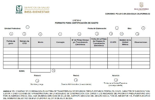 ANEXO 6 DEL CONVENIO DE COORDINACIÓN EN MATERIA DE TRANSFERENCIA DE RECURSOS PRESUPUESTARIOS FEDERALES CON EL CARÁCTER DE SUBSIDIOS PARA LLEVAR A CABO ACCIONES DE INFRAESTRUCTURA, EN LA MODALIDAD DE CONSTRUCCIÓN, CON CARGO A LOS RECURSOS DEL PROGRAMA PRESUPUESTARIO U013 PARA EL EJERCICIO FISCAL 2024, QUE CELEBRAN SERVICIOS DE SALUD DEL INSTITUTO MEXICANO DEL SEGURO SOCIAL PARA EL BIENESTAR Y EL PODER EJECUTIVO DEL GOBIERNO DEL ESTADO DE BAJA CALIFORNIA, EL DÍA 08 DE JULIO DE 2024.