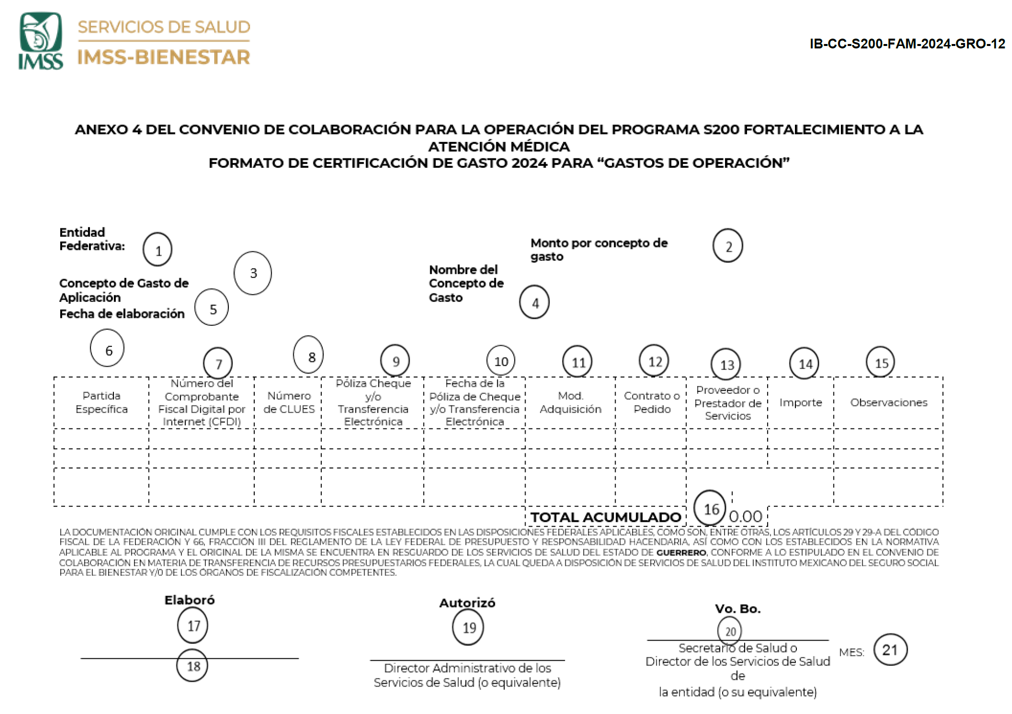 | 9 | Póliza Cheque y/o Transferencia Electrónica del pago efectuado | | 20 | Titular de la Secretaría de Salud Estatal o Titular de los Servicios de Salud de la Entidad Federativa (o su equivalente) |