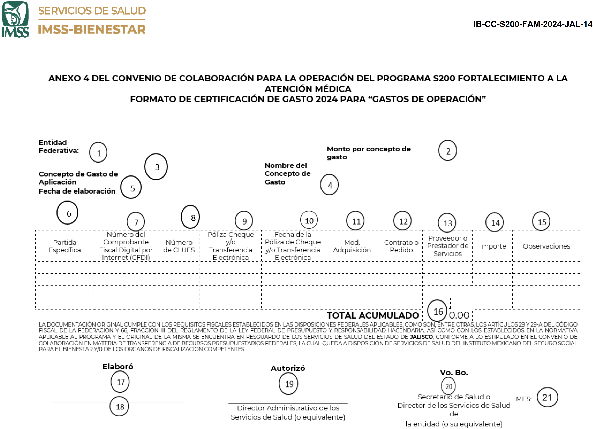 | 4 | Nombre del Concepto de Gasto (de conformidad con el Clasificador por Objeto del Gasto para la APF) | | 15 | Observaciones Generales |