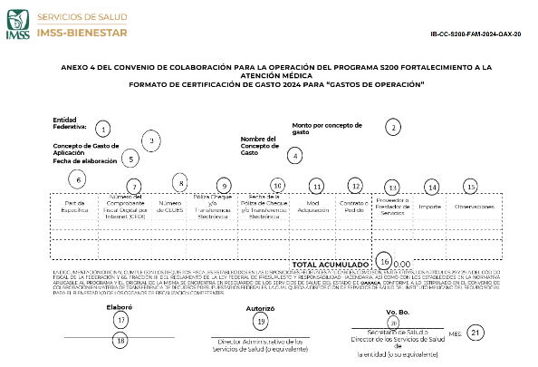 | 4 | Nombre del Concepto de Gasto (de conformidad con el Clasificador por Objeto del Gasto para la APF). | | 15 | Observaciones Generales. |