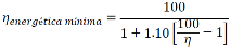 Valor de la eficiencia marcada en la placa o etiqueta de datos del motor eléctrico, seleccionada de acuerdo con la potencia nominal, número de polos y tipo de enclaustramiento de la Tabla 1, por el fabricante.