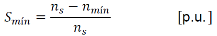 a) El deslizamiento por unidad de la frecuencia de rotación con respecto a la frecuencia de rotación síncrona, con el dinamómetro a su carga mínima, de acuerdo con la siguiente ecuación (Smín):