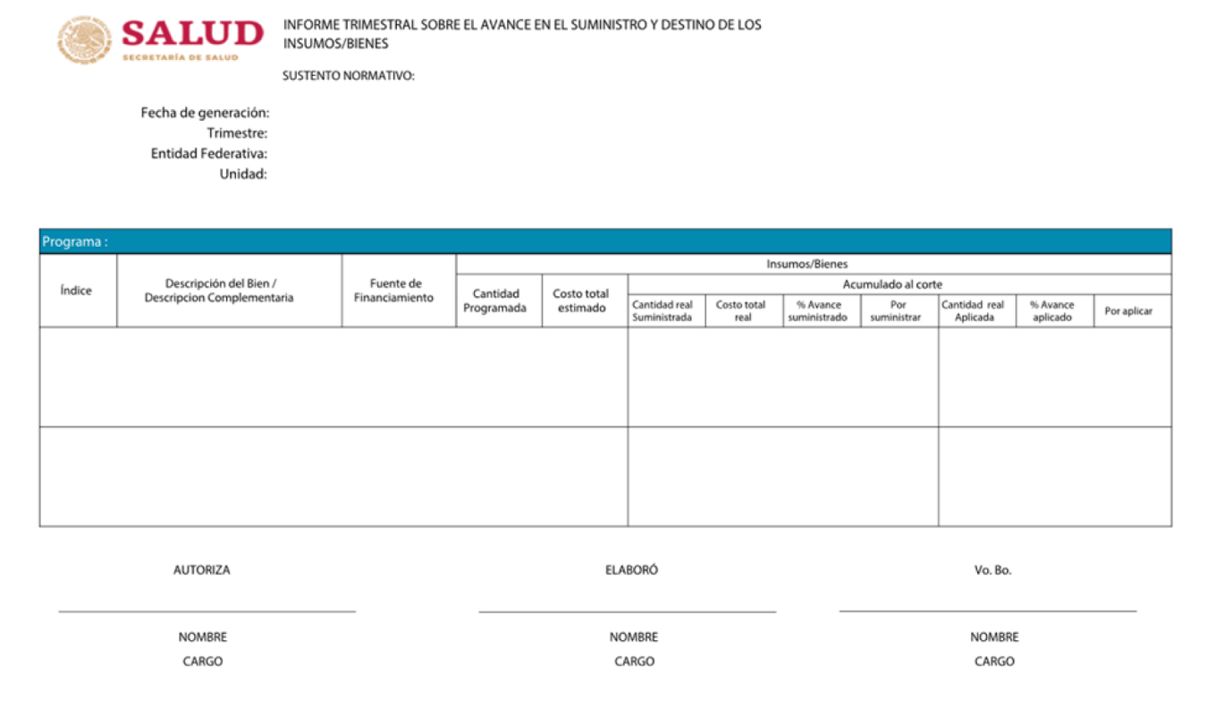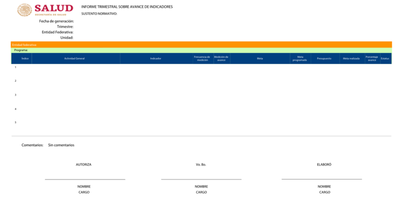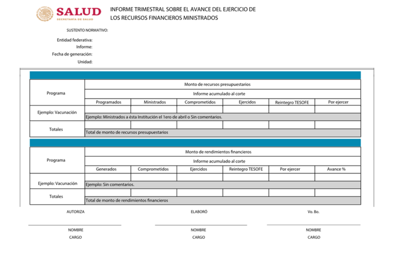 ![]() | SUBSECRETARÍA DE PREVENCIÓN Y PROMOCIÓN DE LA SALUD UA/OAD: PROGRAMA: Ejercicio Fiscal: Entidad Federativa: |