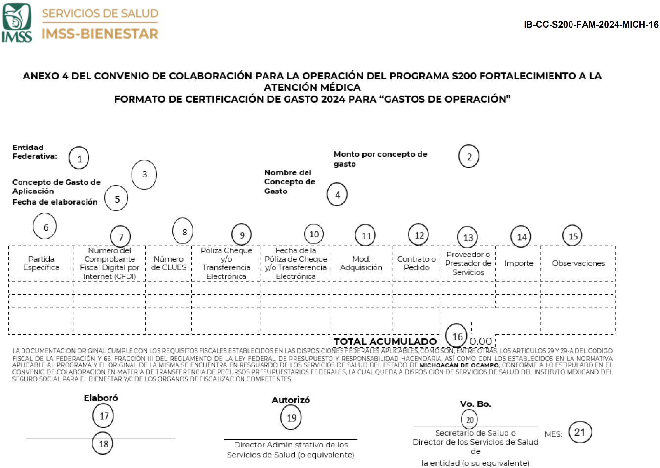 | 6 | Partida Específica de gasto | | 17 | Nombre del Responsable de elaborar la comprobación. |