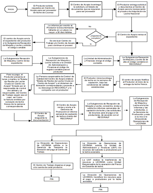 ANEXO 16. DIAGRAMA DE FLUJO DE LA MECÁNICA OPERATIVA PARA LA ADQUISICIÓN DE LECHE DE PEQUEÑOS Y MEDIANOS PRODUCTORES.