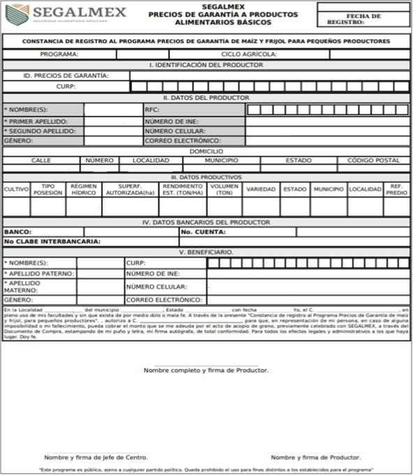 | Registro de Productor - Programa de Precios de Garantía a Productos Alimentarios Básicos |