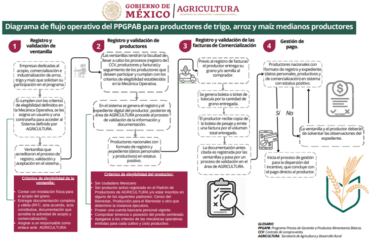 ANEXO 13. DIAGRAMA DE FLUJO OPERATIVO DEL PROGRAMA DE PRECIOS DE GARANTÍA A PRODUCTOS ALIMENTARIOS BÁSICOS PARA TRIGO, ARROZ Y MAÍZ DE MEDIANOS PRODUCTORES.