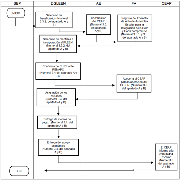 Beneficiario(s).- Comunidades Escolares por conducto de los CEAP constituidos en los planteles de educación básica pública (nivel inicial, preescolar, primaria y secundaria), CAM Básico y los Servicios Educativos CONAFE y en los planteles de educación pública escolarizada de media superior, que con la participación de las comunidades escolares, y conforme al procedimiento para la selección de los planteles de los apartados A y B previstos en las presentes Reglas de Operación, son susceptibles de recibir de manera directa el subsidio para que lo utilicen en mejorar sus servicios escolares, equipen, rehabiliten y/o amplíen las condiciones físicas de los planteles de educación básica pública, así mismo son susceptibles de recibir de manera directa el subsidio para que lo utilicen en equipar, rehabilitar y/o ampliar las condiciones físicas de los planteles de educación pública escolarizada de media superior.