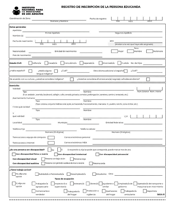 Incorporación de toda persona física que quiera participar como persona voluntaria con subsidio como apoyo para brindar servicios educativos de alfabetización, primaria y secundaria para personas jóvenes y adultas de 15 años o más, en situación de rezago educativo y que cumpla con los requisitos establecidos en esta convocatoria.