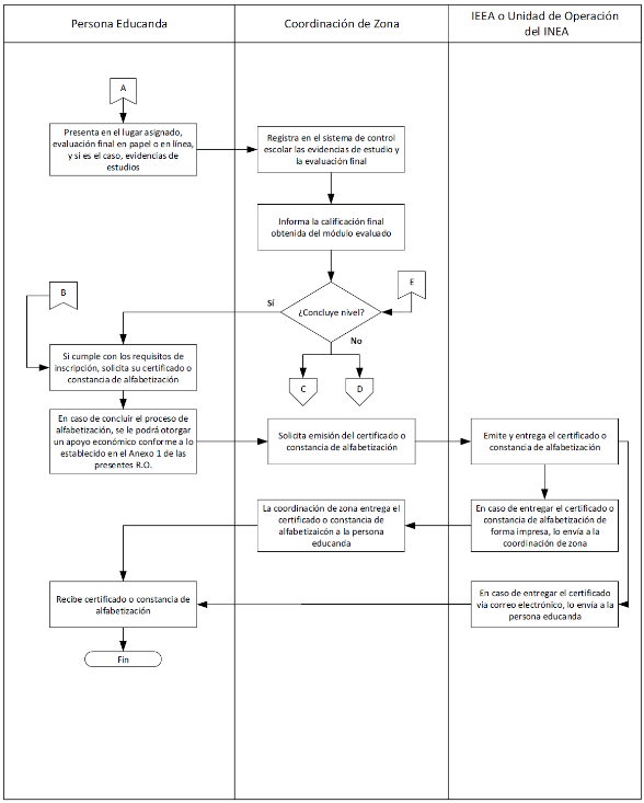 Certificación.- Proceso gratuito mediante el cual se otorga reconocimiento oficial a la acreditación y conclusión de los estudios realizados por las personas educandas en los niveles de primaria y secundaria, conforme al esquema curricular vigente.