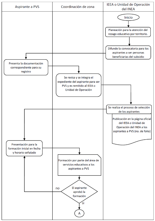 | Indicar a la PVS, el lugar y fecha para el inicio de sus actividades de apoyo educativo. | Los IEEA y UO del INEA. | Página oficial del IEEA y/o UO del INEA. |