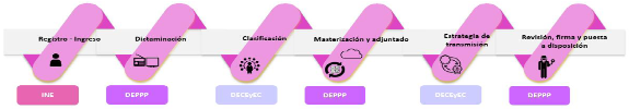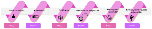 72. El modelo propuesto para la recepción de materiales de audio y video, dictaminación técnica, elaboración de estrategias de transmisión y puesta a disposición a los concesionarios de radio y televisión para los materiales de los espacios de las candidaturas de los PEE de los PJL, es el siguiente: