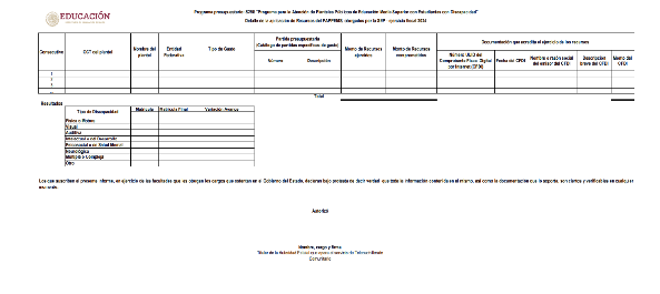 ÚLTIMA HOJA DEL ANEXO QUE FORMA PARTE INTEGRANTE DEL CONVENIO DE COLABORACIÓN PARA LA OPERACIÓN DEL PROGRAMA ATENCIÓN DE PLANTELES PÚBLICOS DE EDUCACIÓN MEDIA SUPERIOR CON ESTUDIANTES CON DISCAPACIDAD PARA EL EJERCICIO FISCAL 2025, CELEBRADO ENTRE EL GOBIERNO FEDERAL, POR CONDUCTO DE LA SECRETARÍA DE EDUCACIÓN PÚBLICA, Y EL ESTADO LIBRE Y SOBERANO DE (NOMBRE DEL ESTADO), DE FECHA (DÍA) DE (MES) DE 2025.