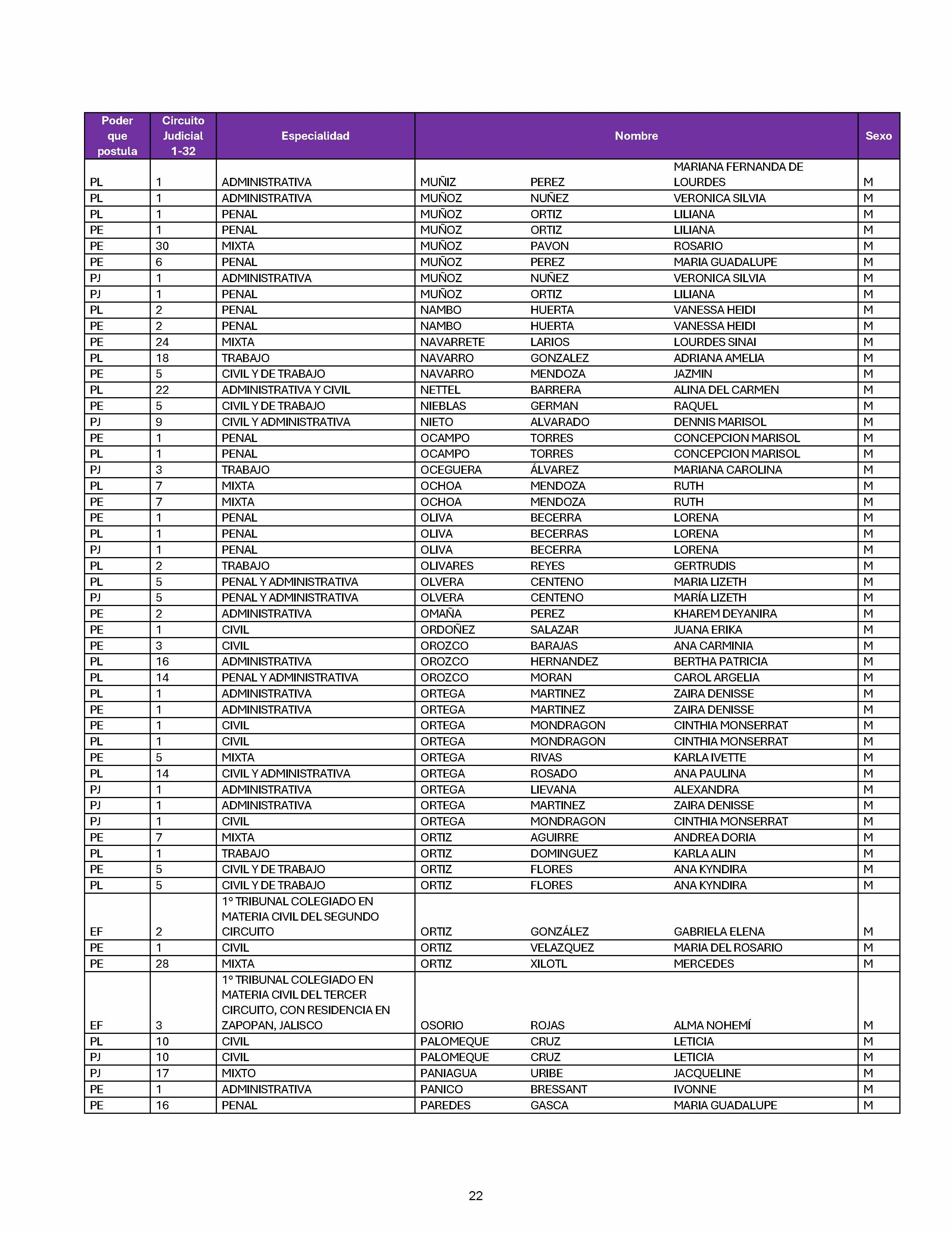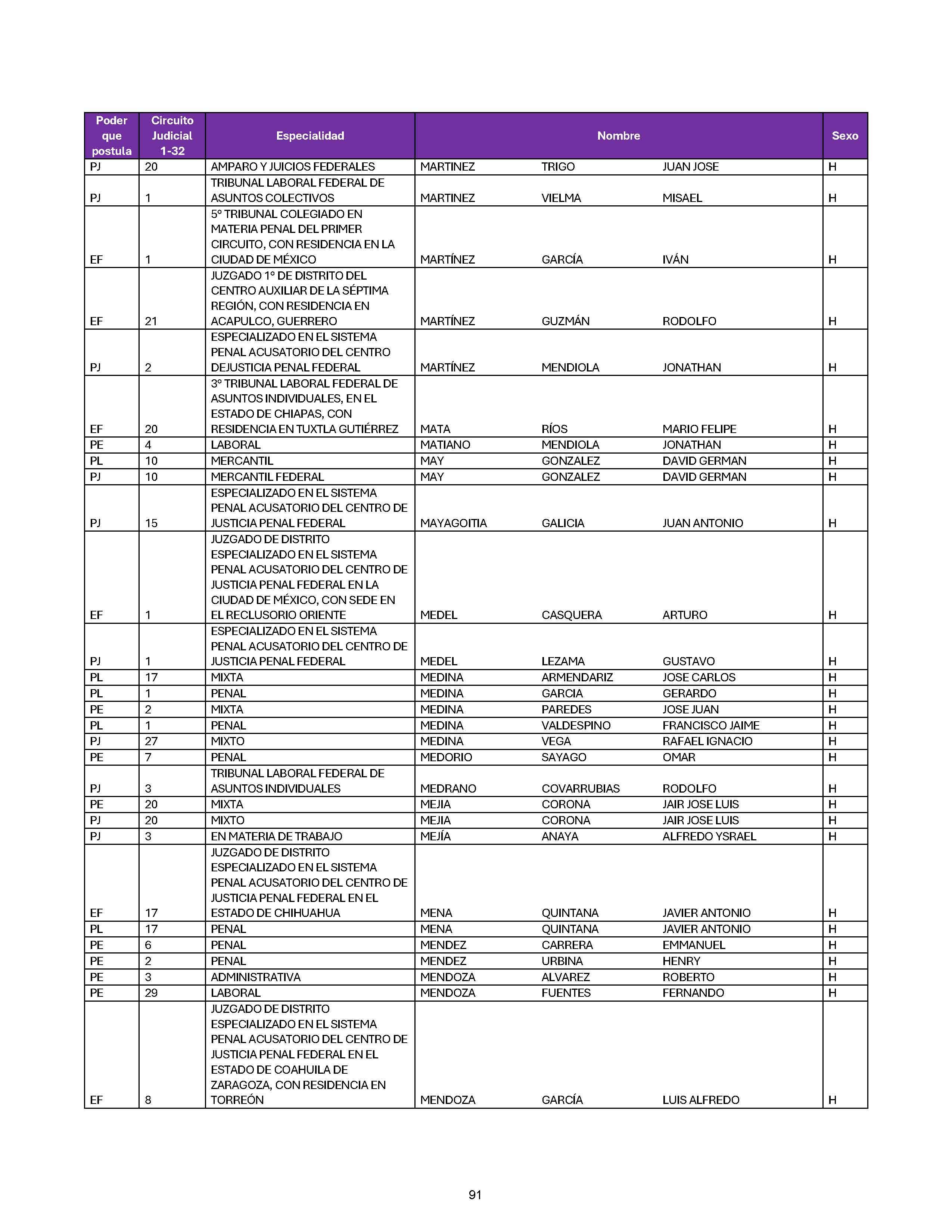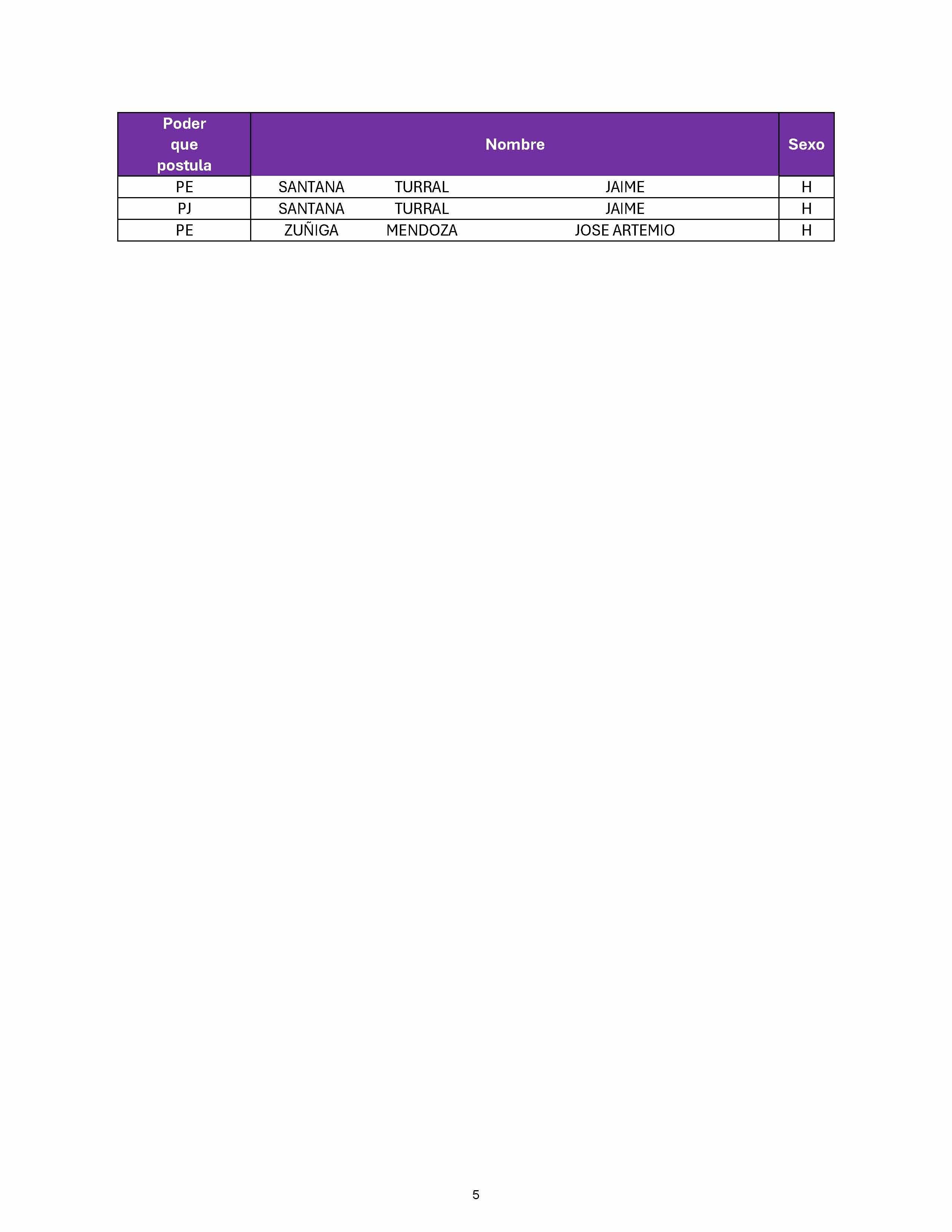 · Copia certificada del listado del Poder Judicial (Anexo 1).