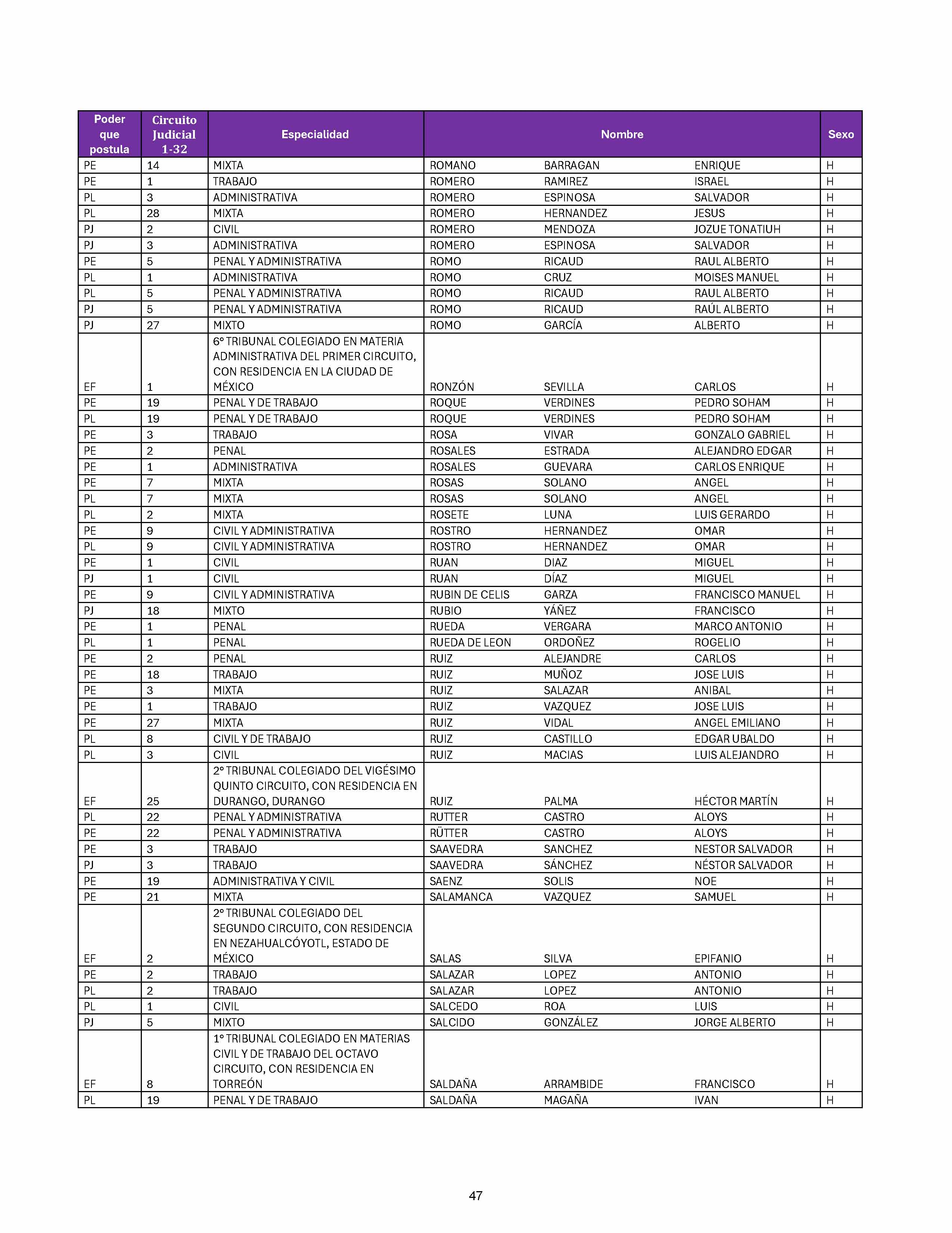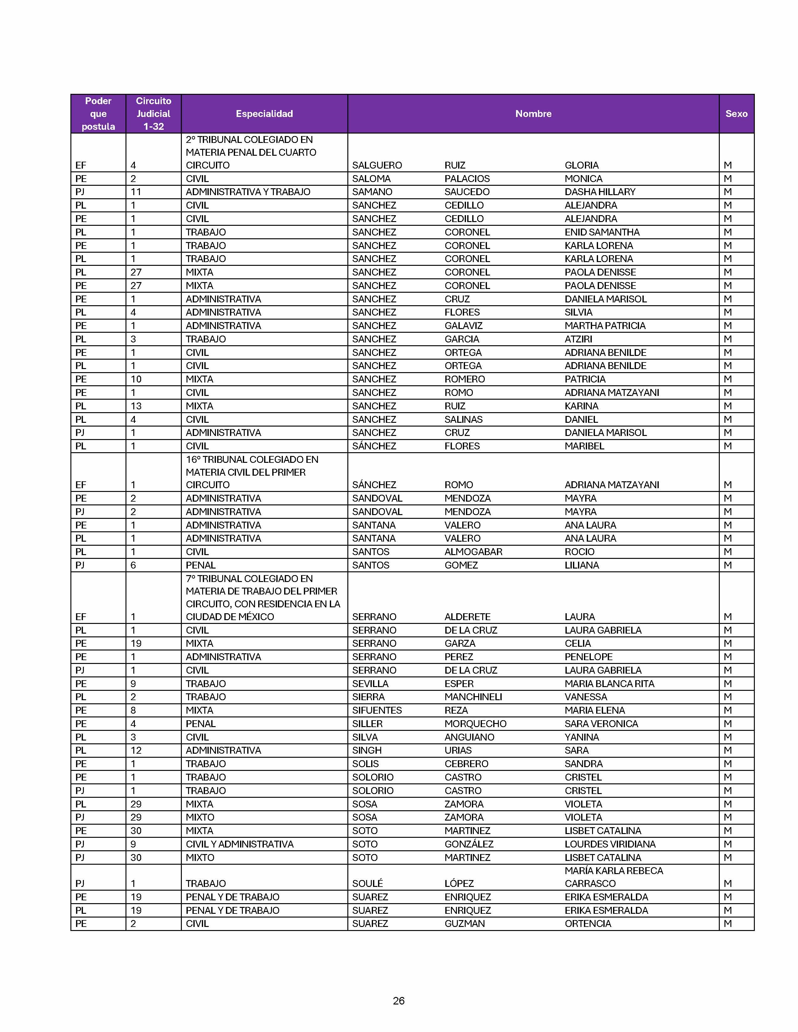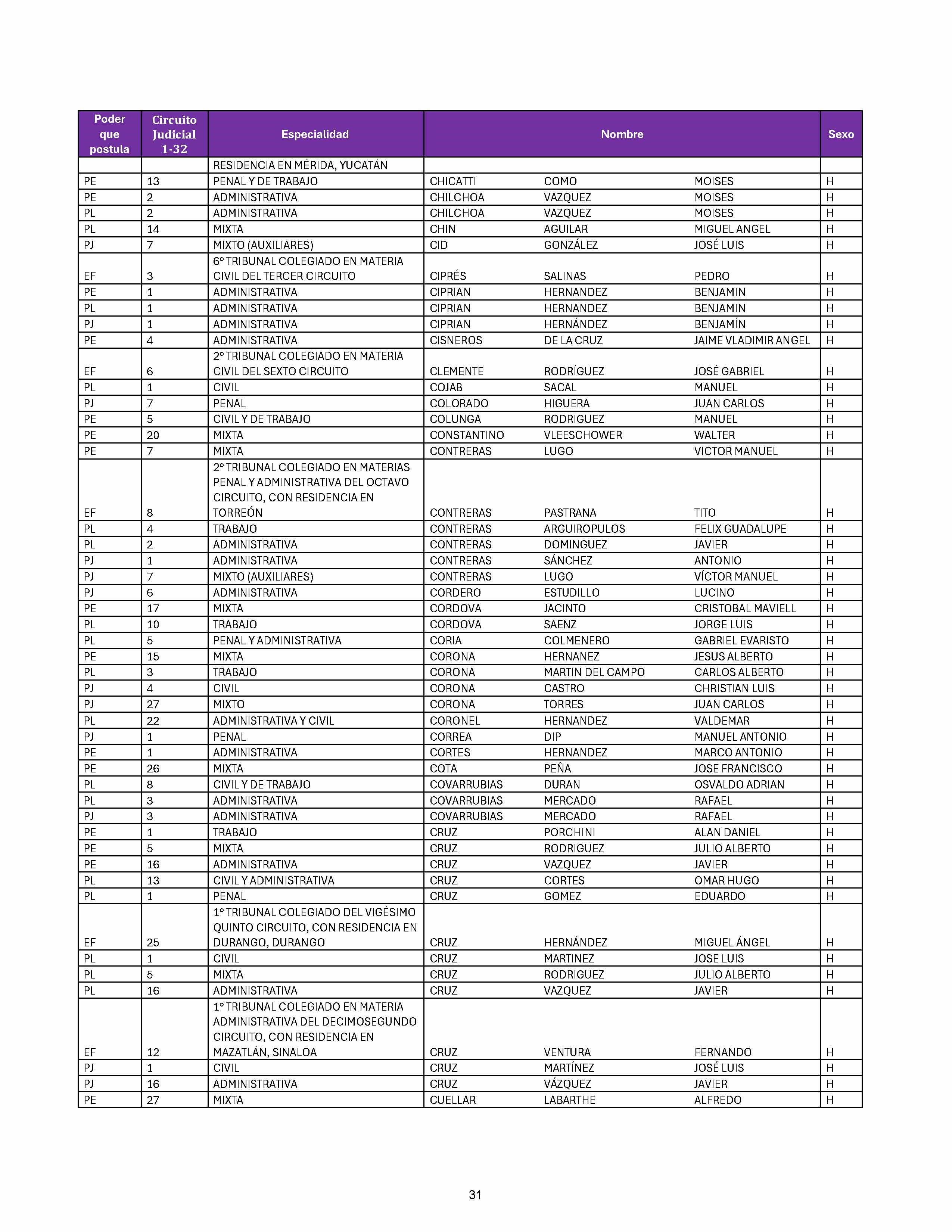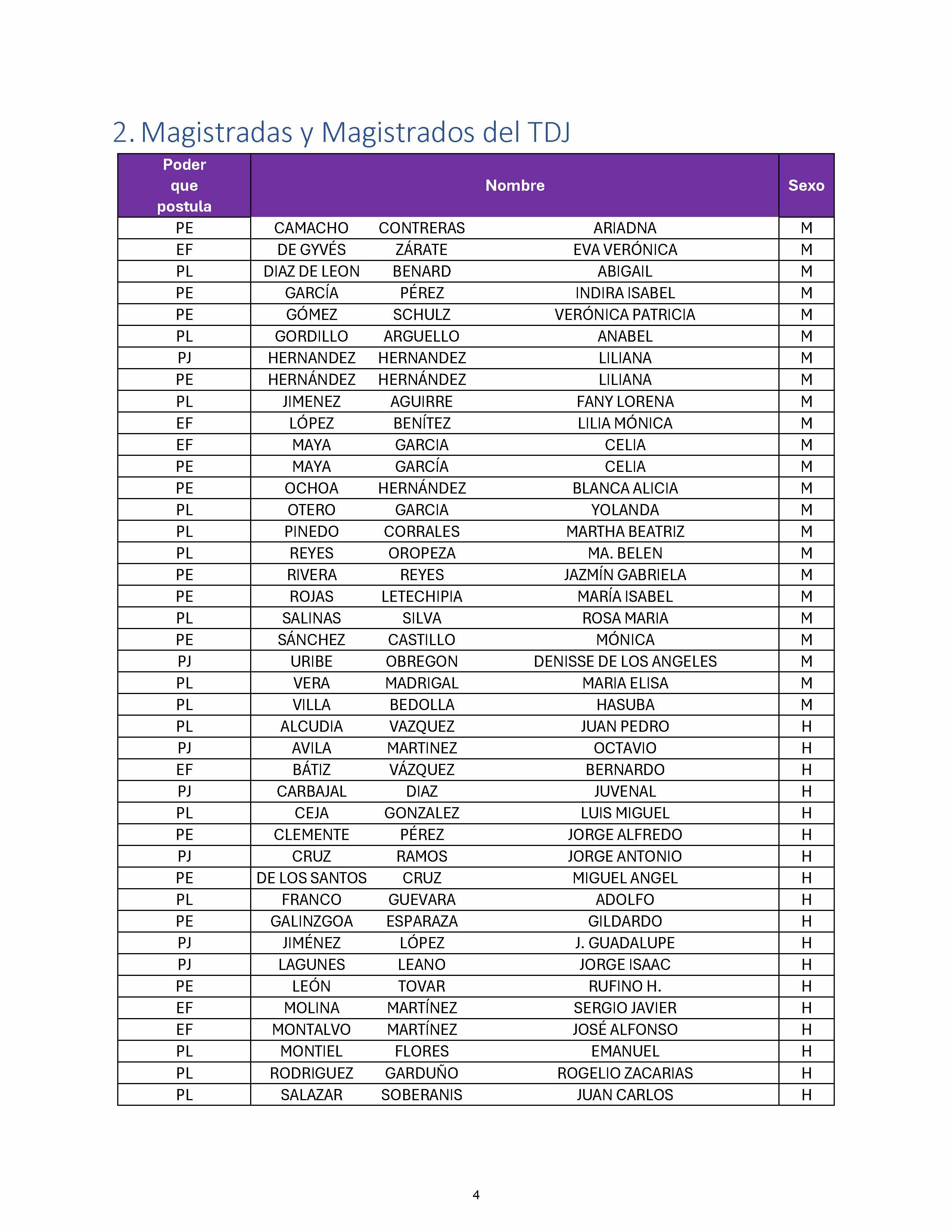 CUARTO. Se instruye a la Secretaría Ejecutiva para que realice una revisión integral de la información recibida y, en caso de, identificar inconsistencias, falta de información o se requieran precisiones respecto de las especialidades de Jueces y Juezas y Magistraturas realice los requerimientos a la Mesa Directiva de la Cámara de Senadores.