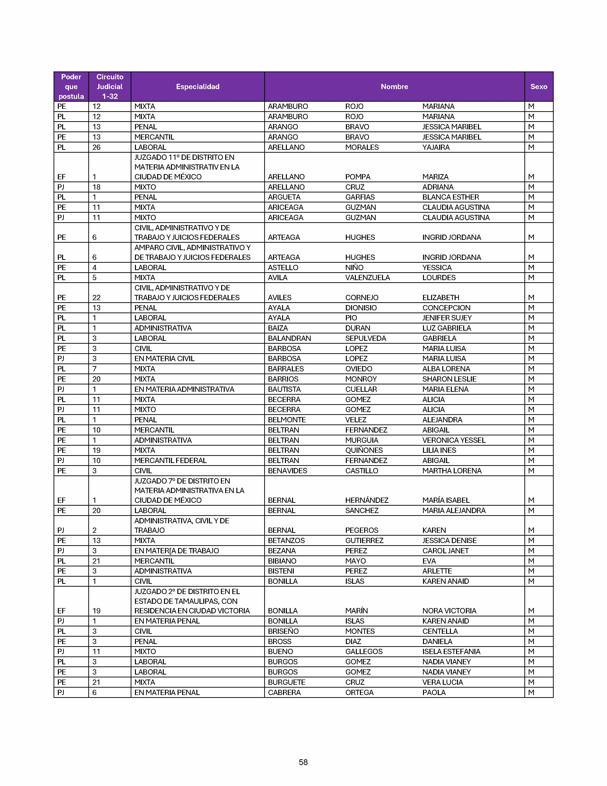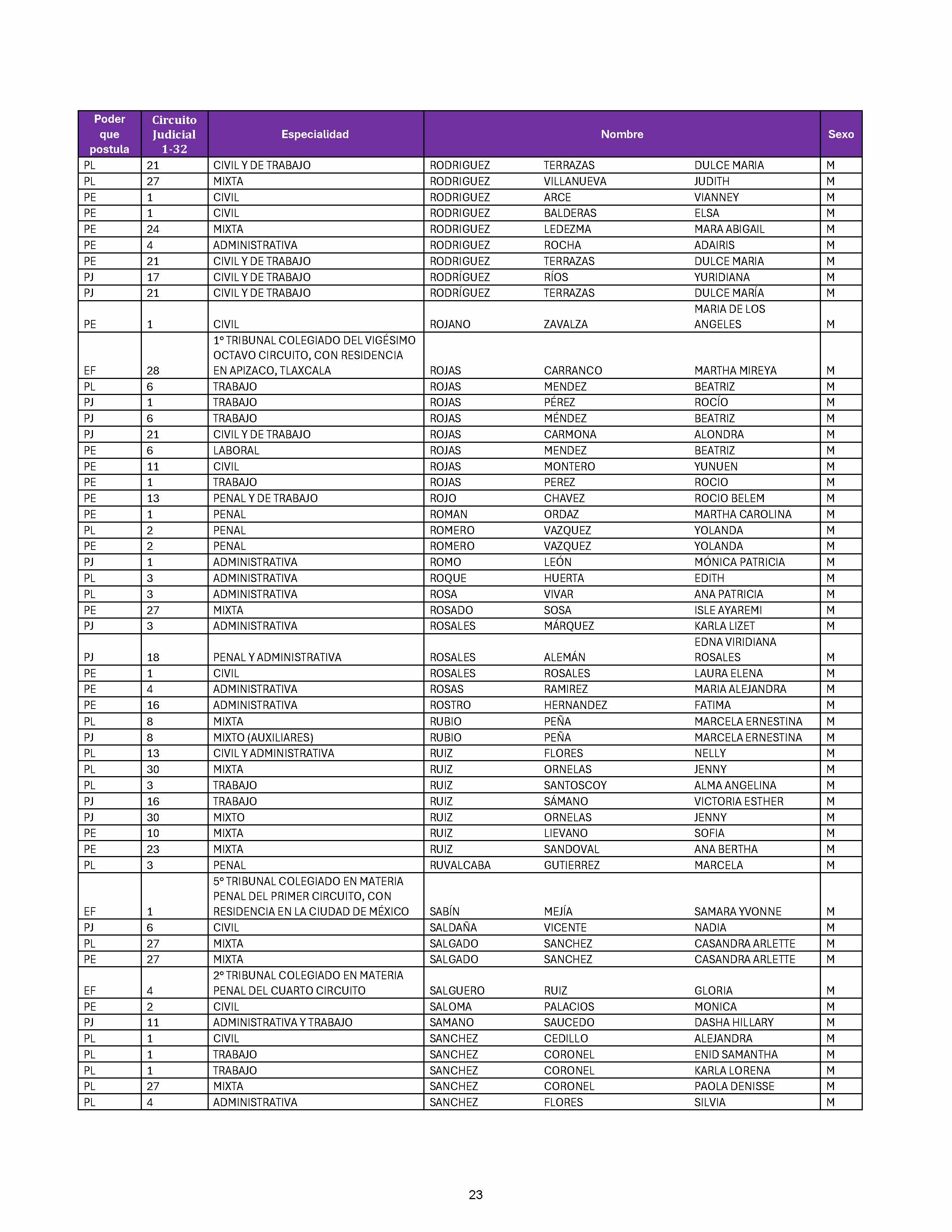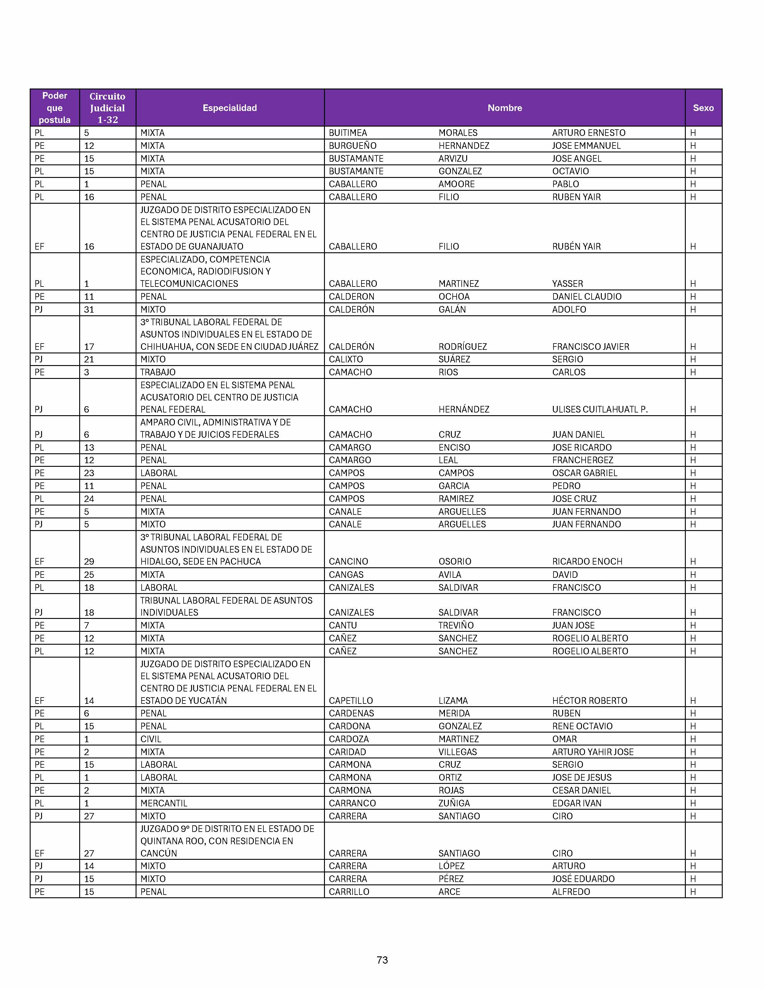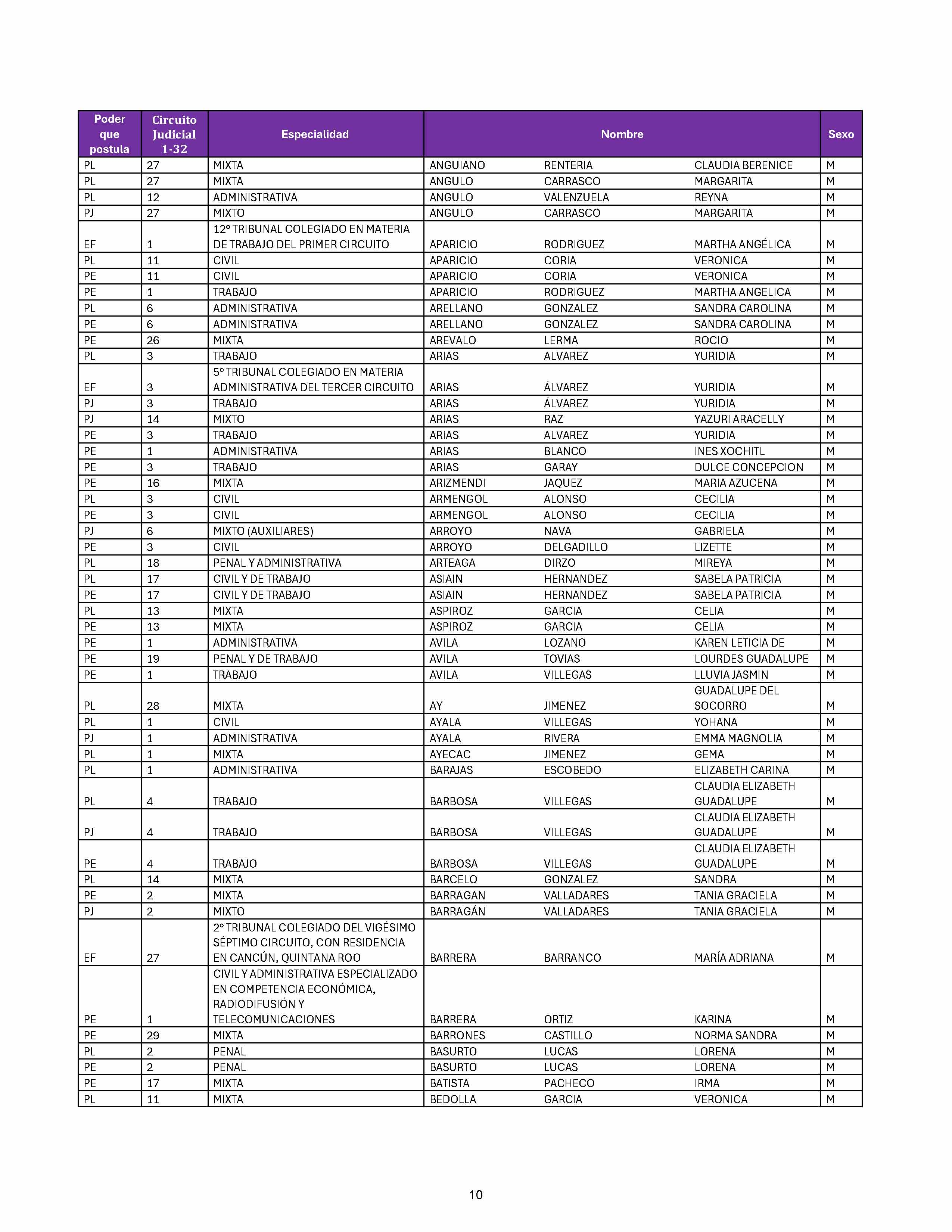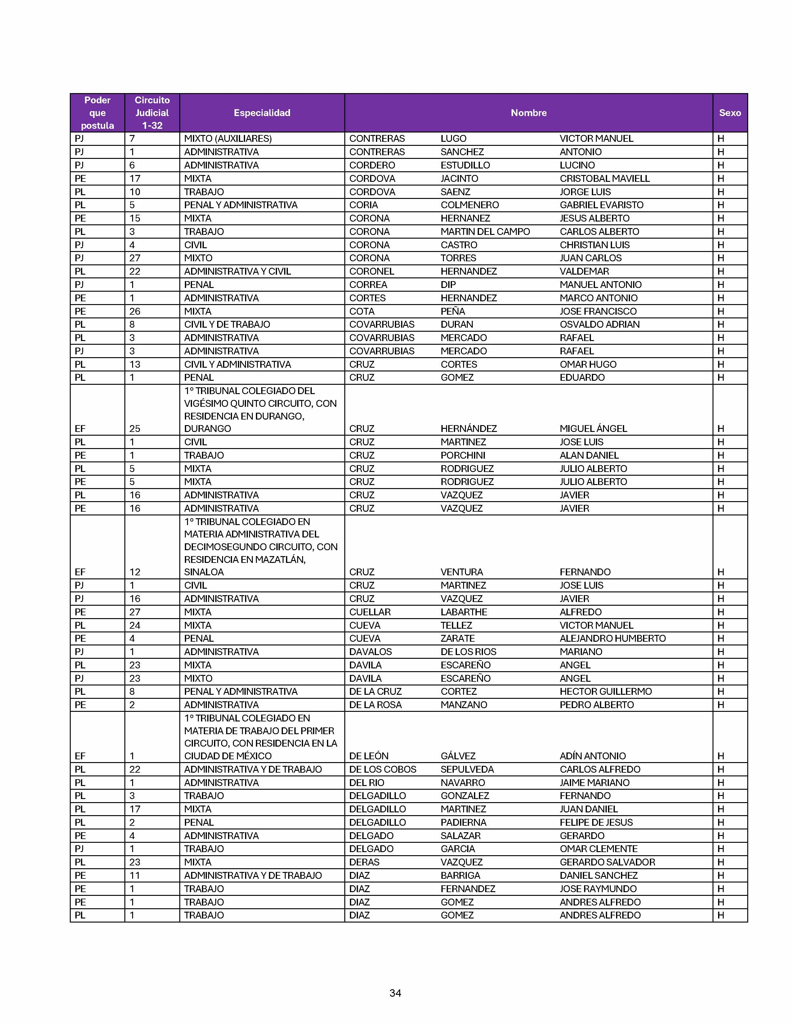 CUARTO. Se instruye a la Secretaría Ejecutiva para que realice una revisión integral de la información recibida y, en caso de, identificar inconsistencias, falta de información o se requieran precisiones respecto de las especialidades de Jueces y Juezas y Magistraturas realice los requerimientos a la Mesa Directiva de la Cámara de Senadores.