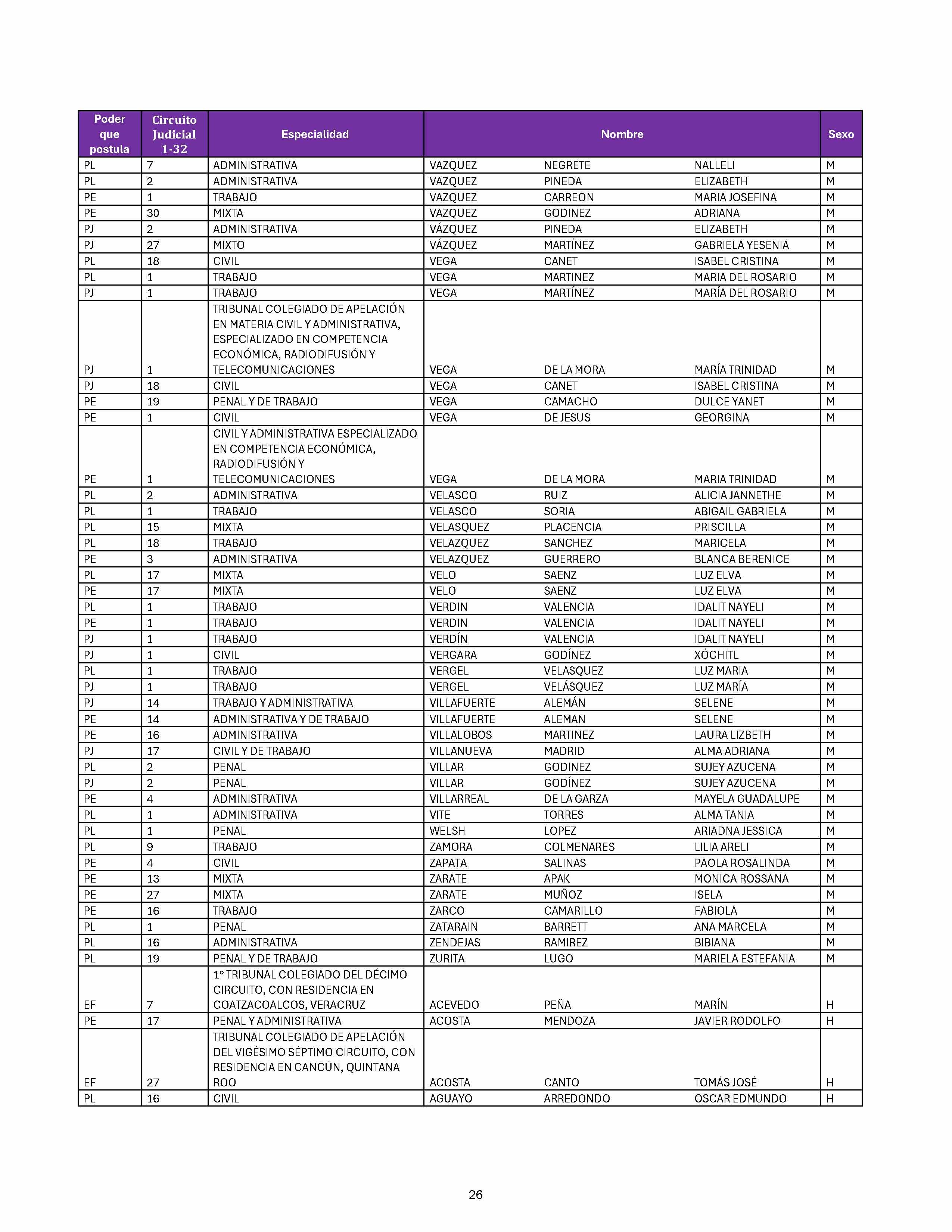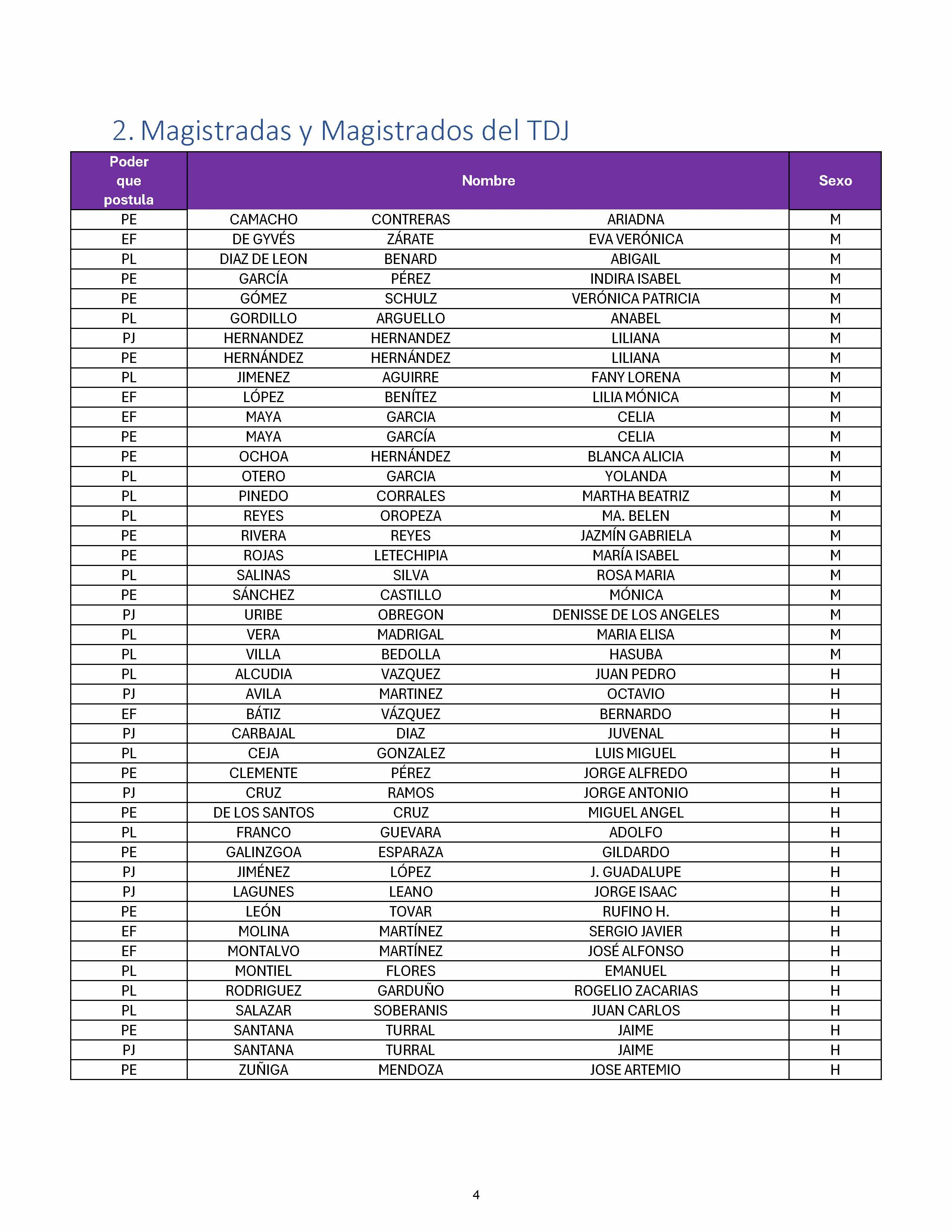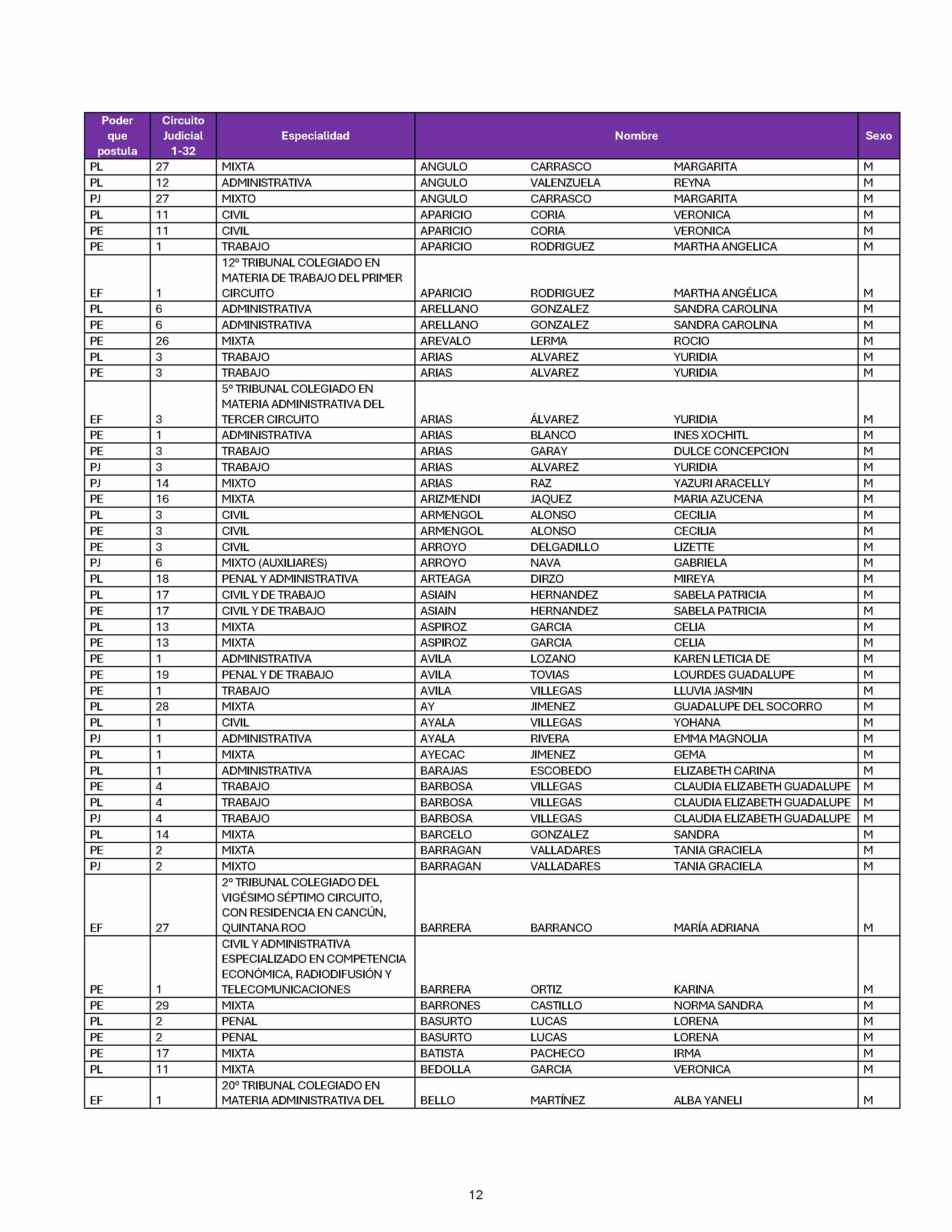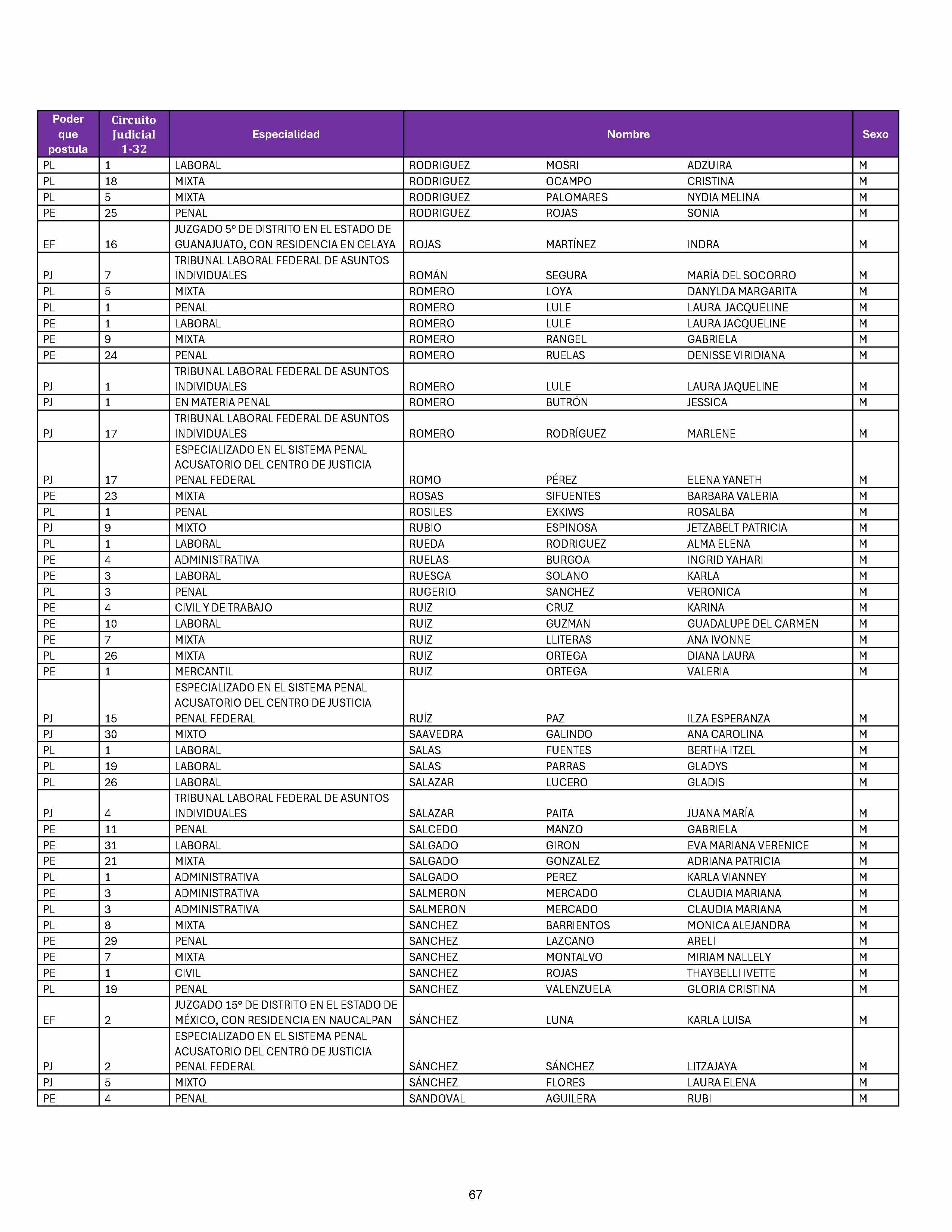 CUARTO. Se instruye a la Secretaría Ejecutiva para que realice una revisión integral de la información recibida y, en caso de, identificar inconsistencias, falta de información o se requieran precisiones respecto de las especialidades de Jueces y Juezas y Magistraturas realice los requerimientos a la Mesa Directiva de la Cámara de Senadores.