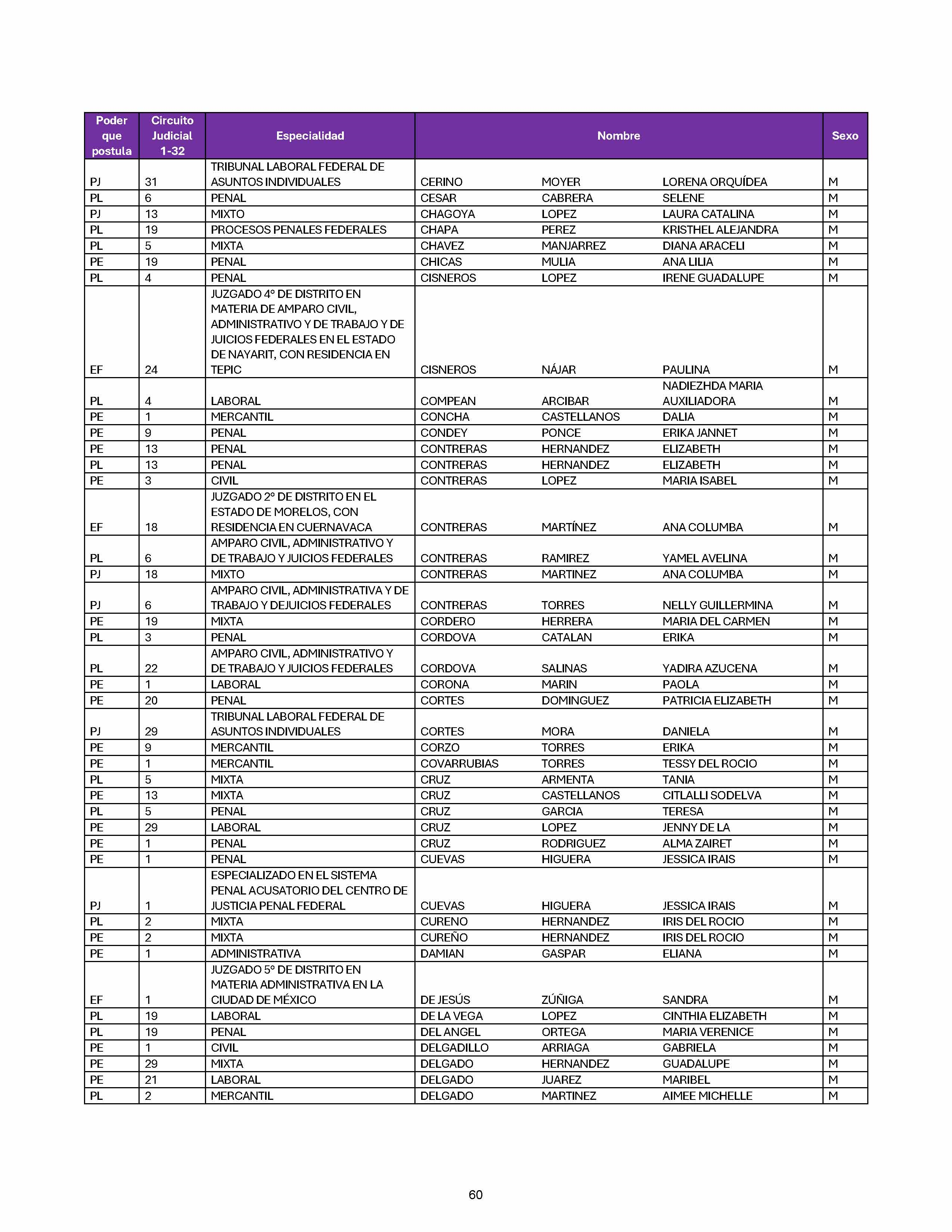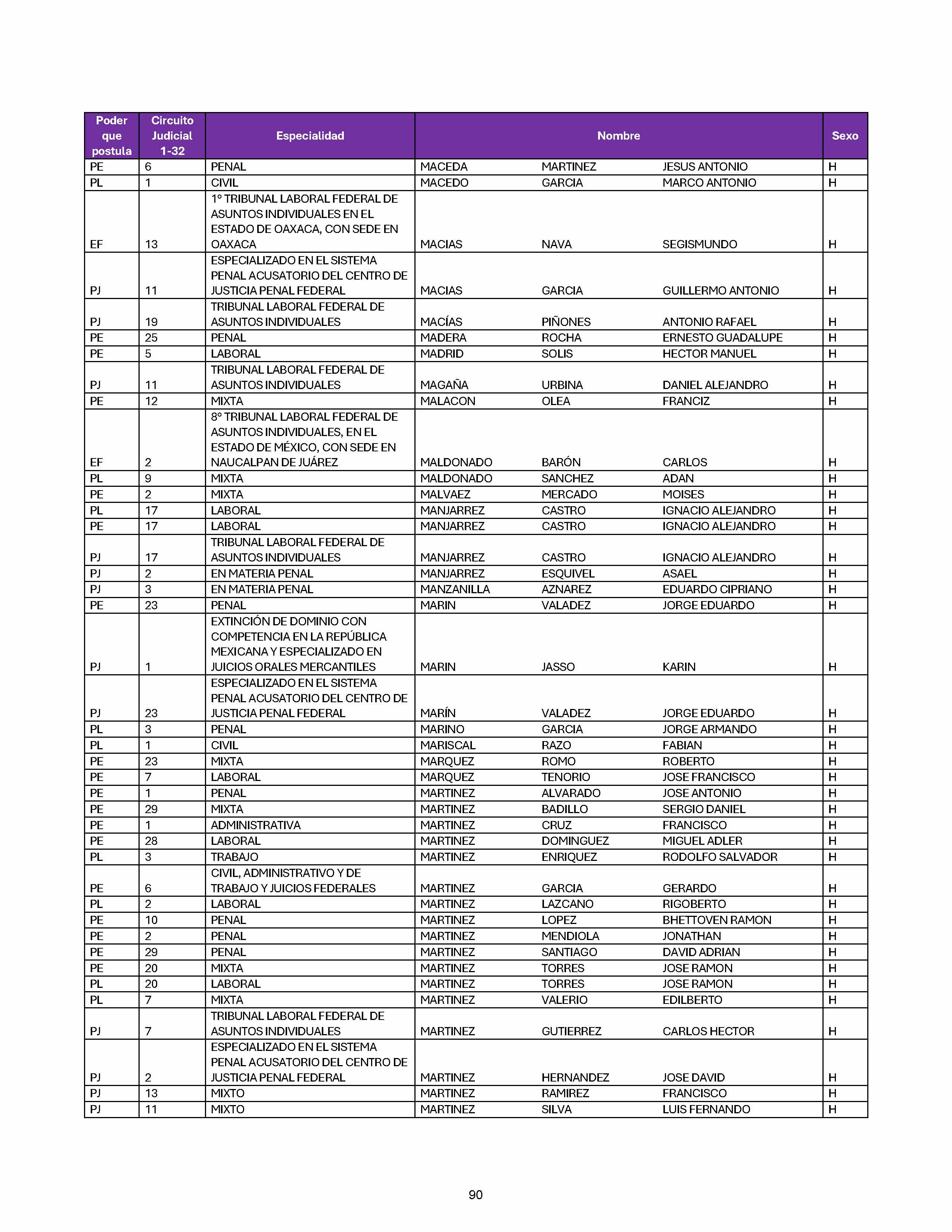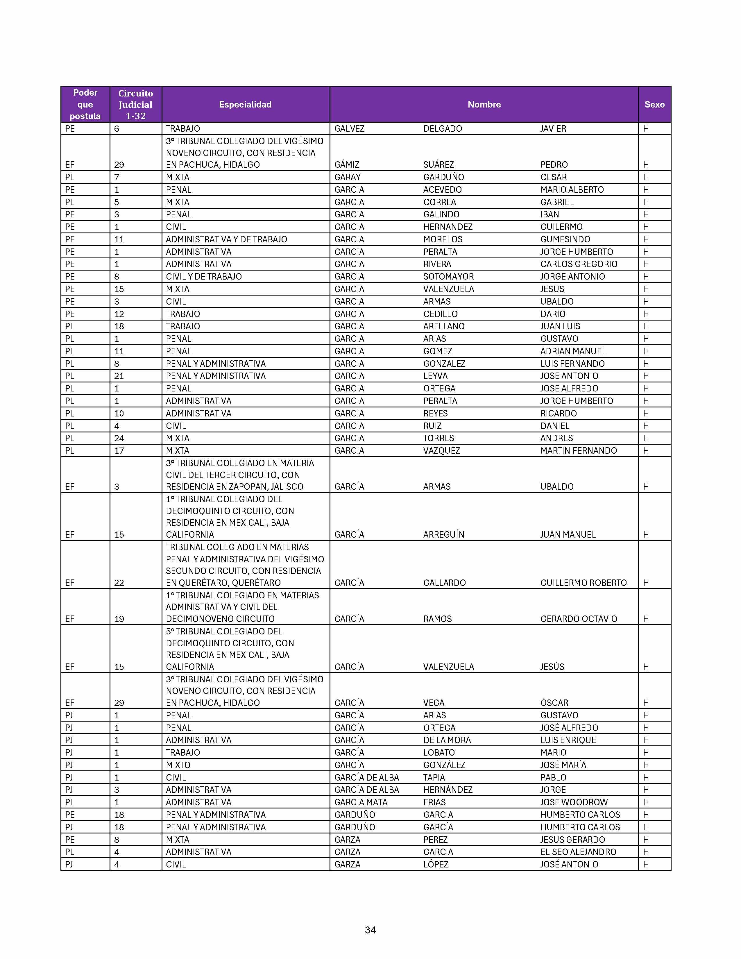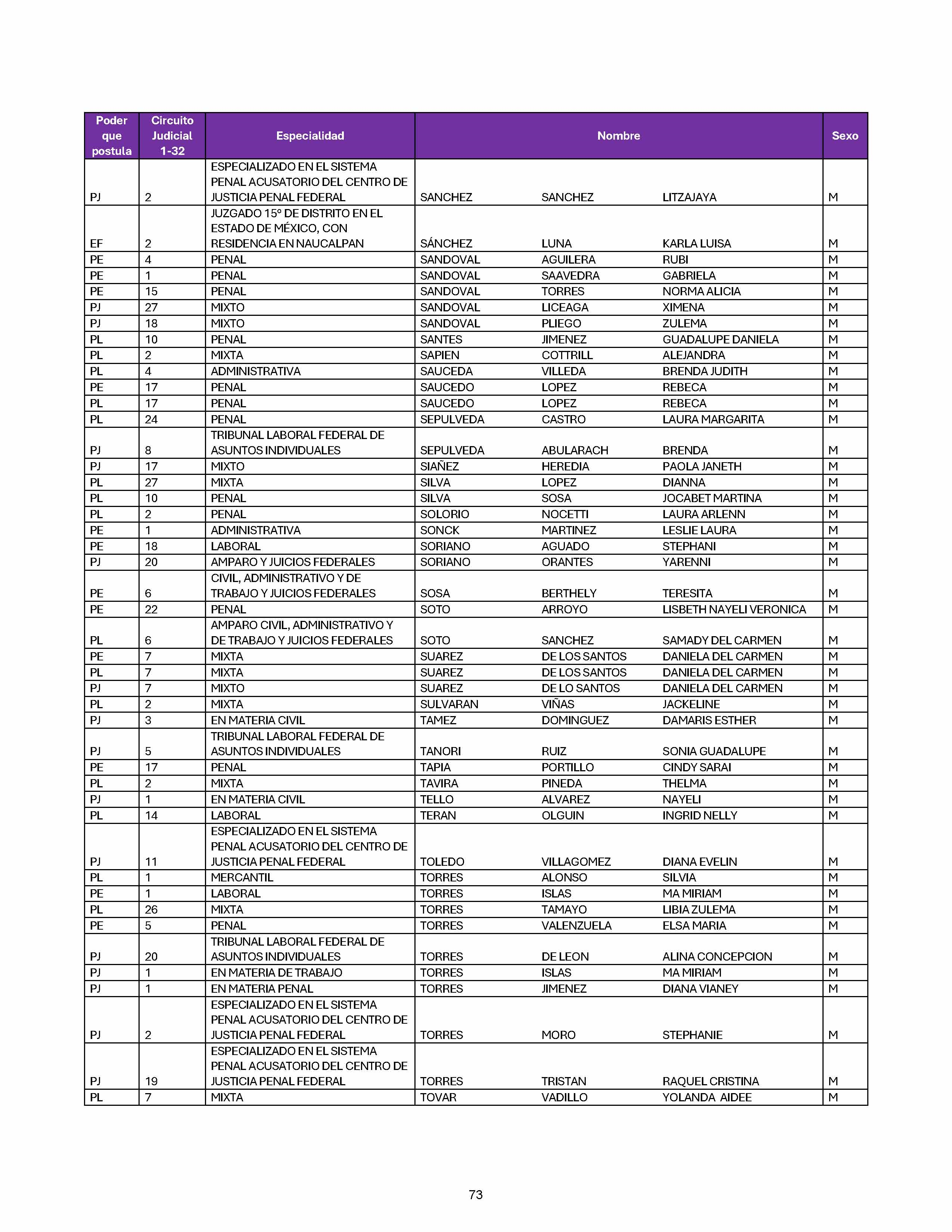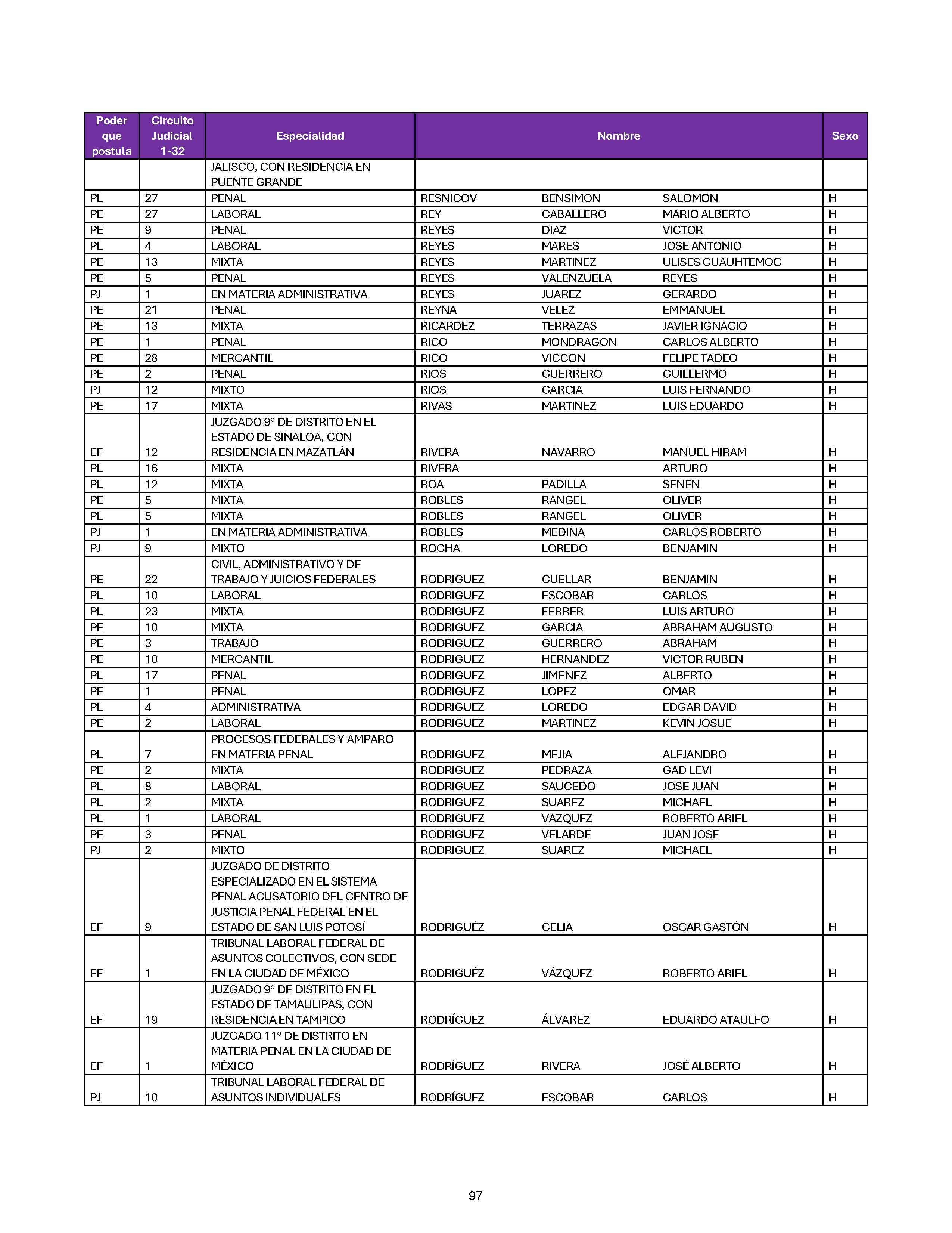 CUARTO. Se instruye a la Secretaría Ejecutiva para que realice una revisión integral de la información recibida y, en caso de, identificar inconsistencias, falta de información o se requieran precisiones respecto de las especialidades de Jueces y Juezas y Magistraturas realice los requerimientos a la Mesa Directiva de la Cámara de Senadores.