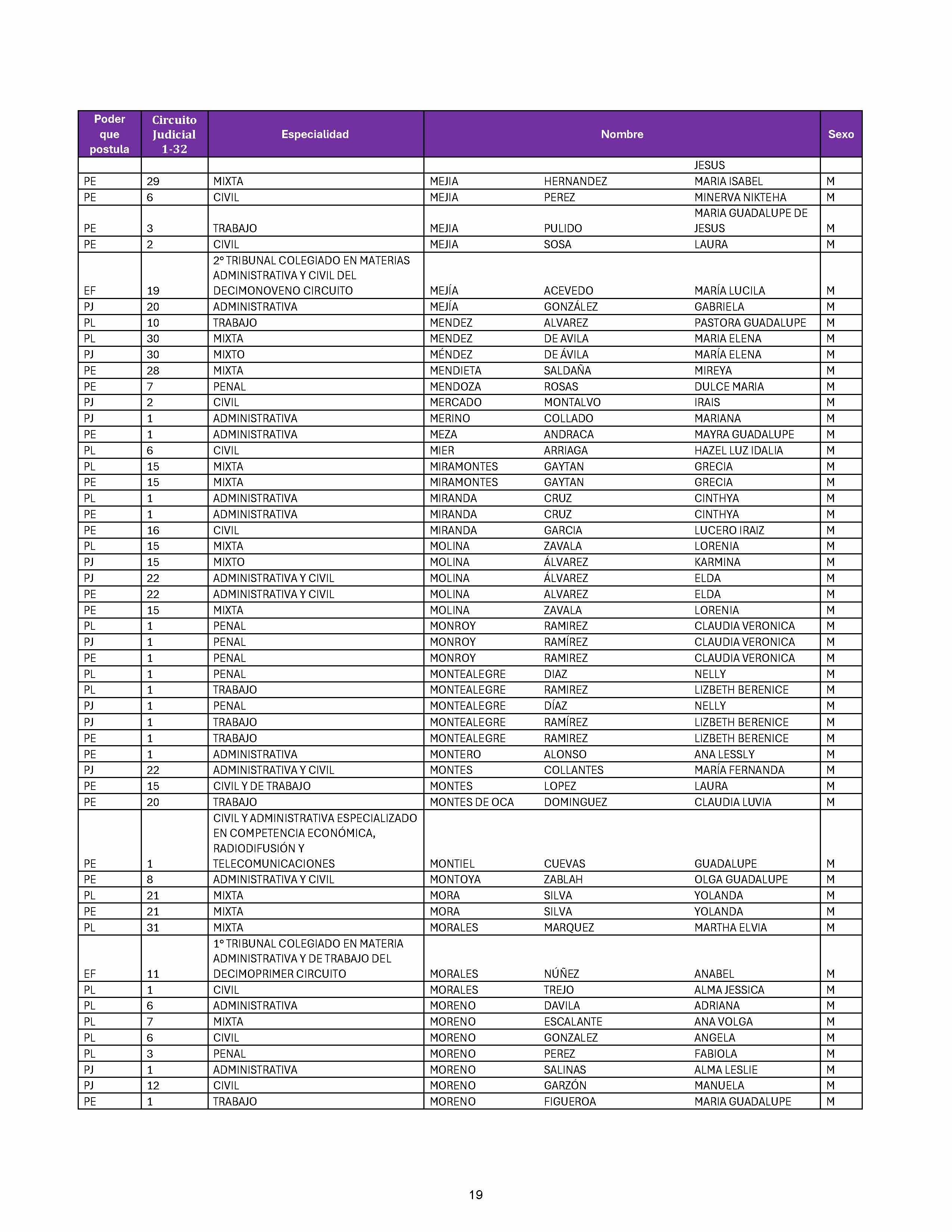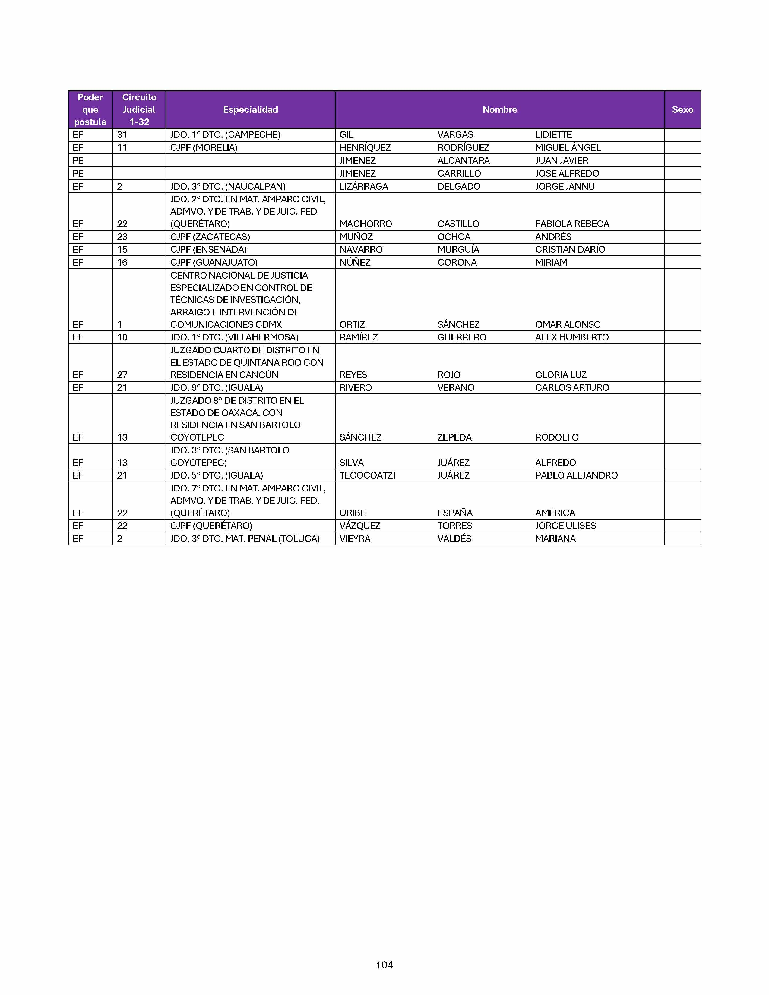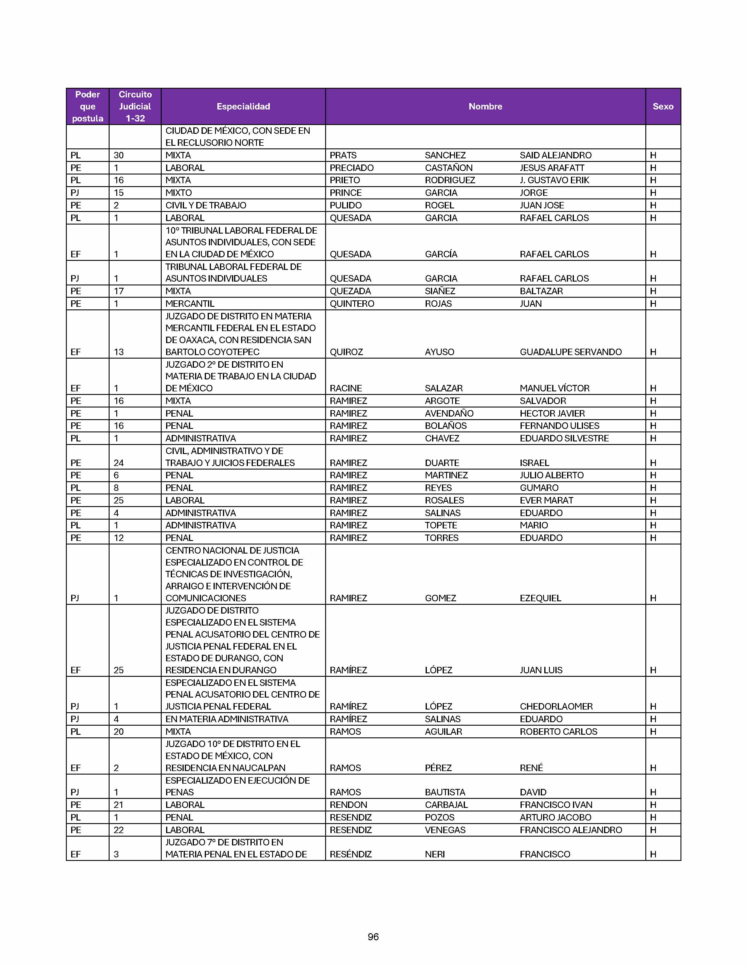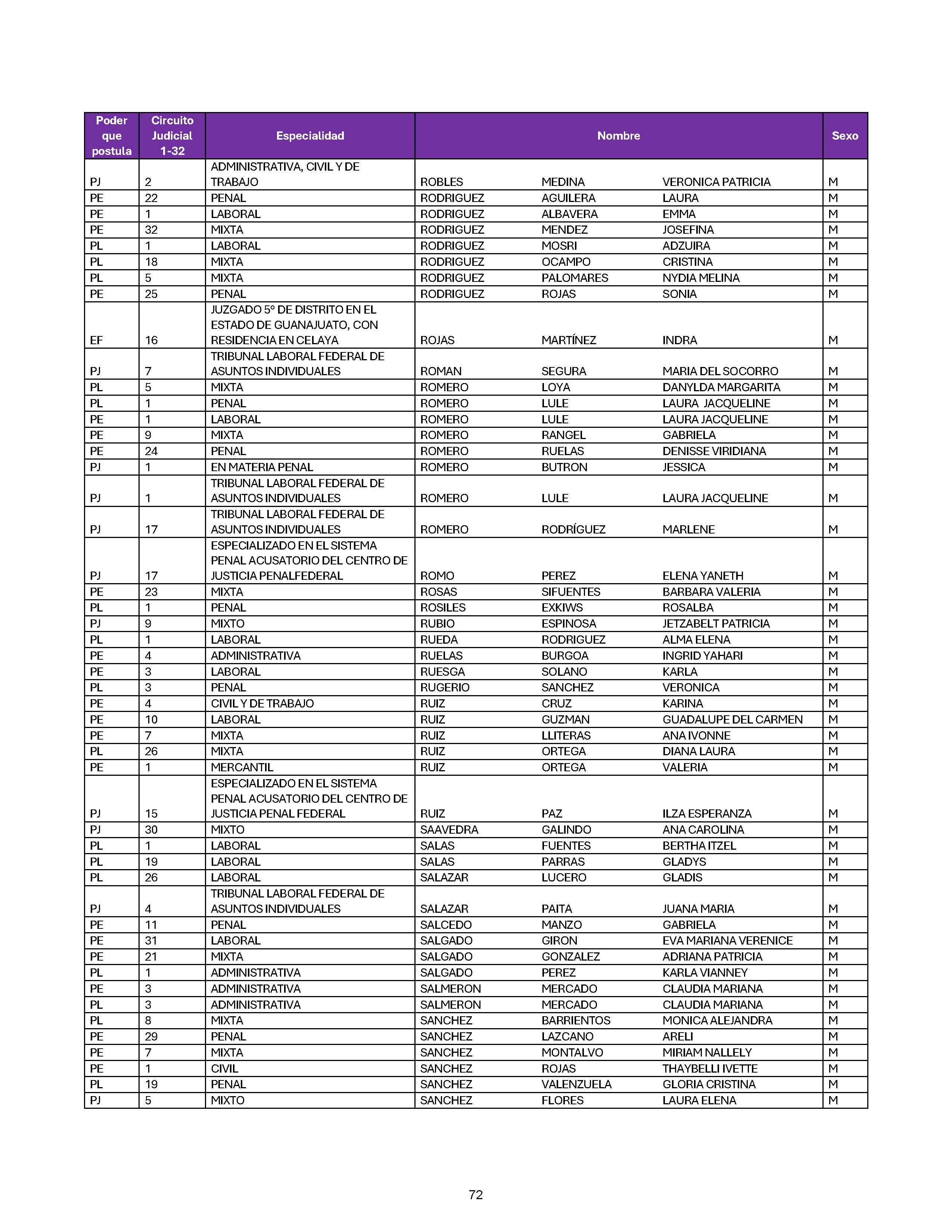 CUARTO. Se instruye a la Secretaría Ejecutiva para que realice una revisión integral de la información recibida y, en caso de, identificar inconsistencias, falta de información o se requieran precisiones respecto de las especialidades de Jueces y Juezas y Magistraturas realice los requerimientos a la Mesa Directiva de la Cámara de Senadores.
