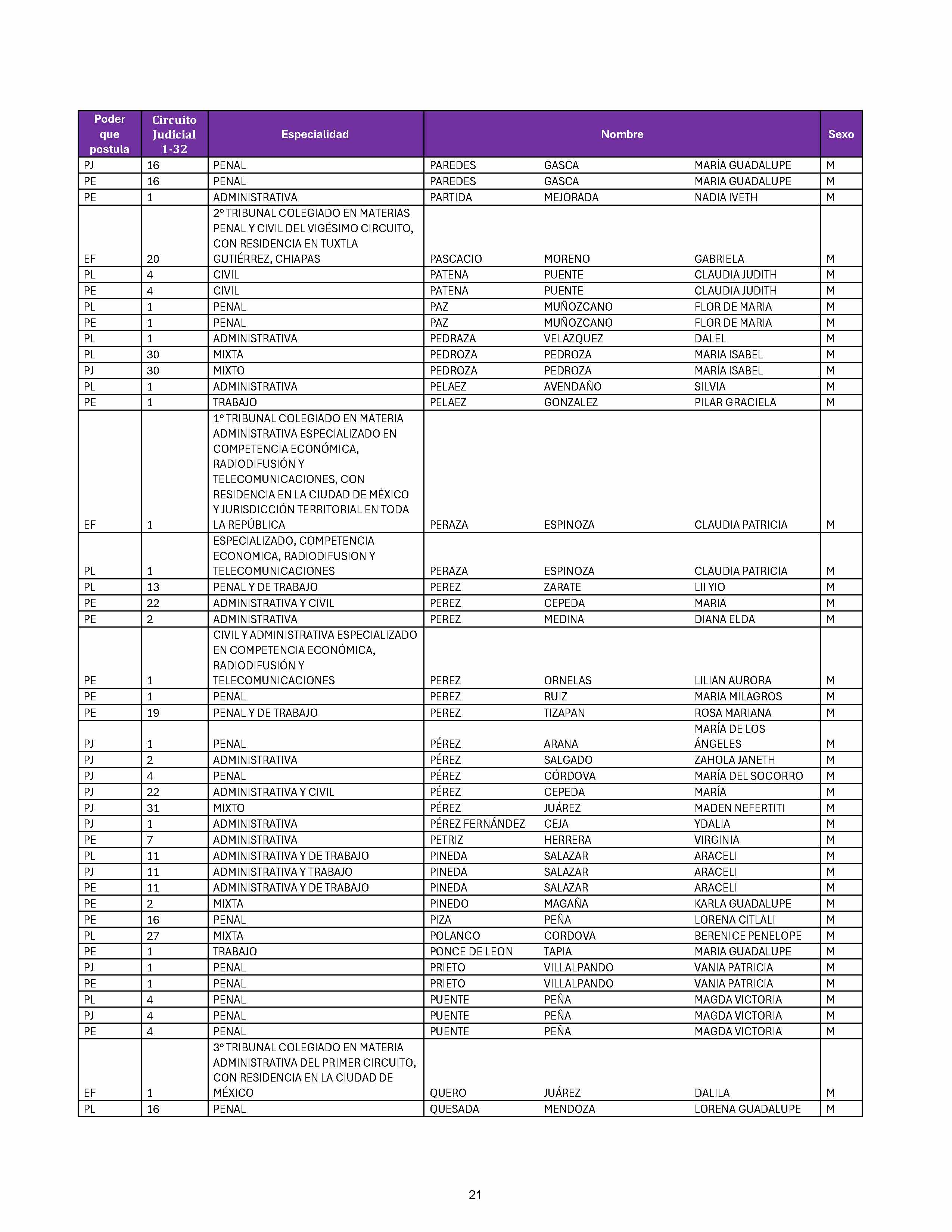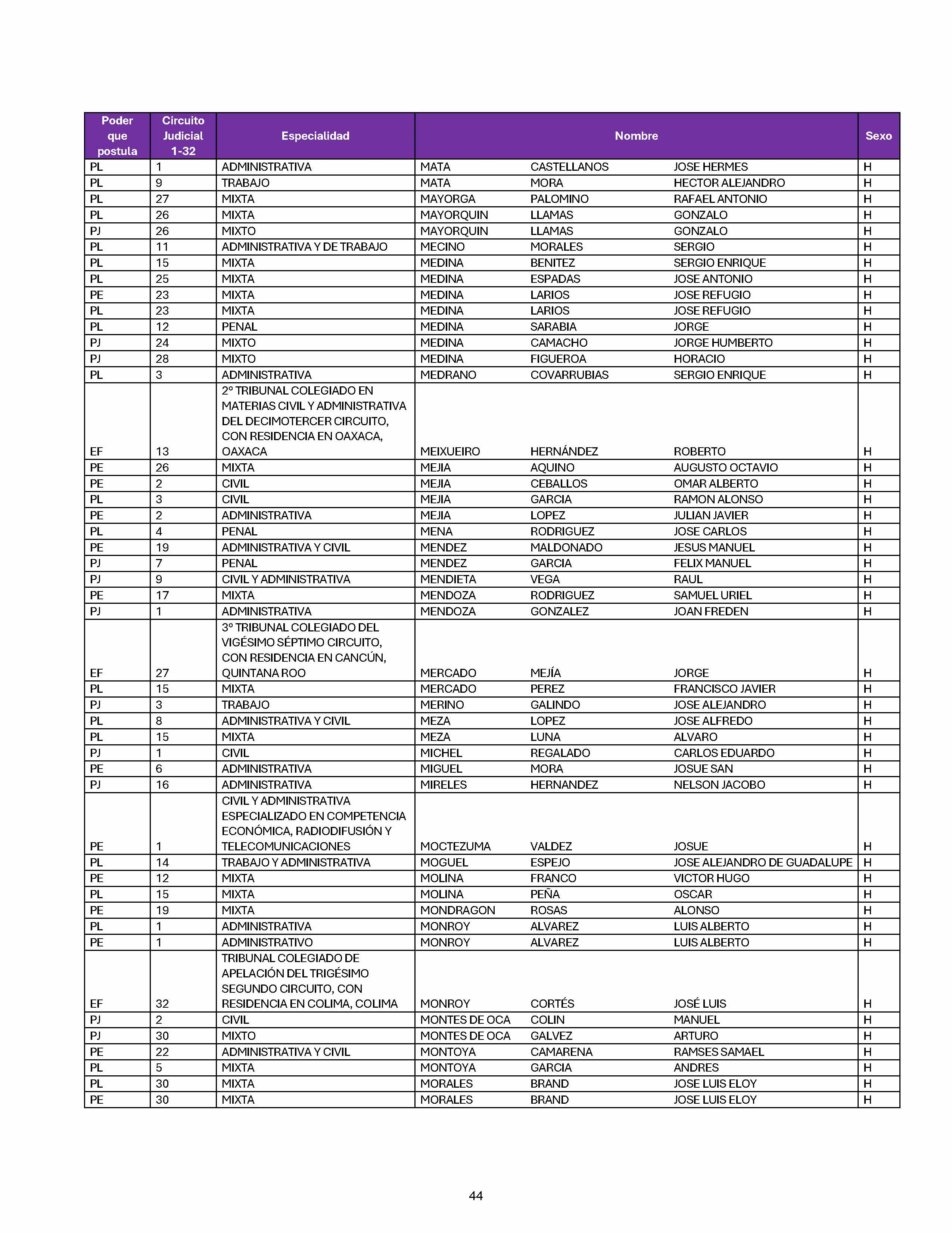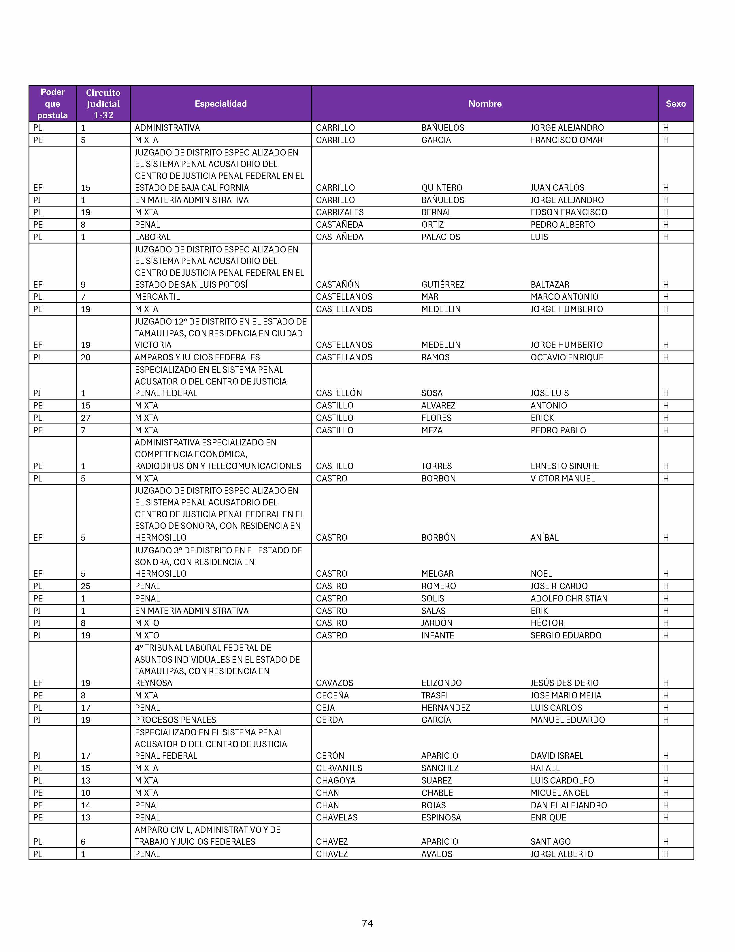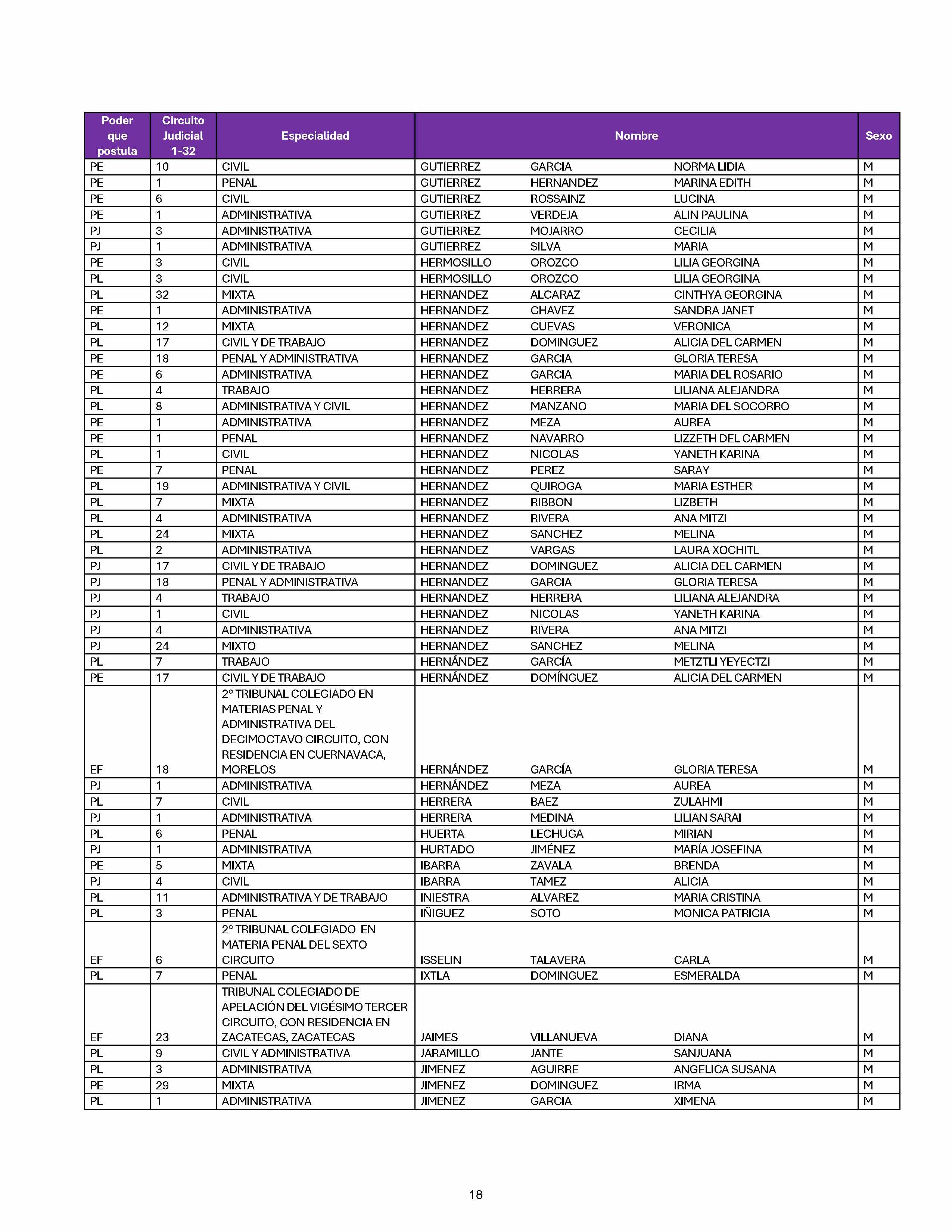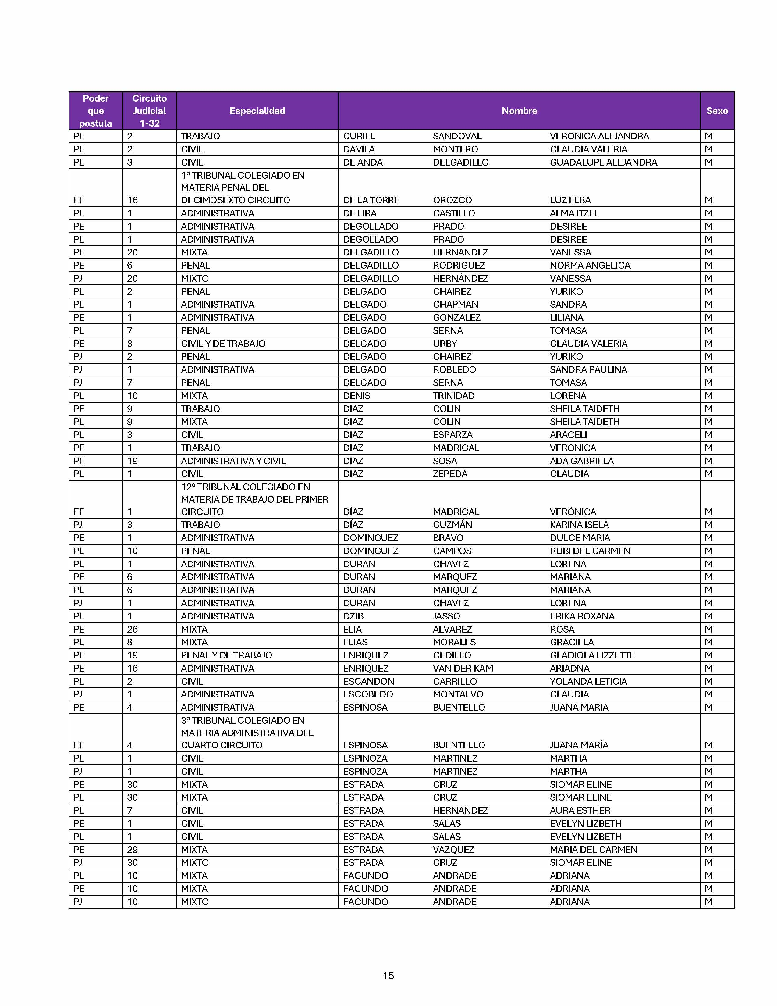 CUARTO. Se instruye a la Secretaría Ejecutiva para que realice una revisión integral de la información recibida y, en caso de, identificar inconsistencias, falta de información o se requieran precisiones respecto de las especialidades de Jueces y Juezas y Magistraturas realice los requerimientos a la Mesa Directiva de la Cámara de Senadores.