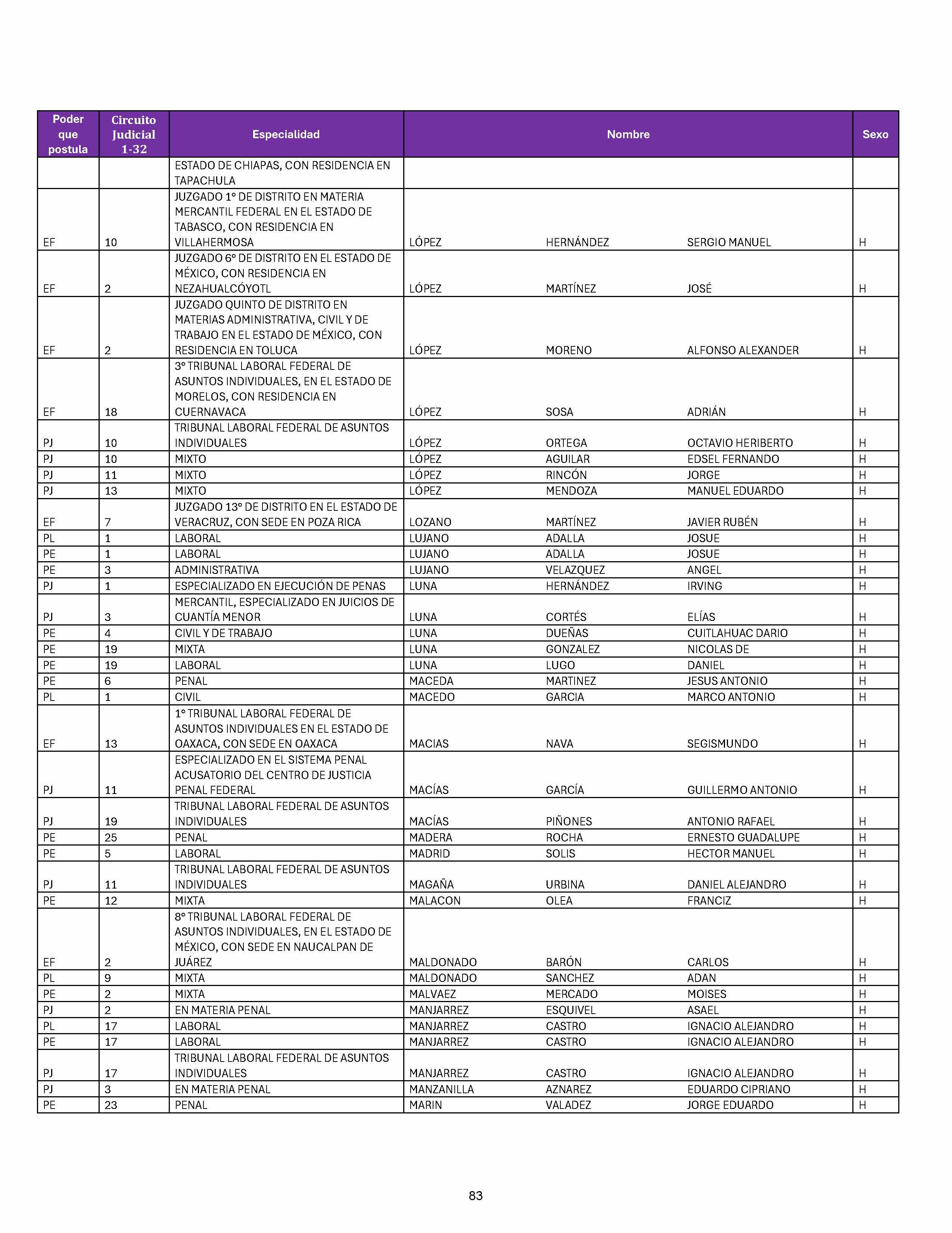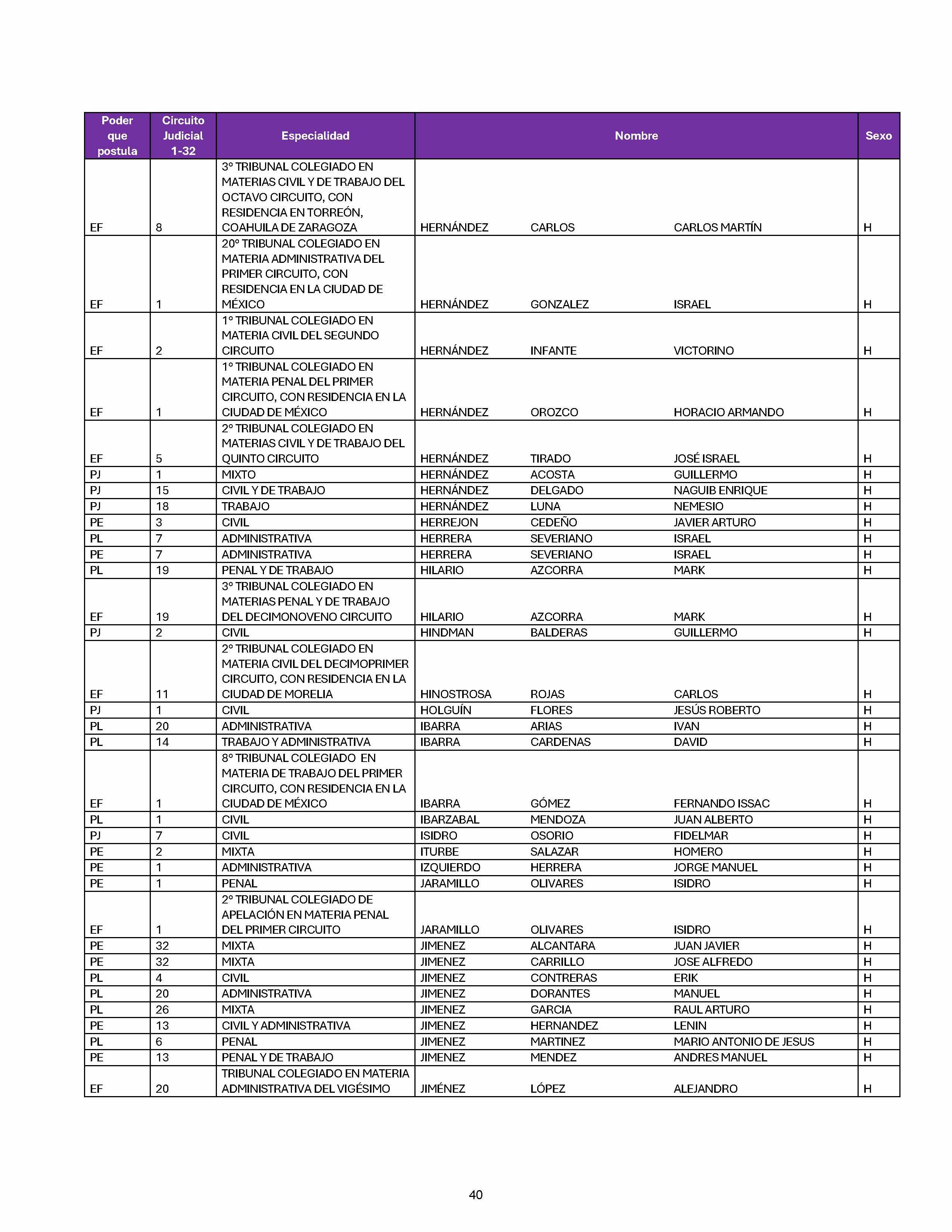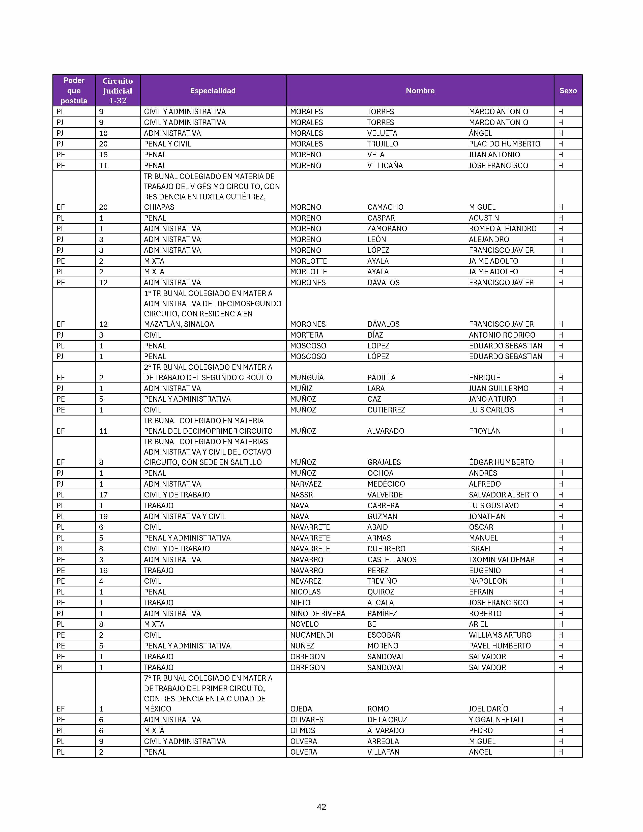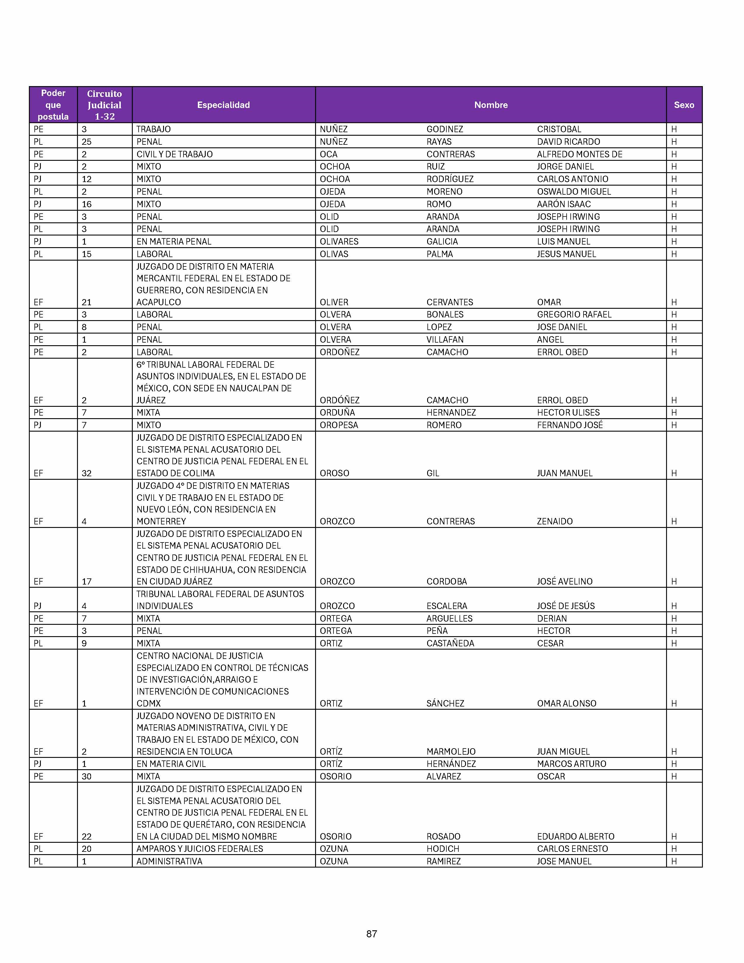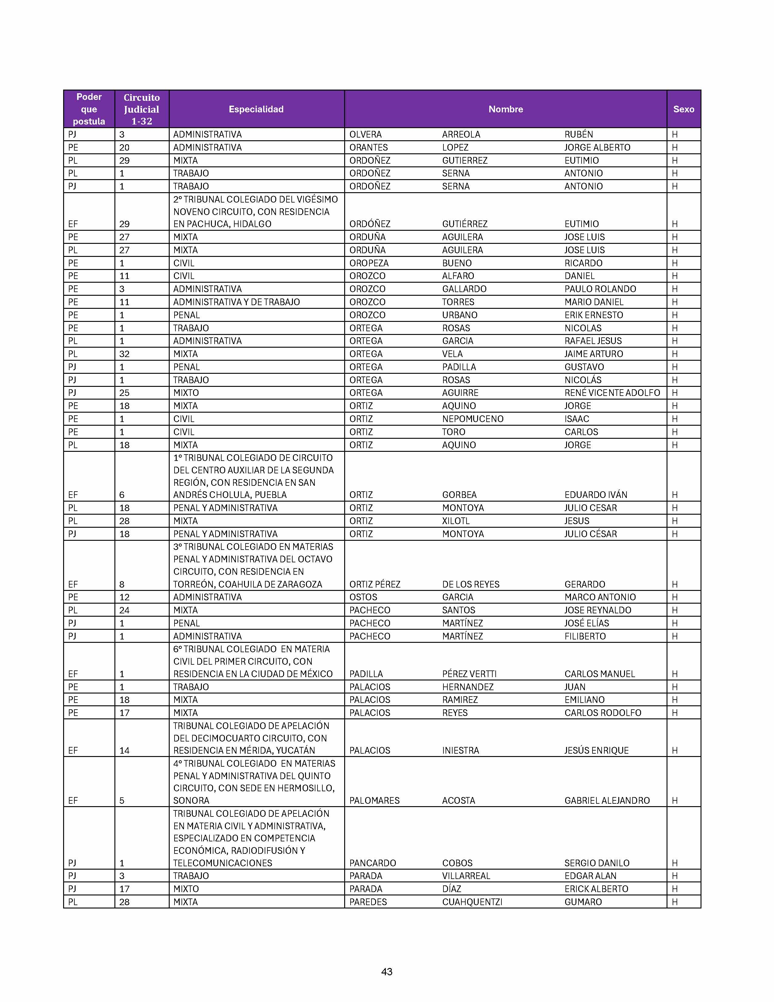 | 137. | GREGORIO RAFAEL OLVERA BONALES | JUZGADOS DE DISTRITO | TERCERO | TRIBUNAL LABORAL FEDERAL DE ASUNTOS INDIVIDUALES | Masculino | 99/202 4 |