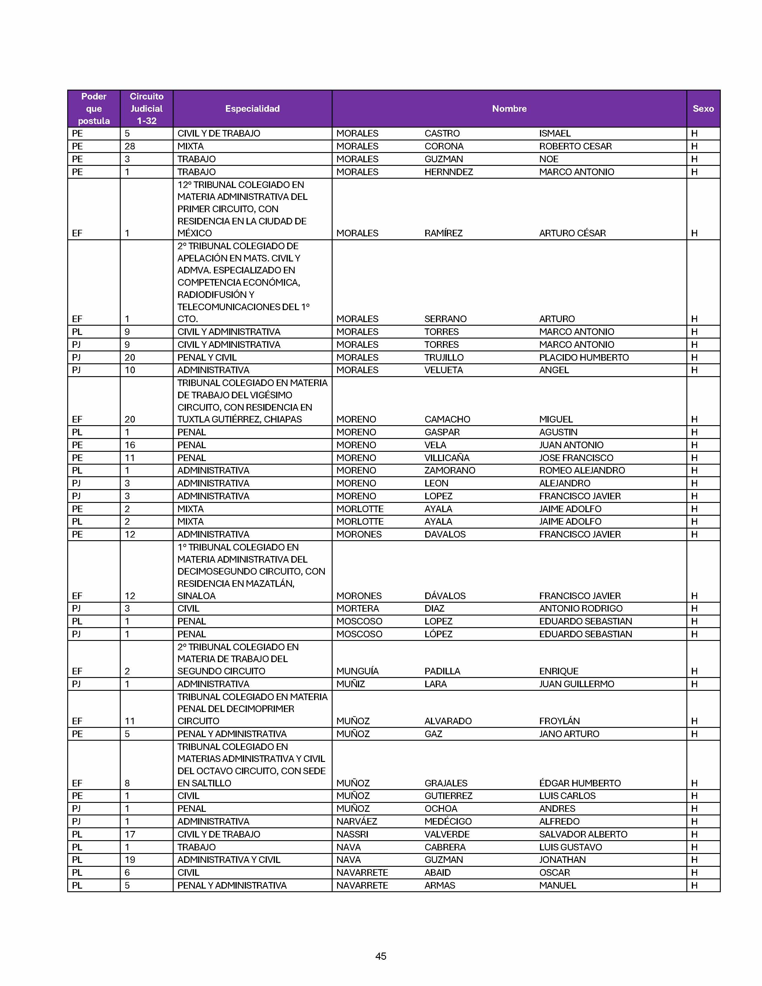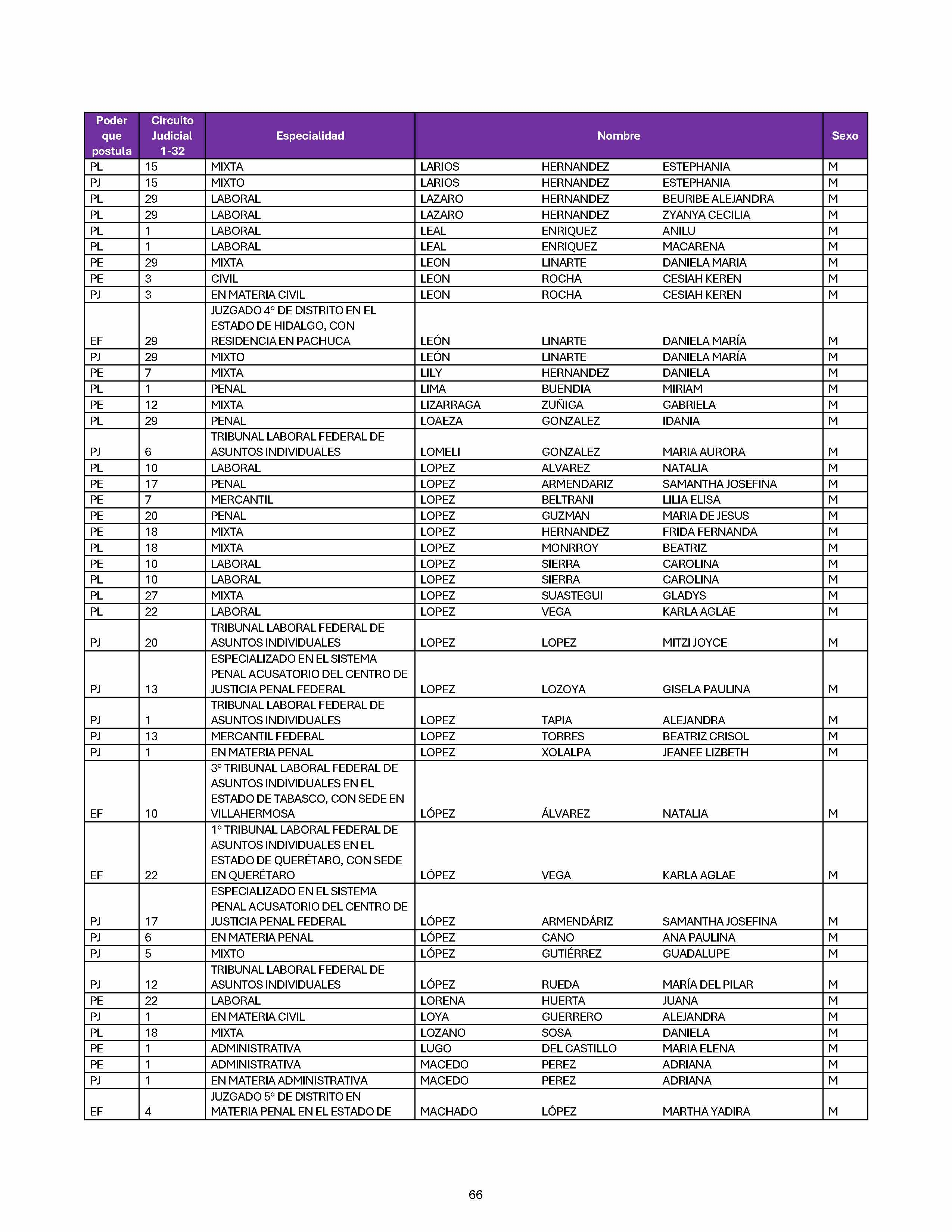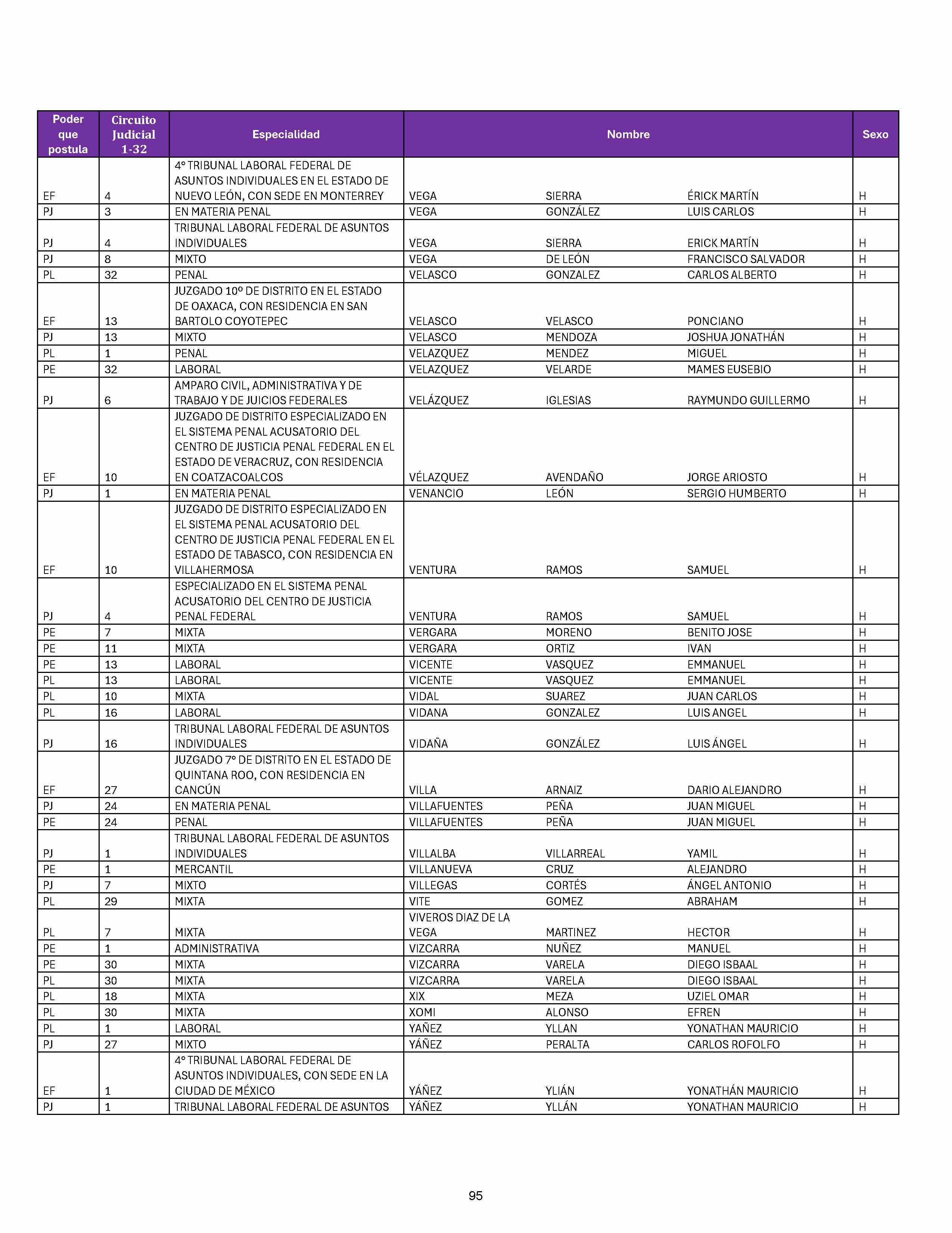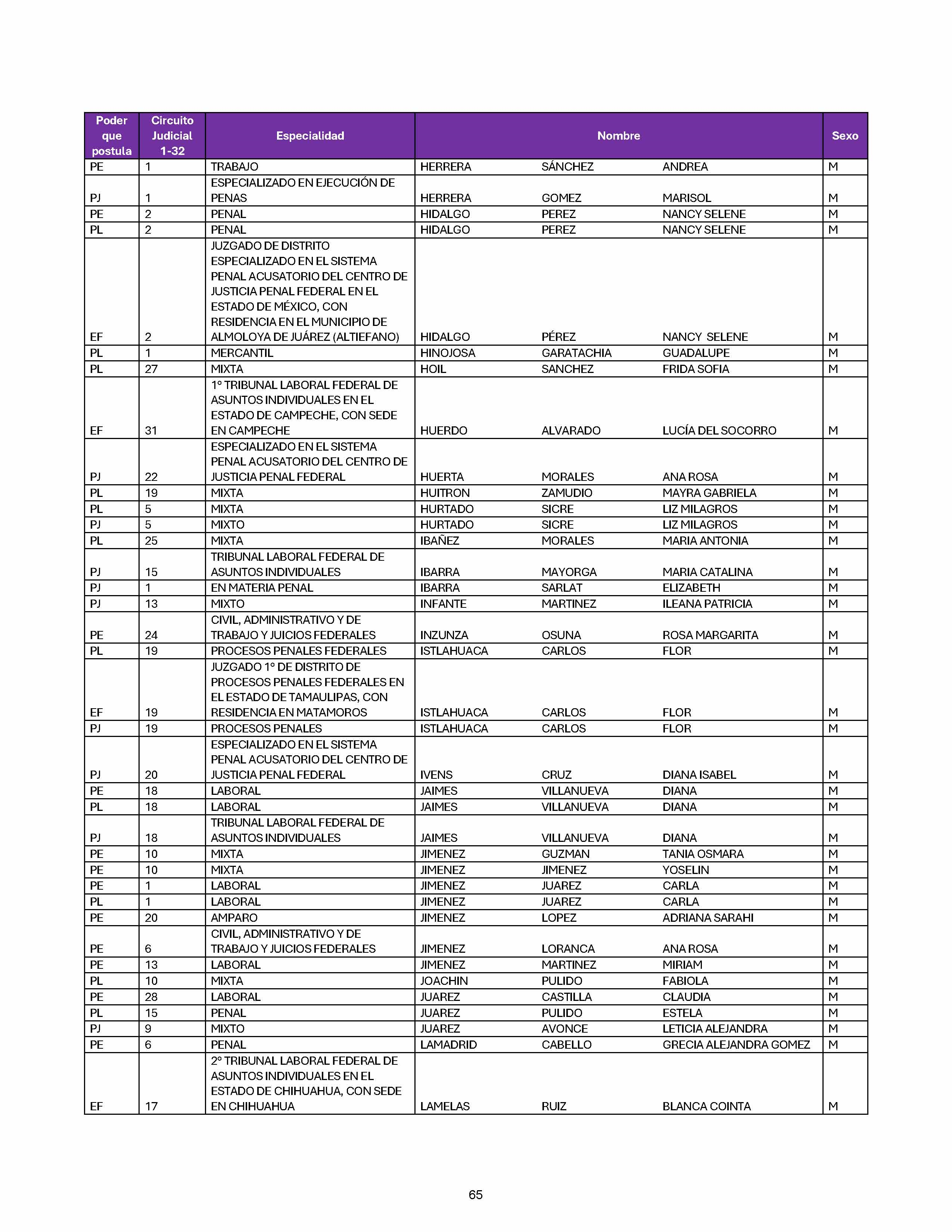 | 137. | GREGORIO RAFAEL OLVERA BONALES | JUZGADOS DE DISTRITO | TERCERO | TRIBUNAL LABORAL FEDERAL DE ASUNTOS INDIVIDUALES | Masculino | 99/202 4 |