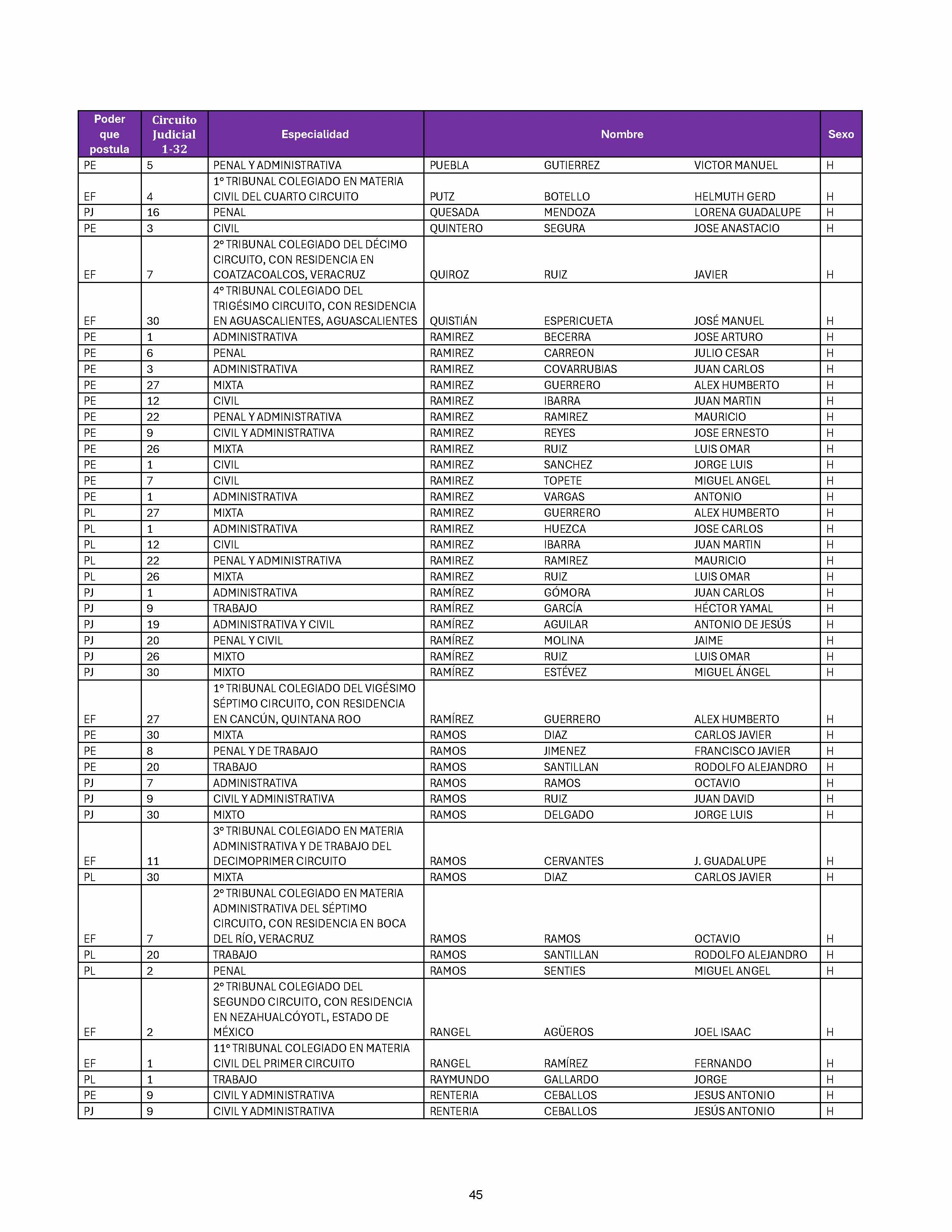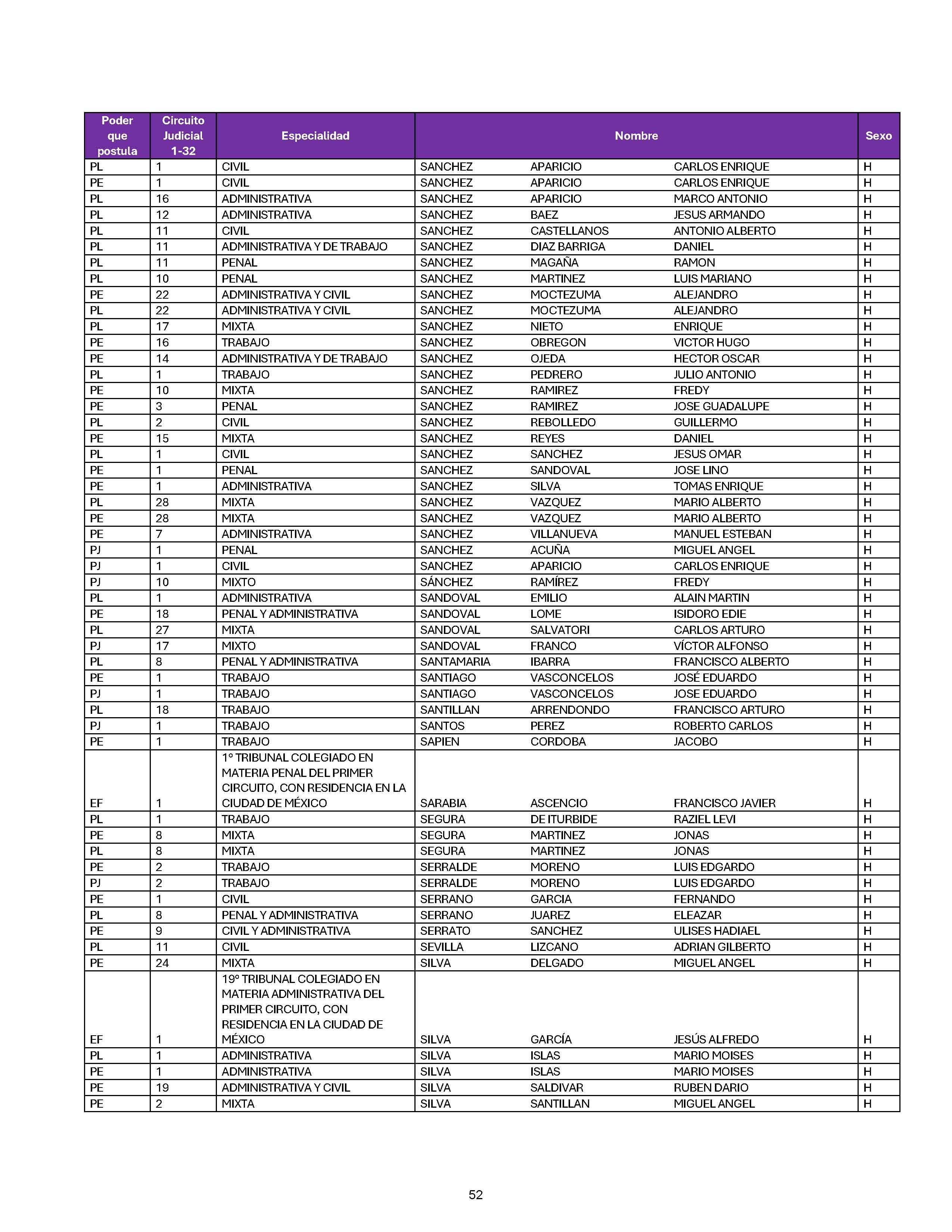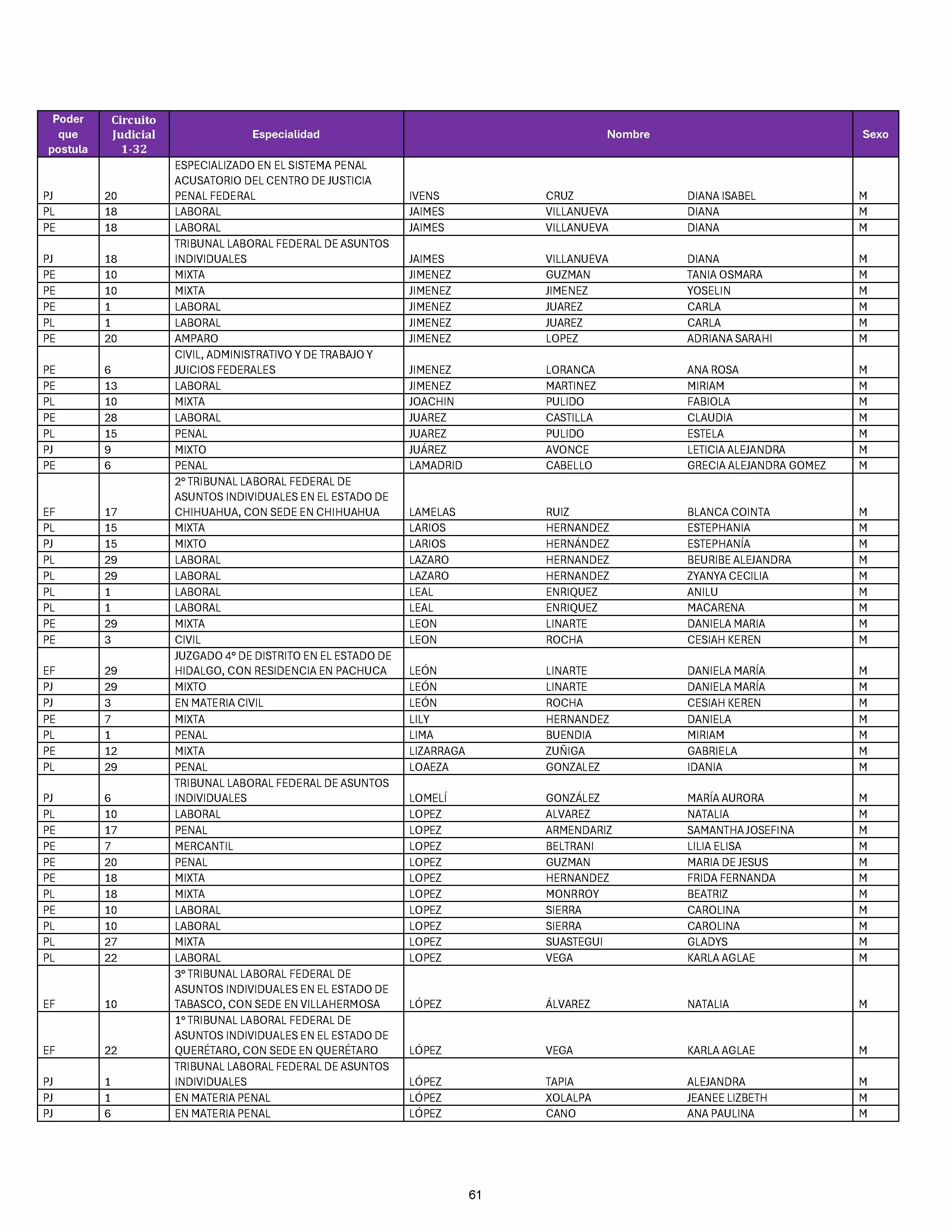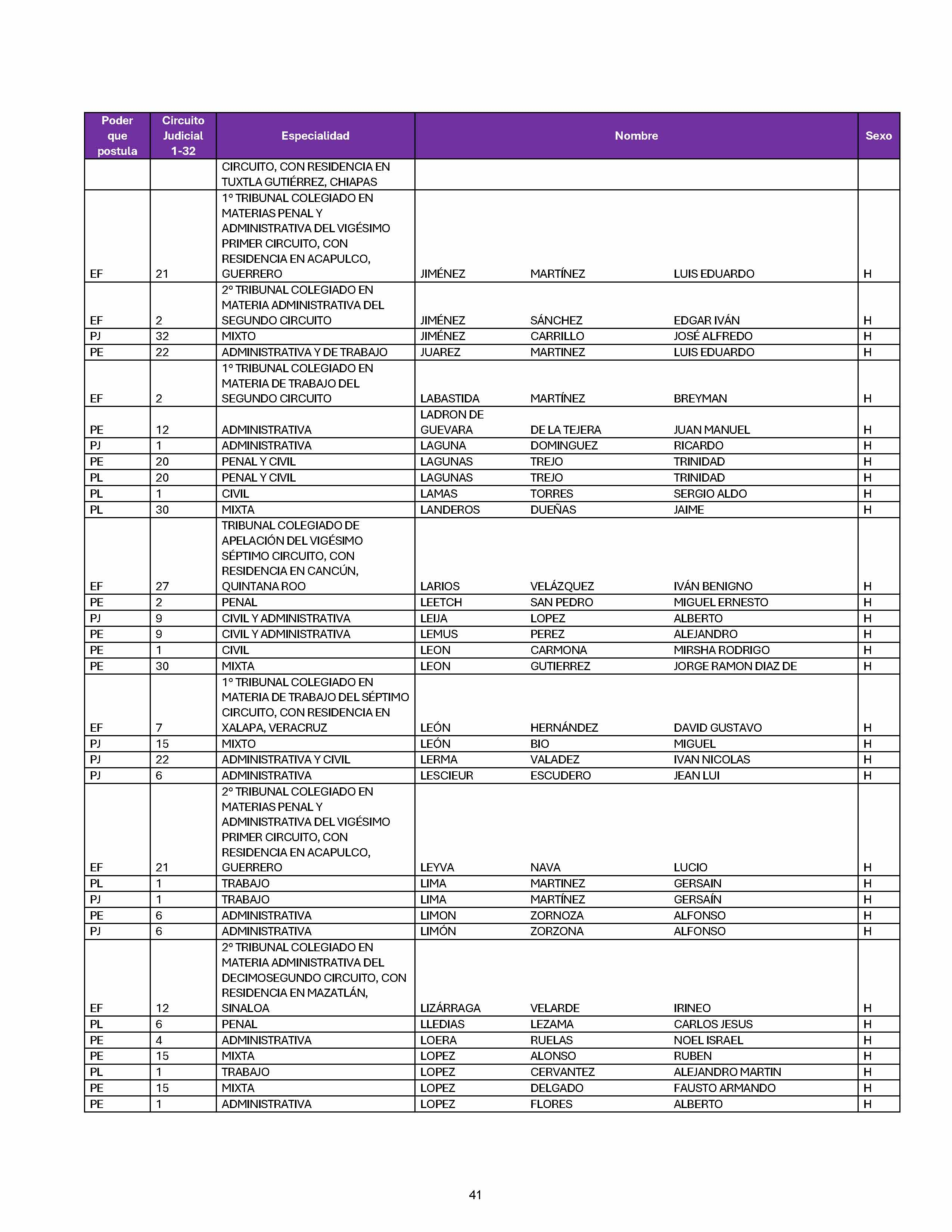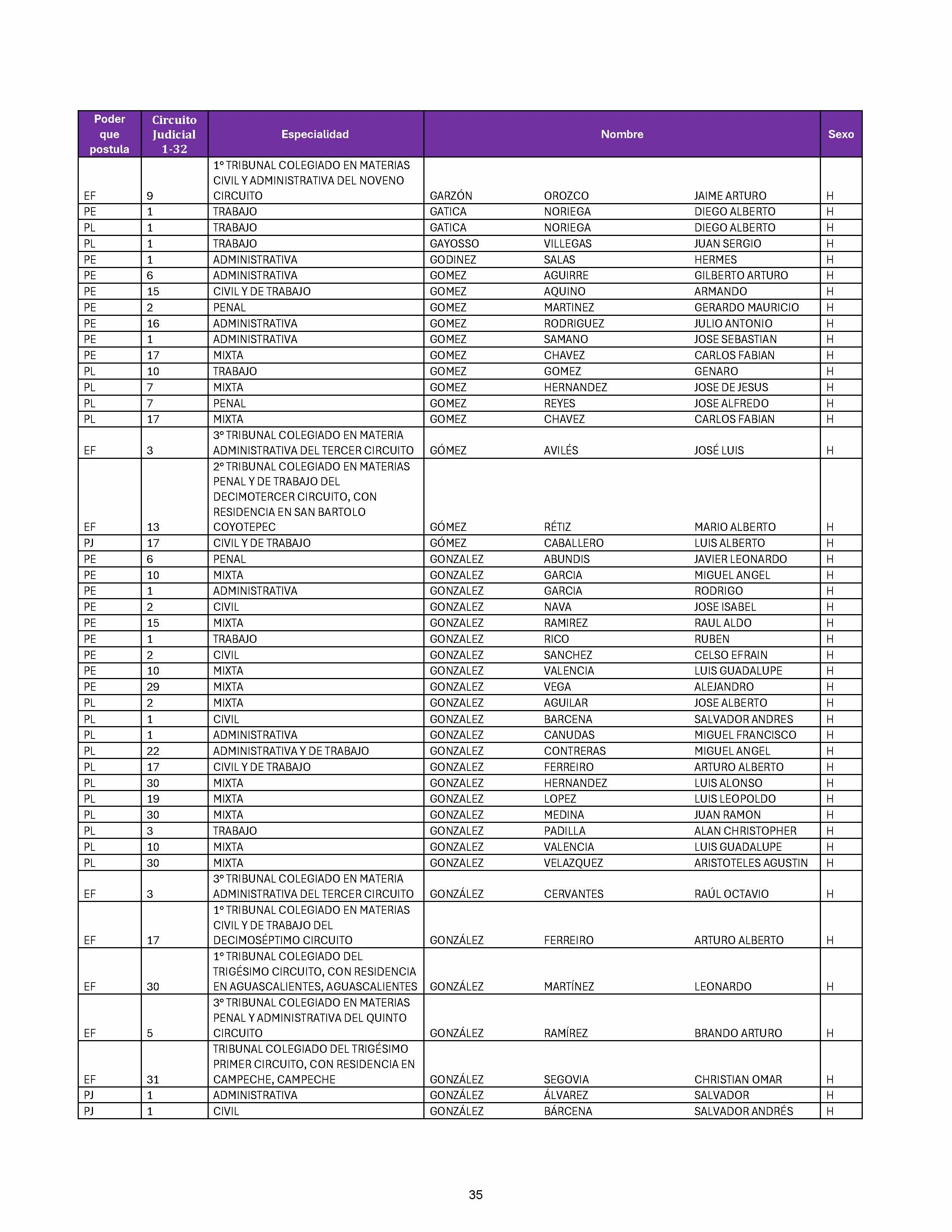 | 137. | GREGORIO RAFAEL OLVERA BONALES | JUZGADOS DE DISTRITO | TERCERO | TRIBUNAL LABORAL FEDERAL DE ASUNTOS INDIVIDUALES | Masculino | 99/202 4 |