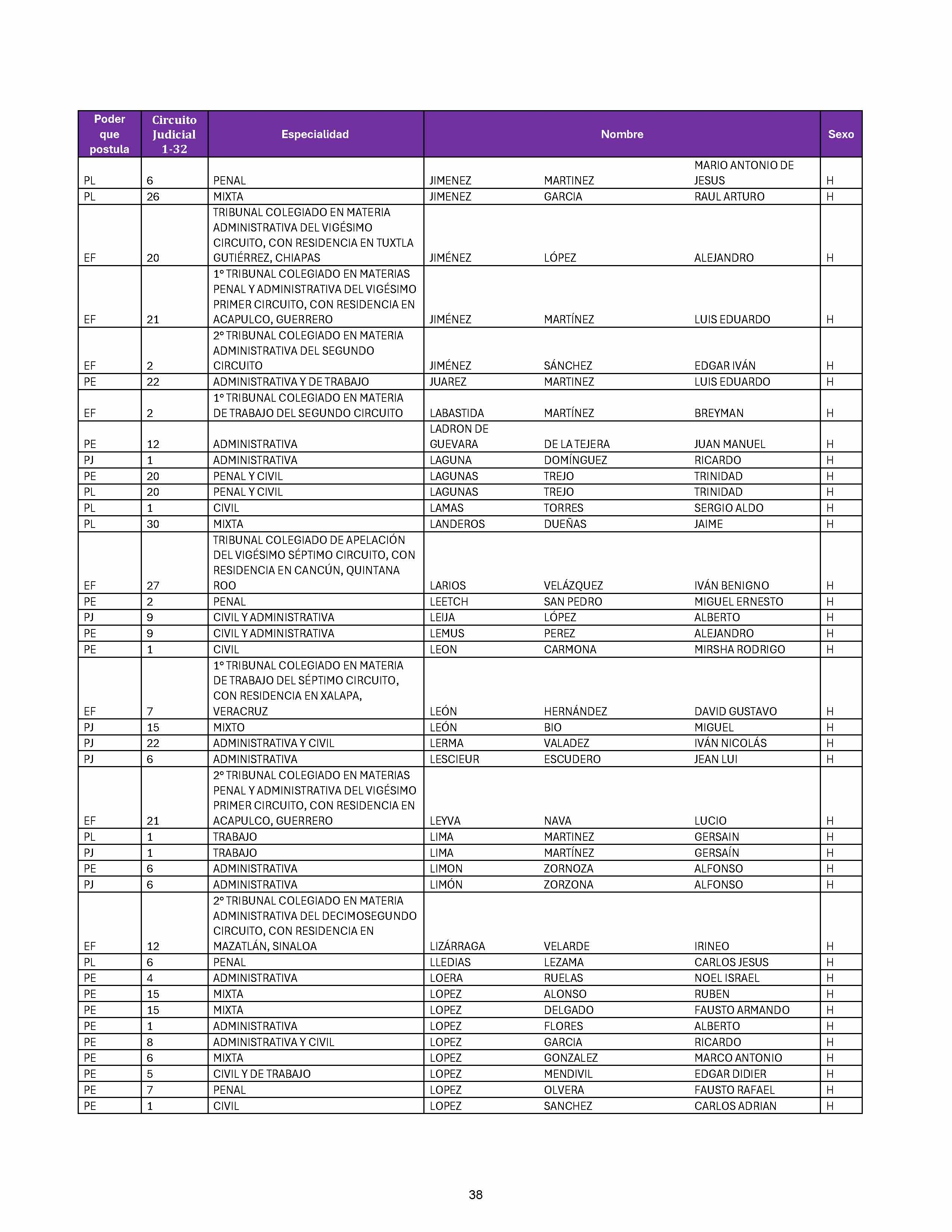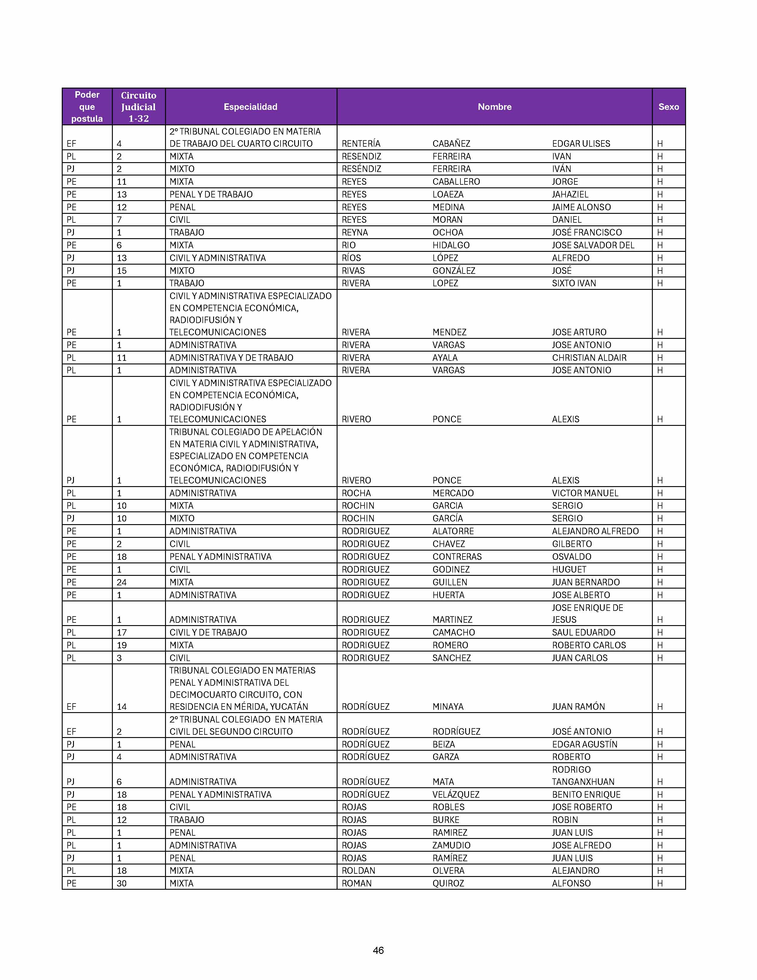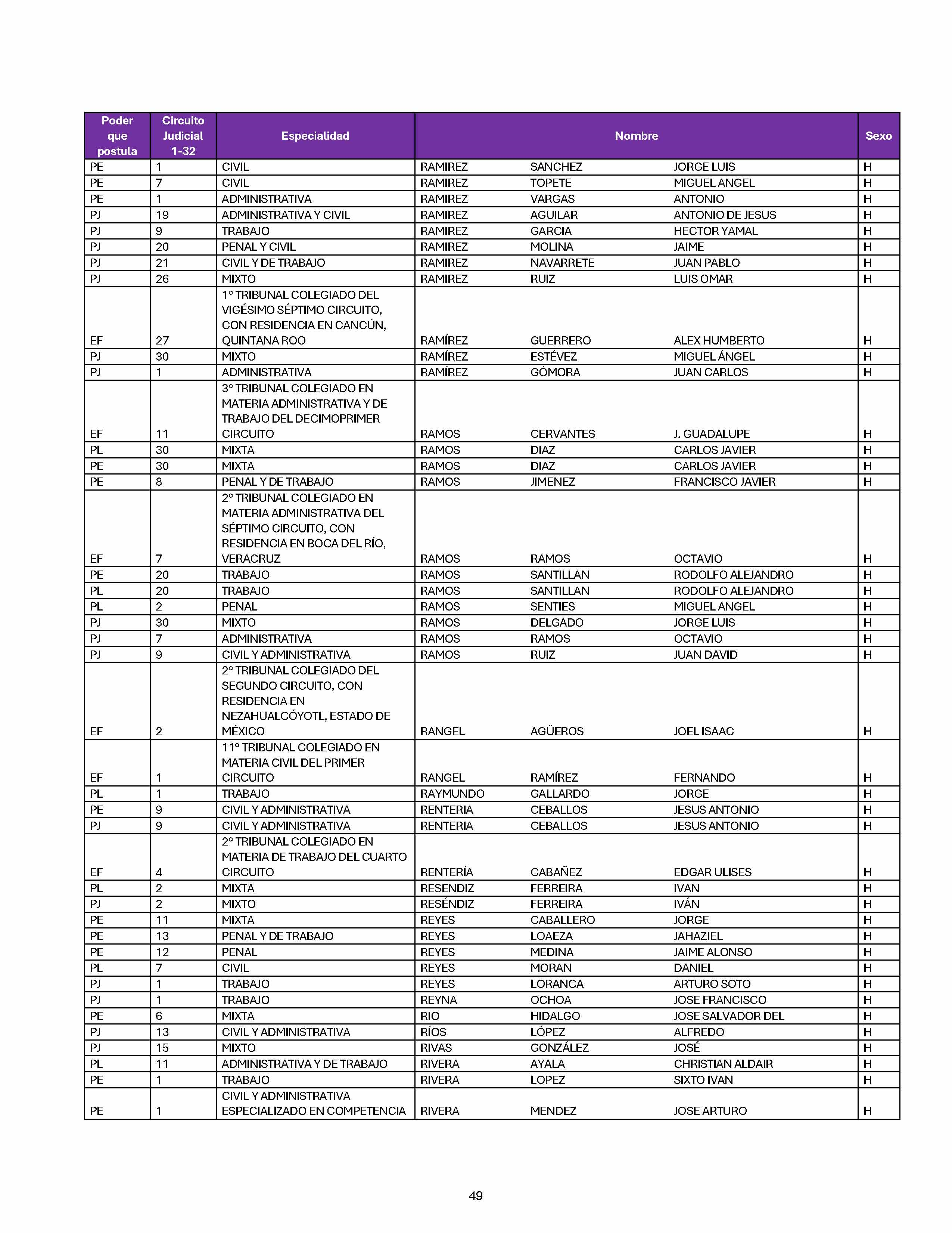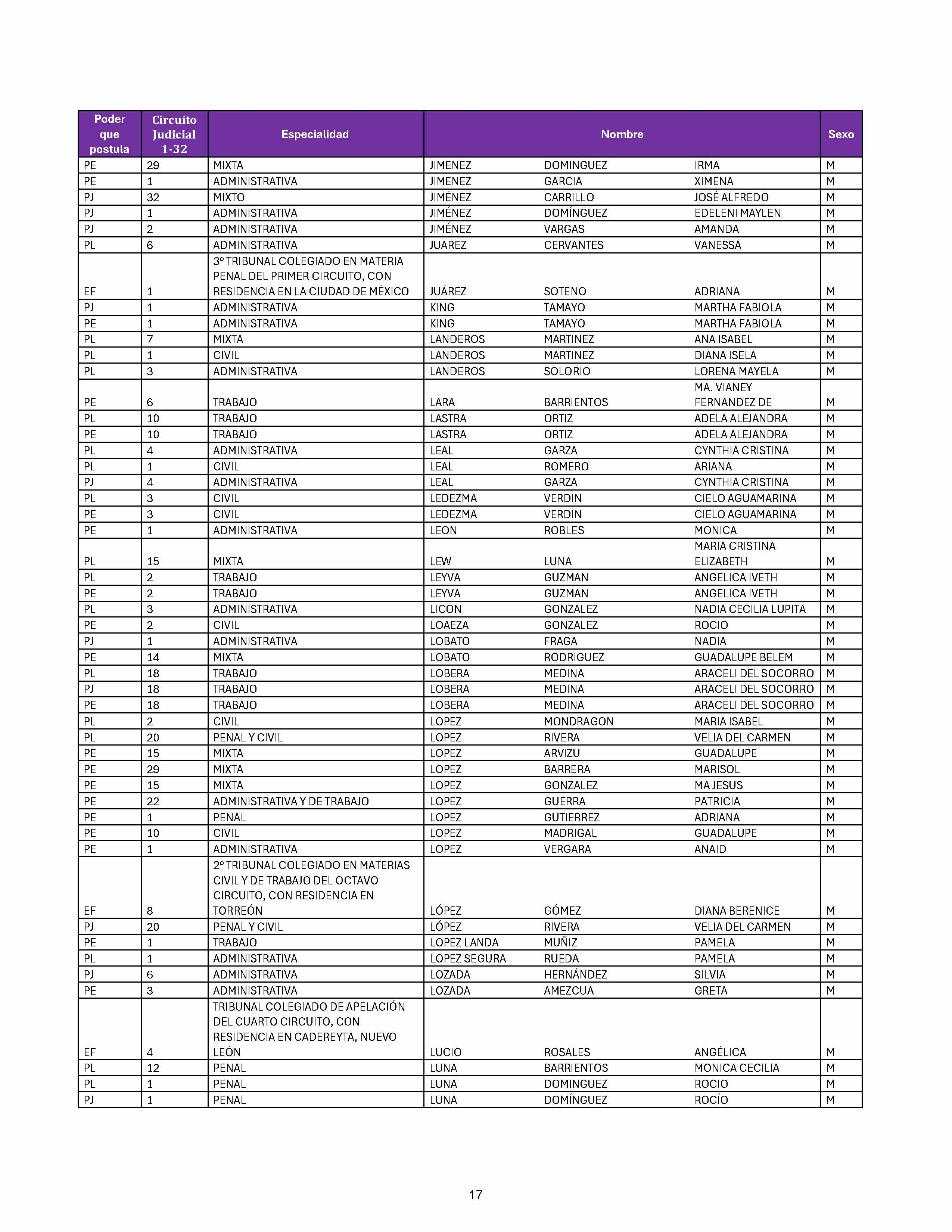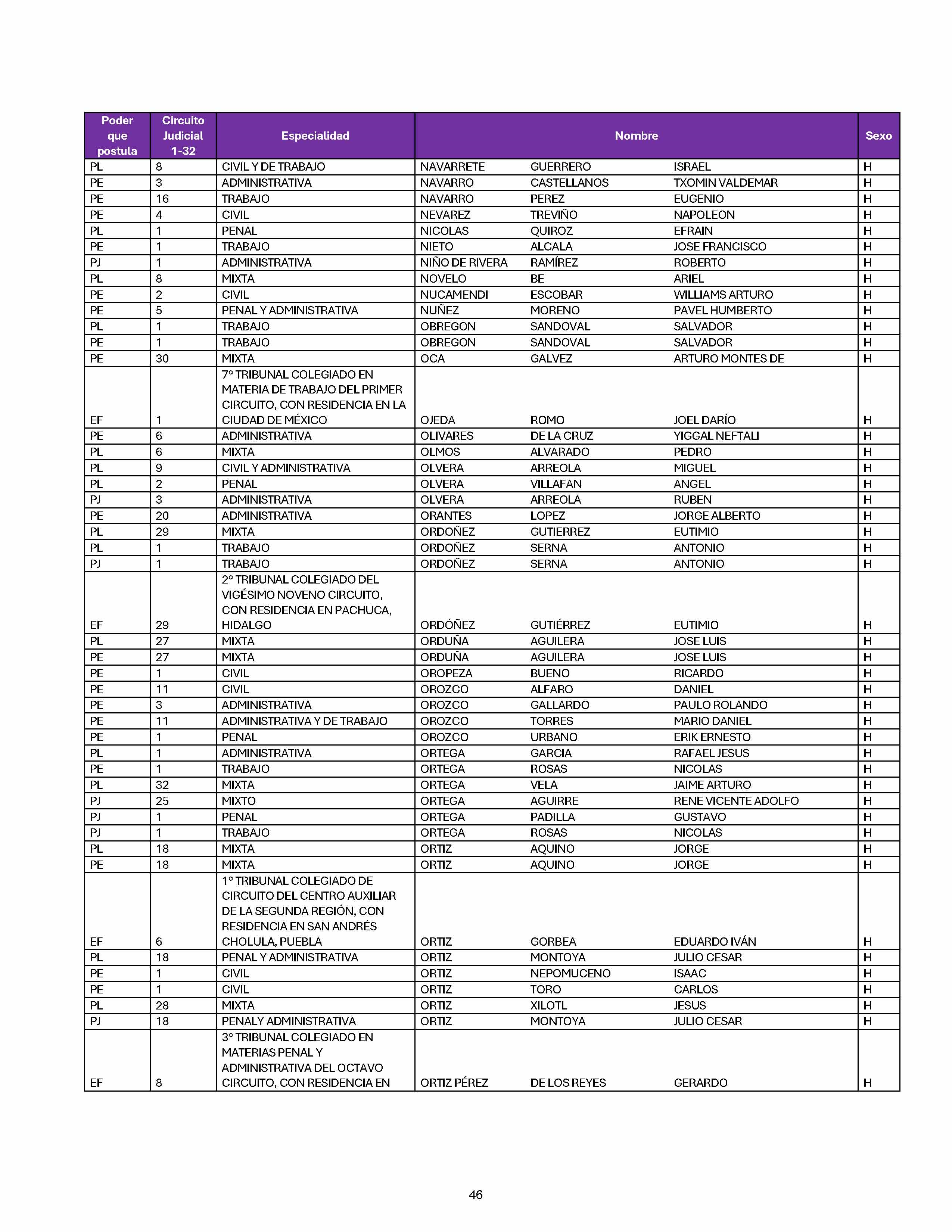 | 137. | GREGORIO RAFAEL OLVERA BONALES | JUZGADOS DE DISTRITO | TERCERO | TRIBUNAL LABORAL FEDERAL DE ASUNTOS INDIVIDUALES | Masculino | 99/202 4 |
