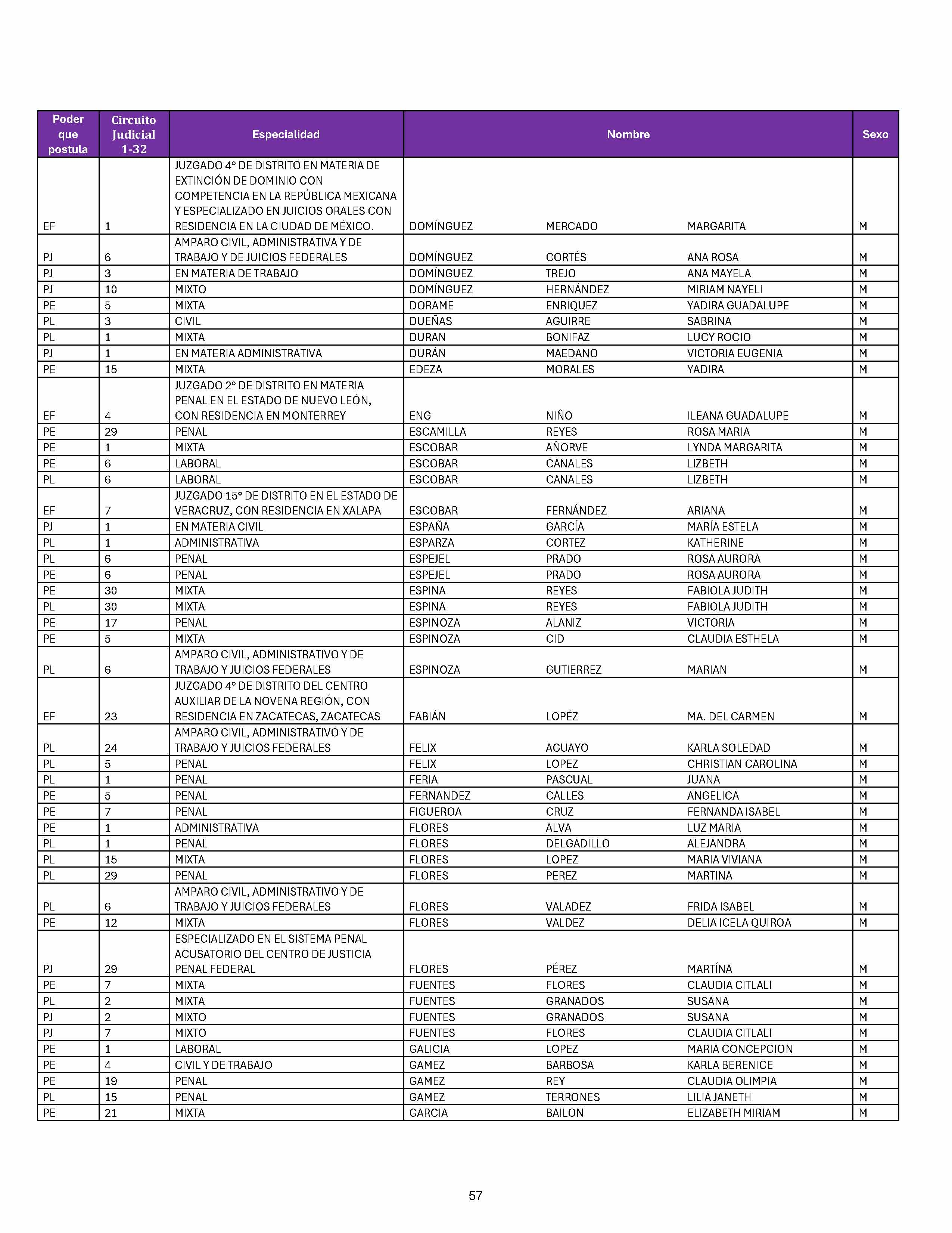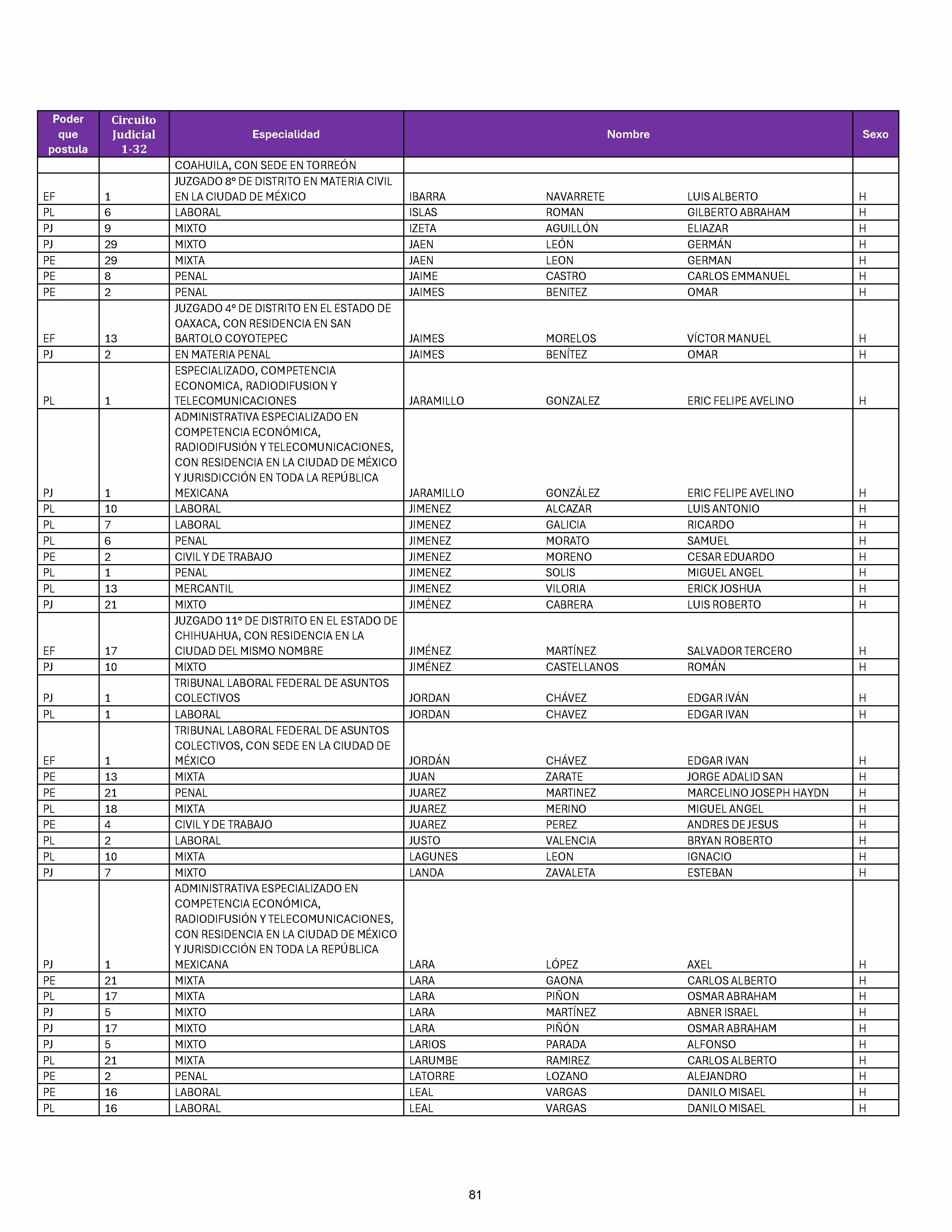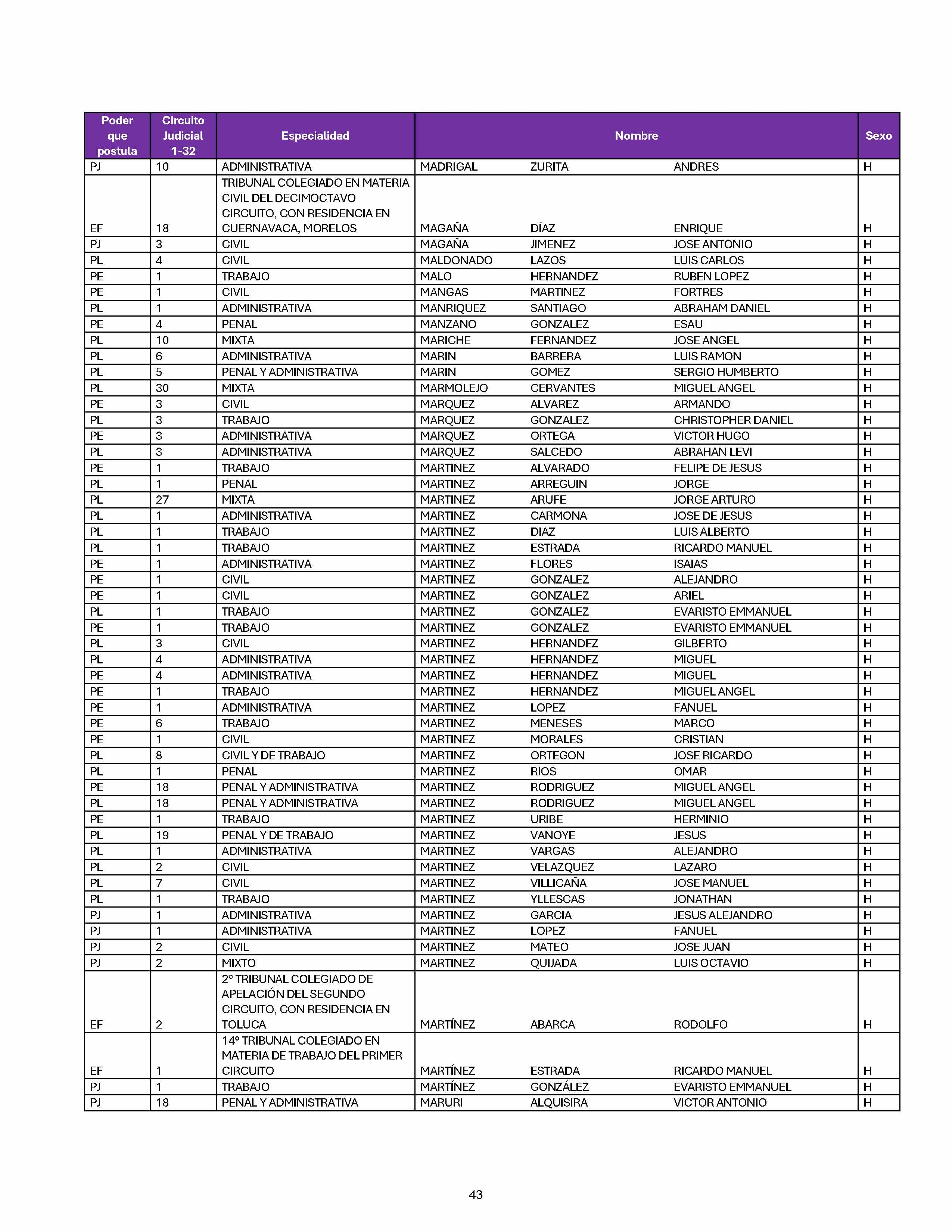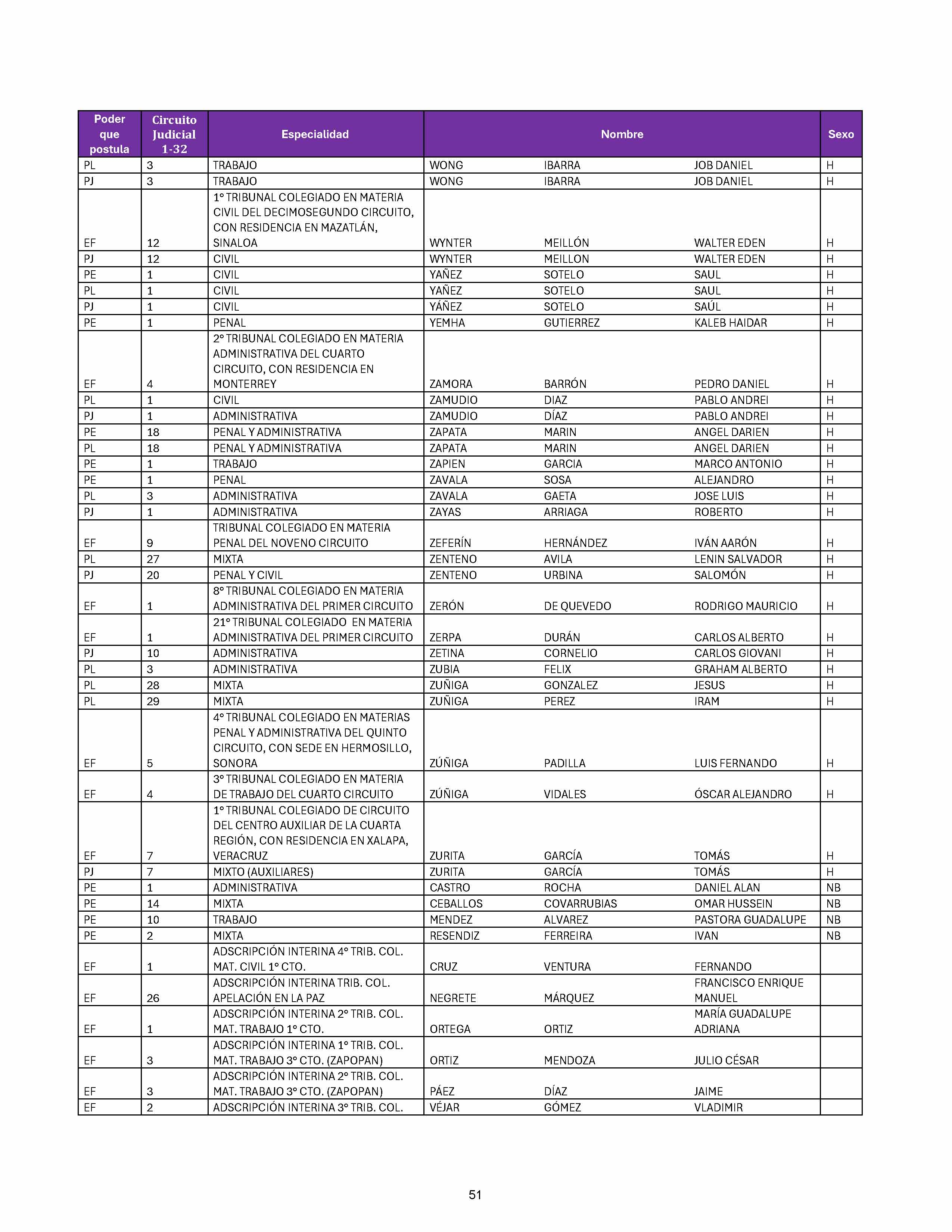 | 137. | GREGORIO RAFAEL OLVERA BONALES | JUZGADOS DE DISTRITO | TERCERO | TRIBUNAL LABORAL FEDERAL DE ASUNTOS INDIVIDUALES | Masculino | 99/202 4 |