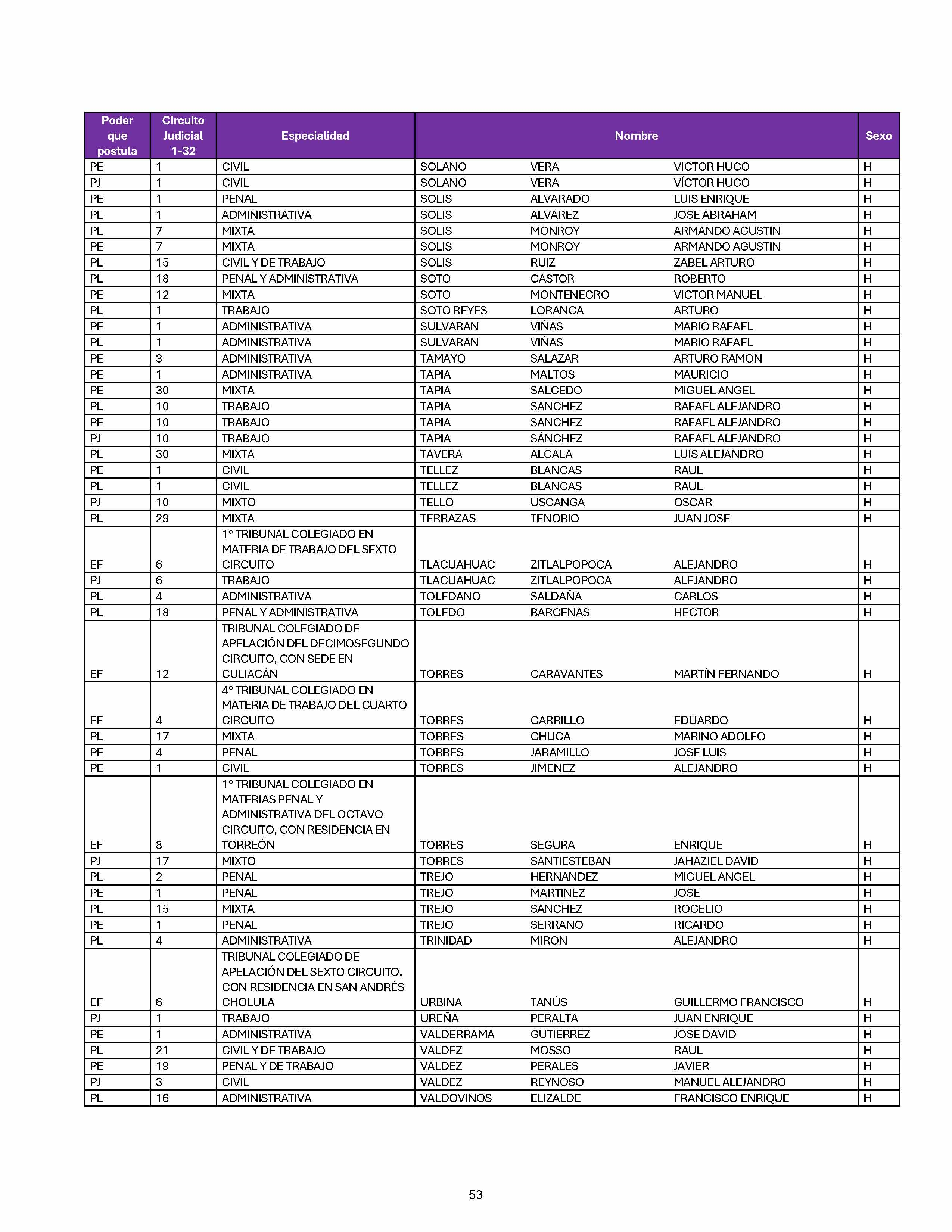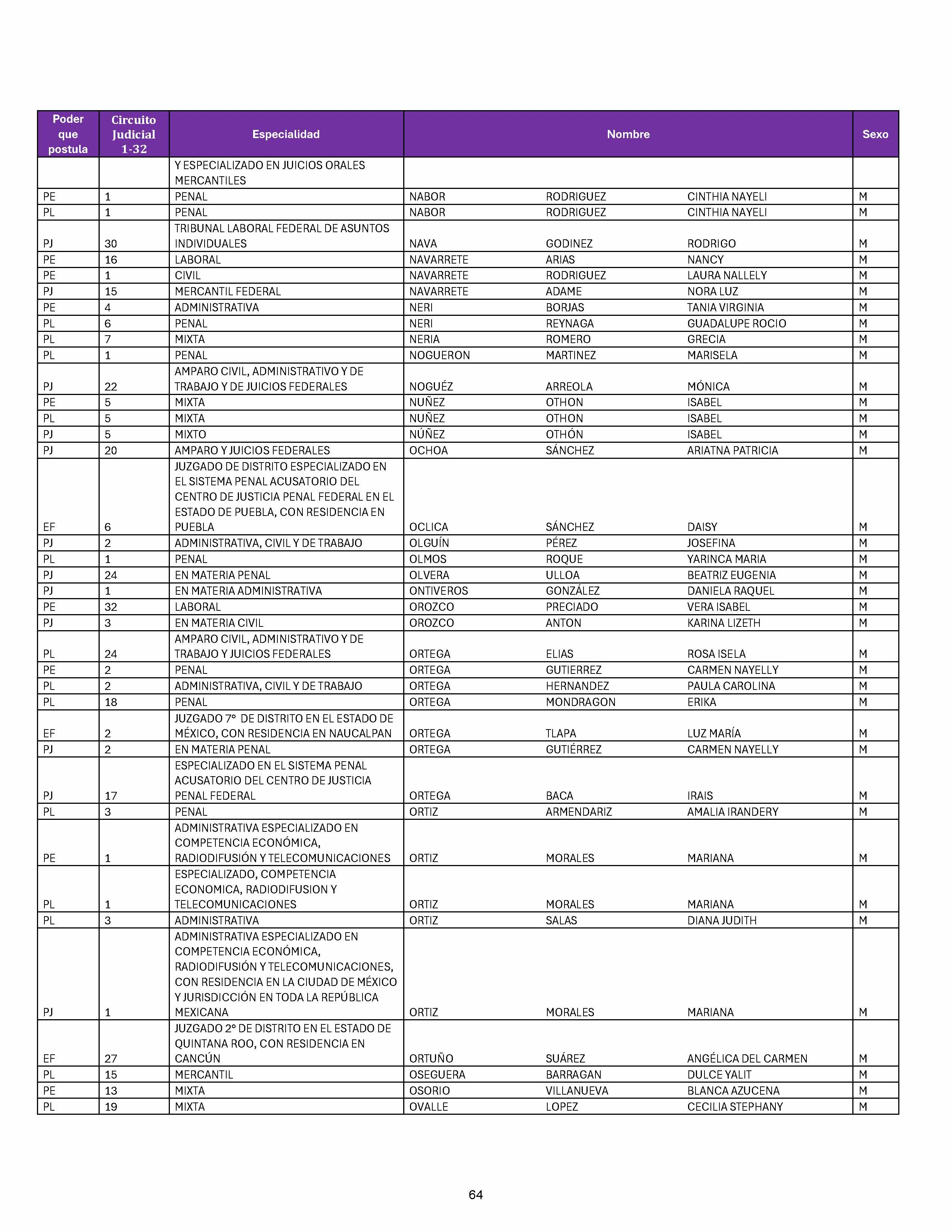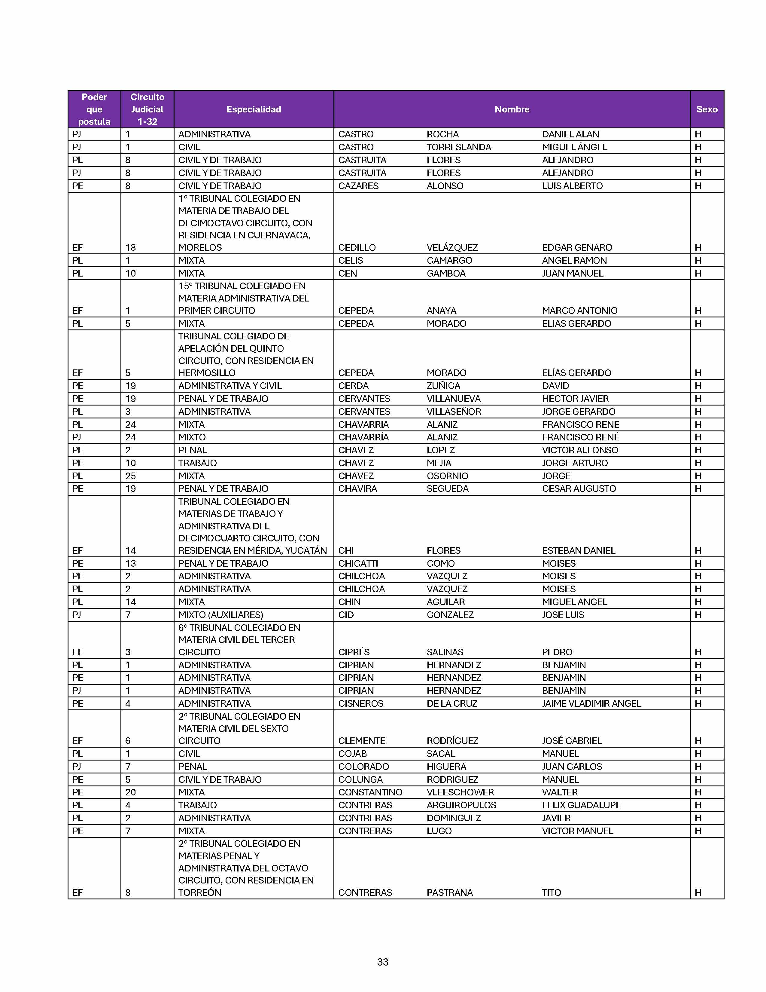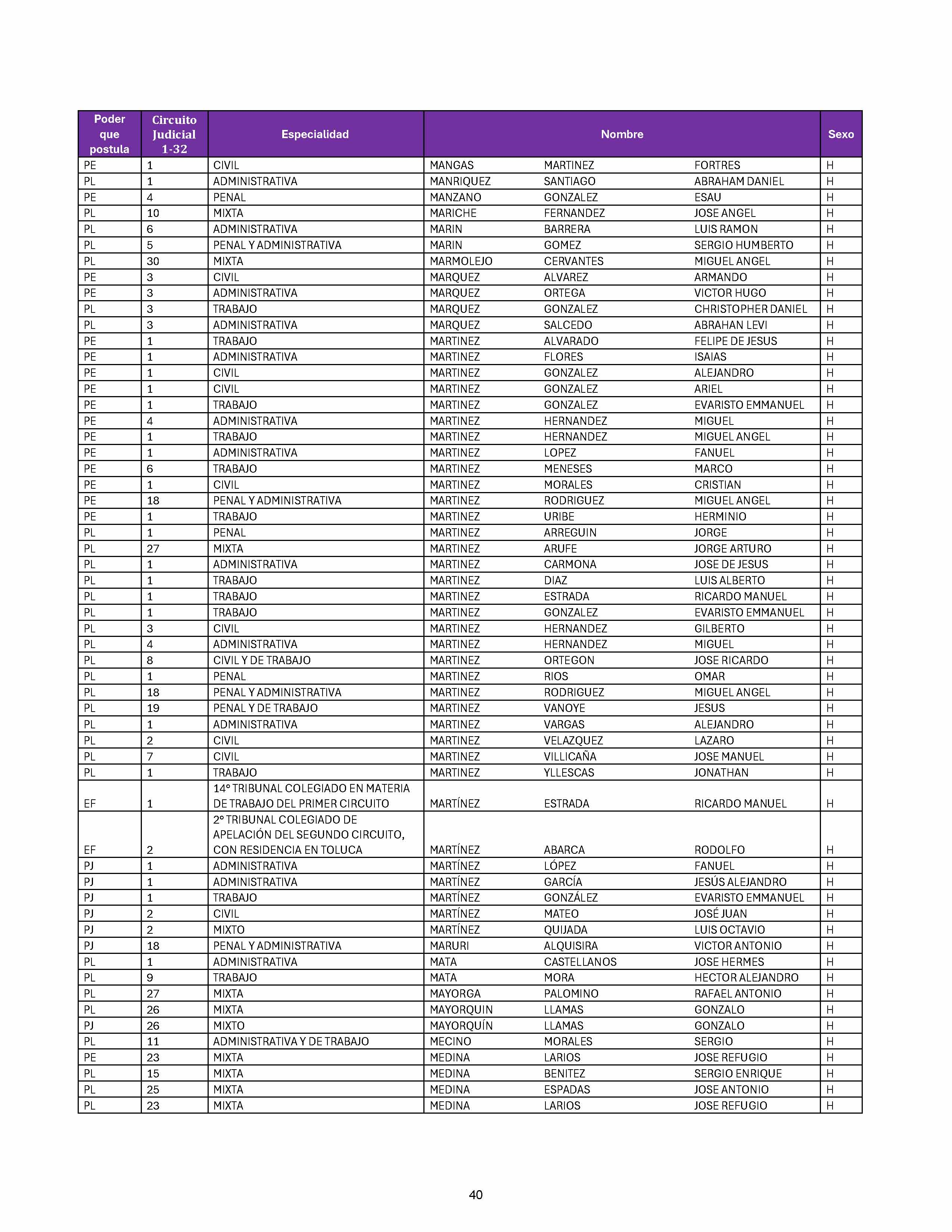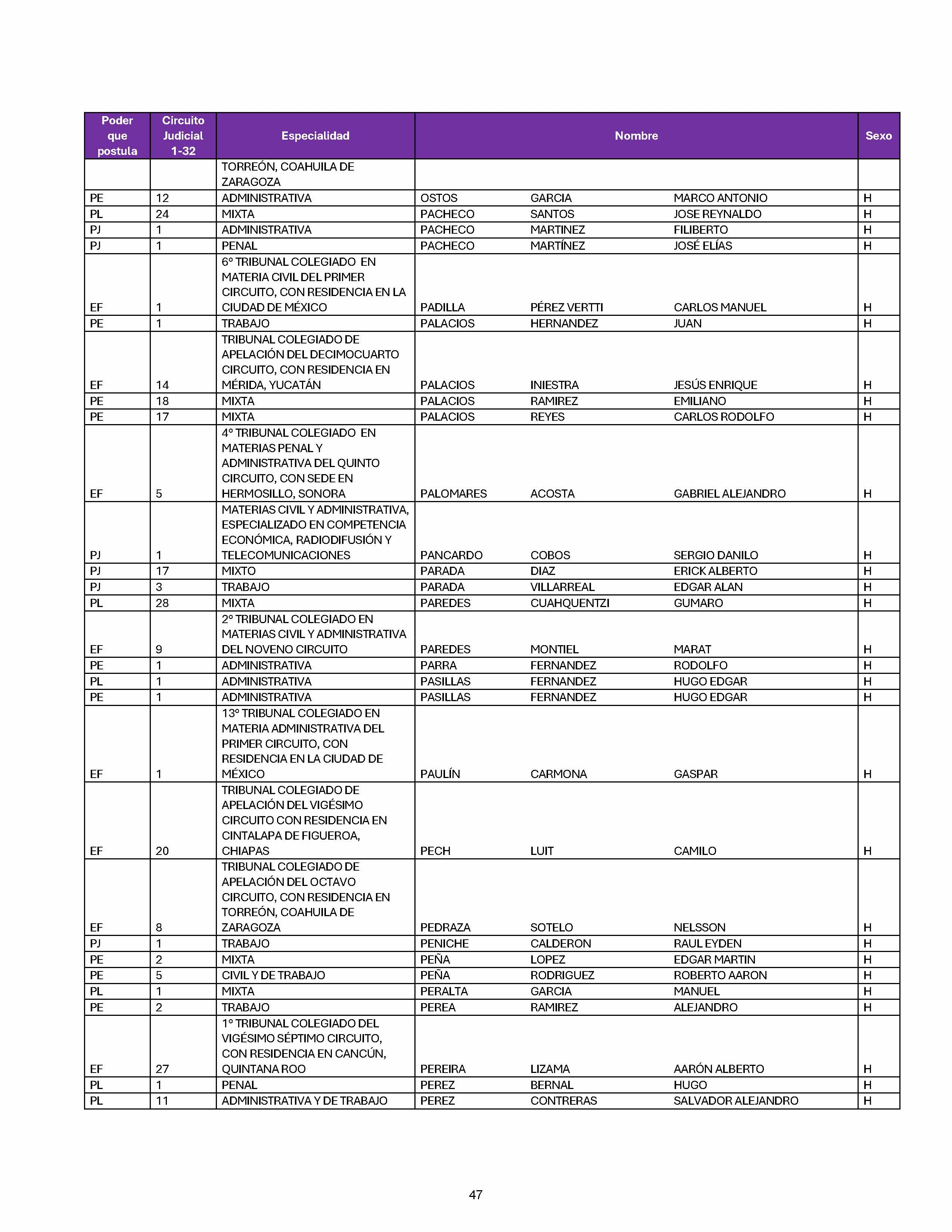 | 137. | GREGORIO RAFAEL OLVERA BONALES | JUZGADOS DE DISTRITO | TERCERO | TRIBUNAL LABORAL FEDERAL DE ASUNTOS INDIVIDUALES | Masculino | 99/202 4 |