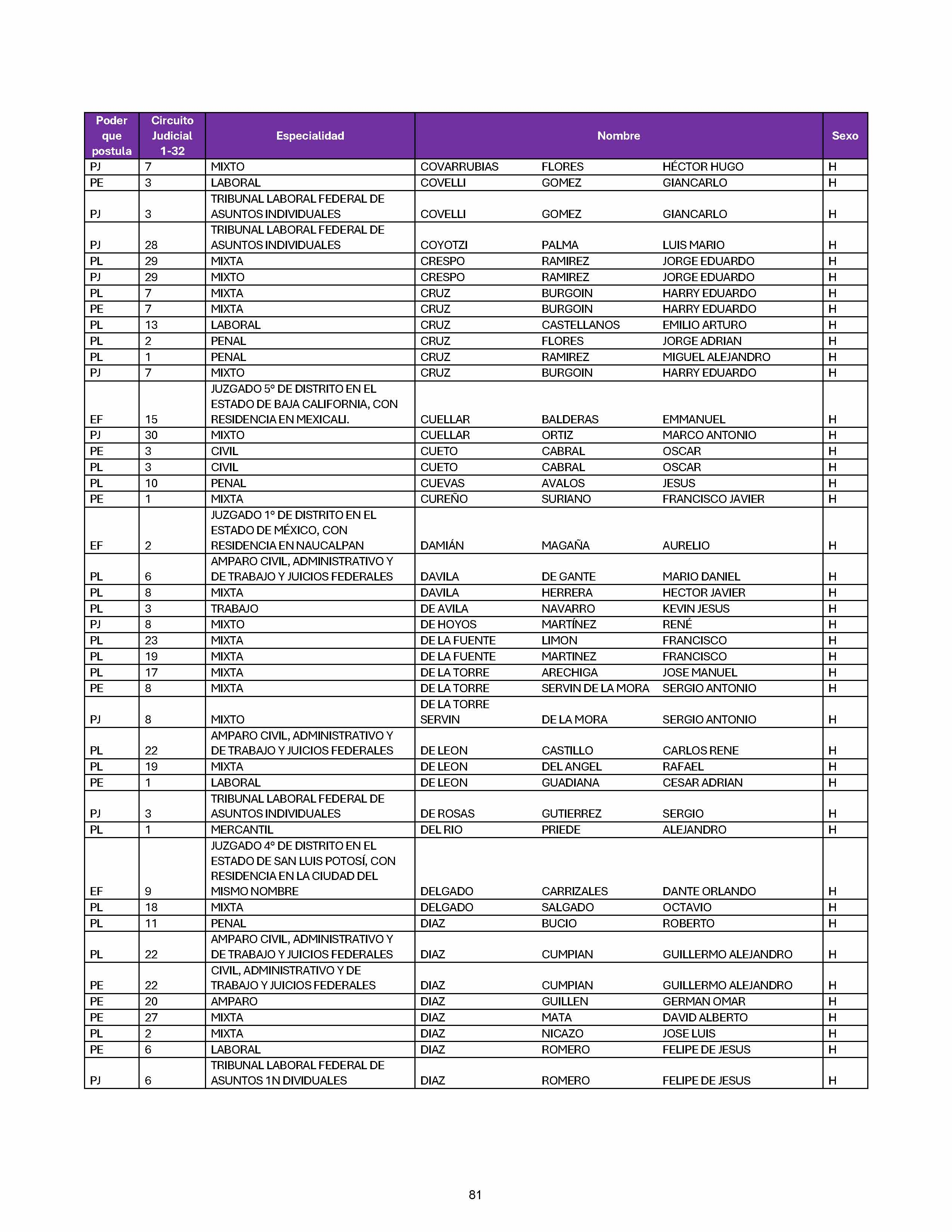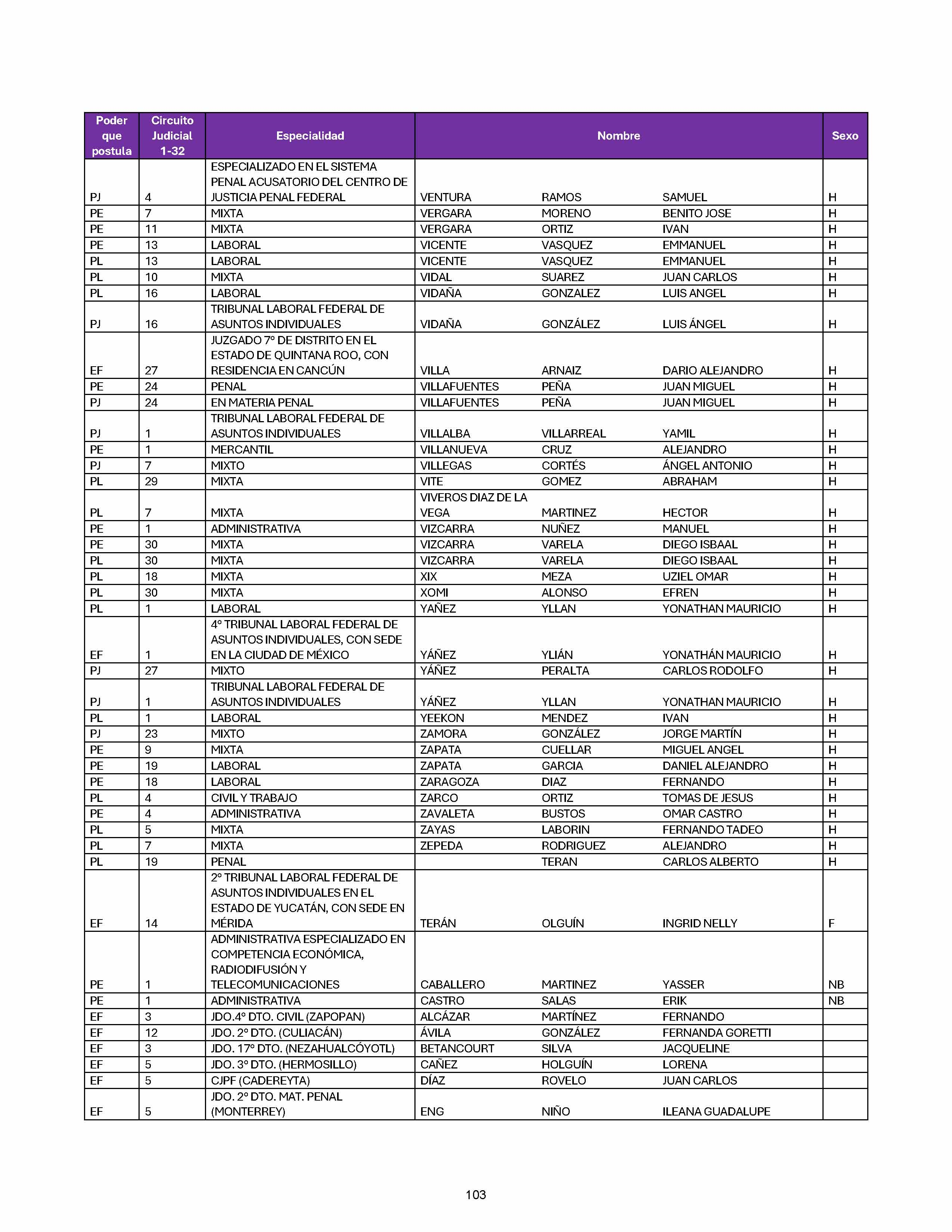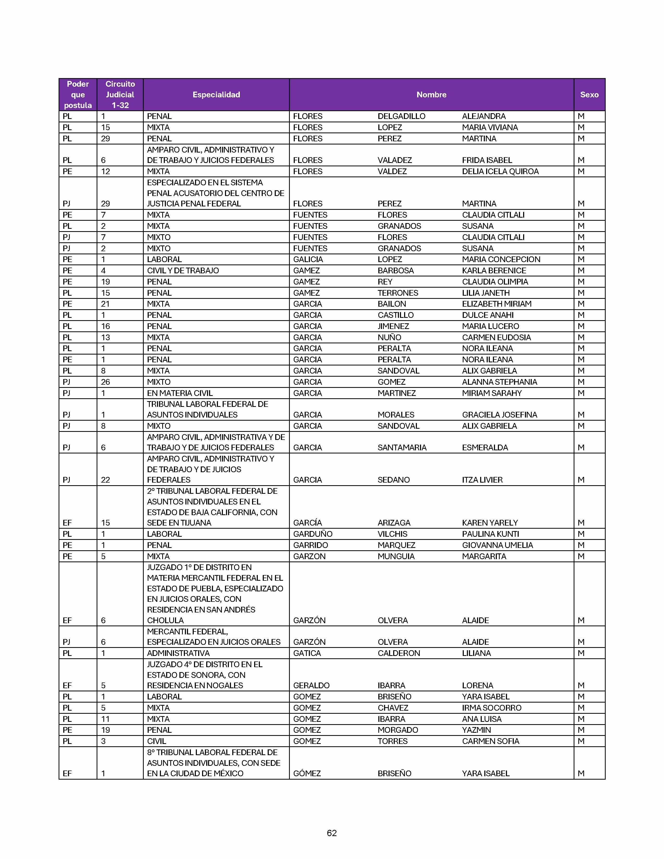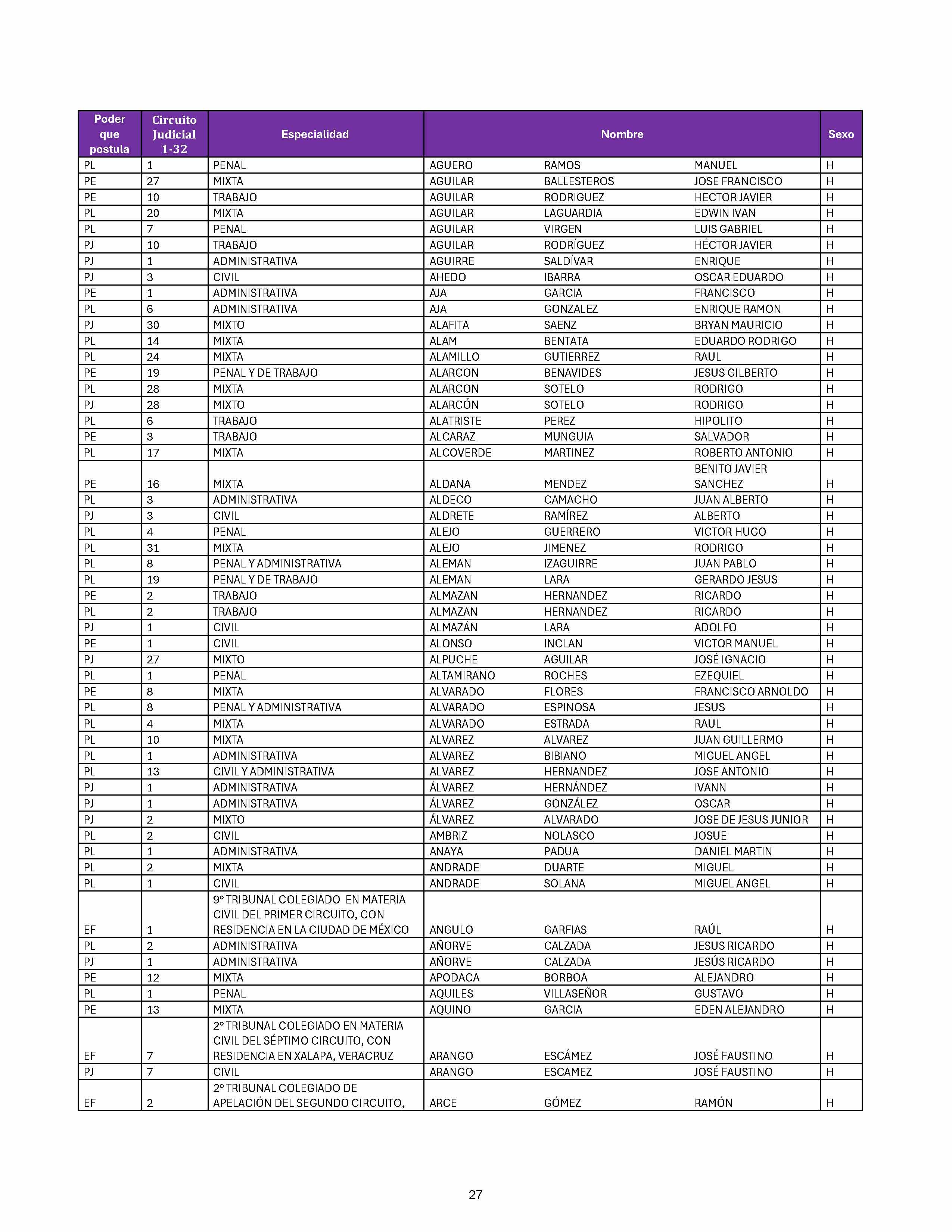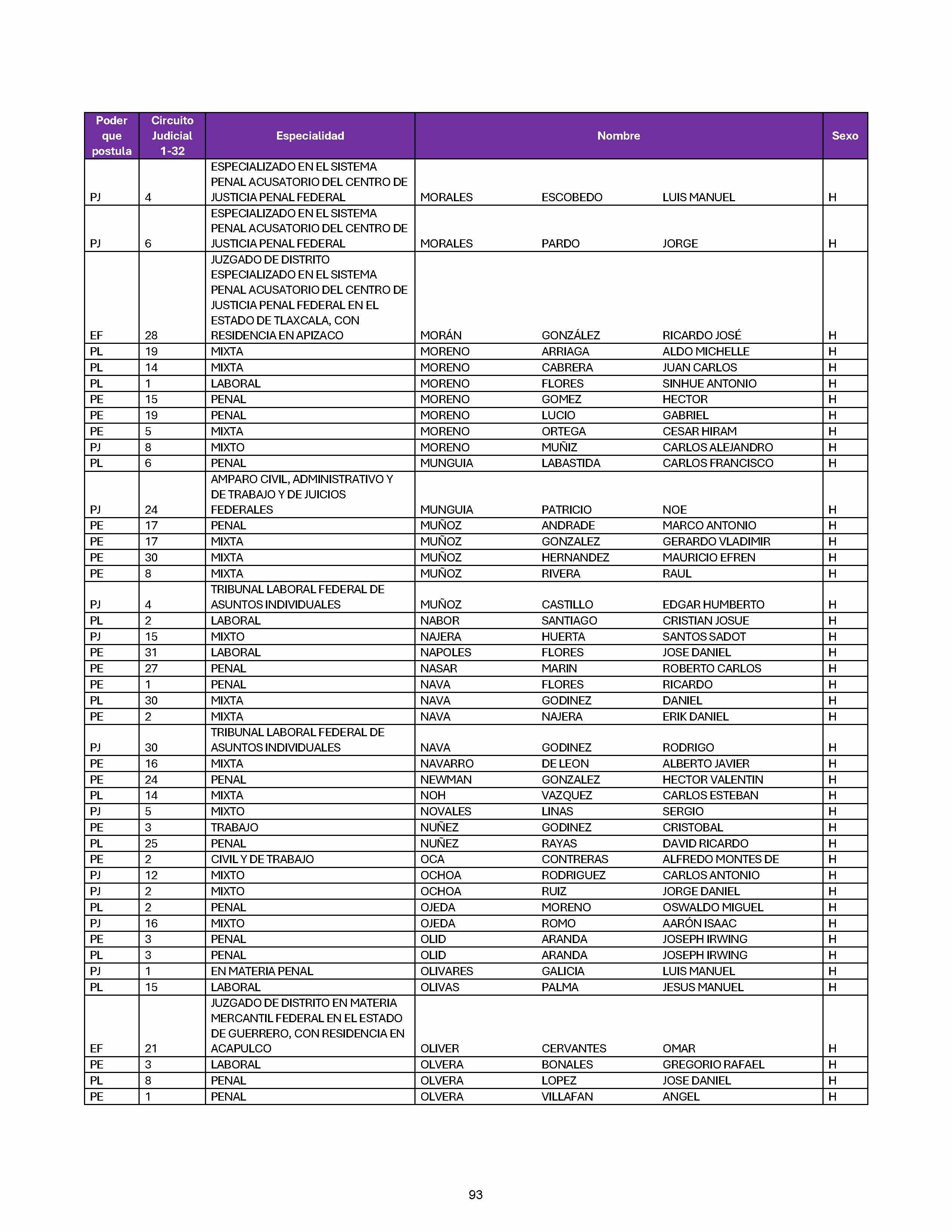 | 137. | GREGORIO RAFAEL OLVERA BONALES | JUZGADOS DE DISTRITO | TERCERO | TRIBUNAL LABORAL FEDERAL DE ASUNTOS INDIVIDUALES | Masculino | 99/202 4 |