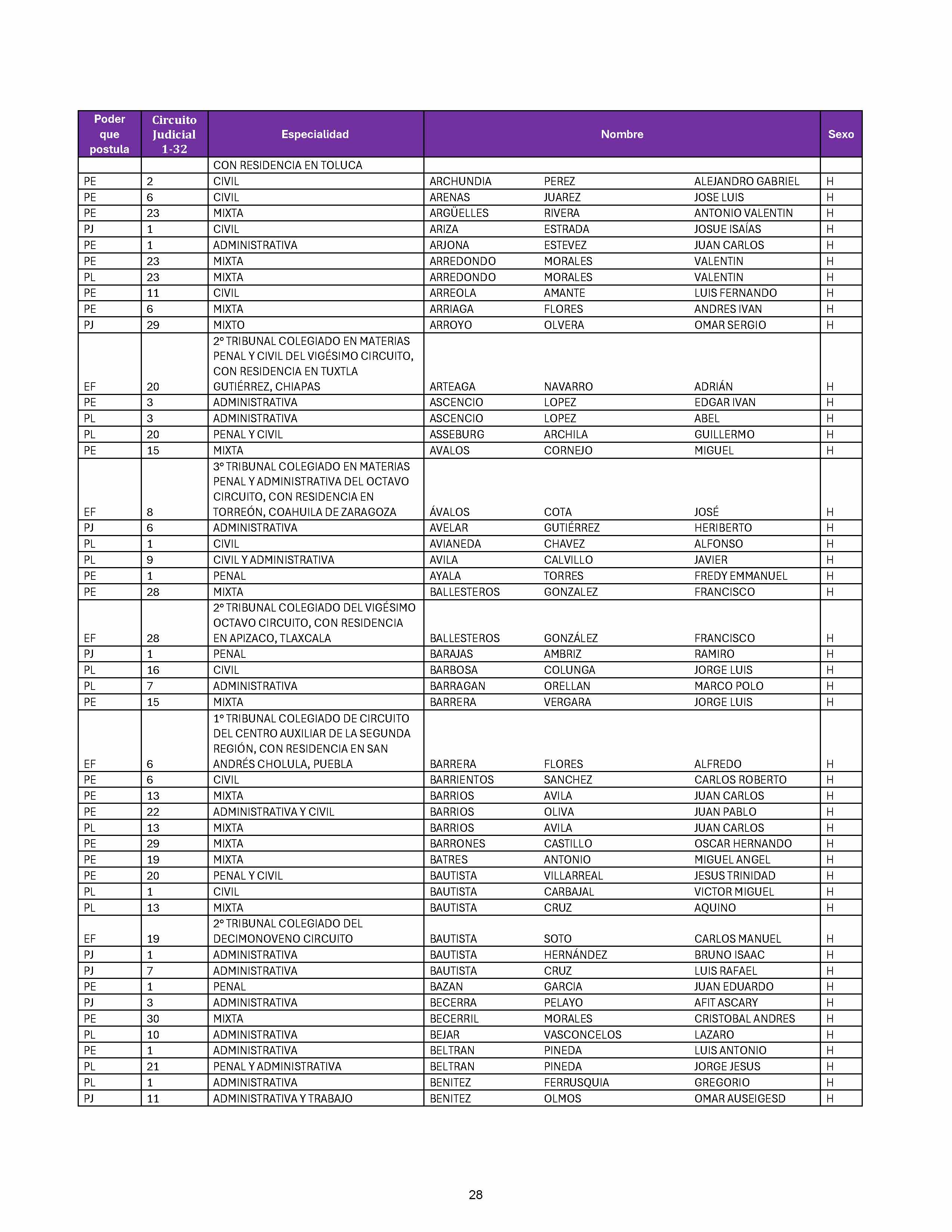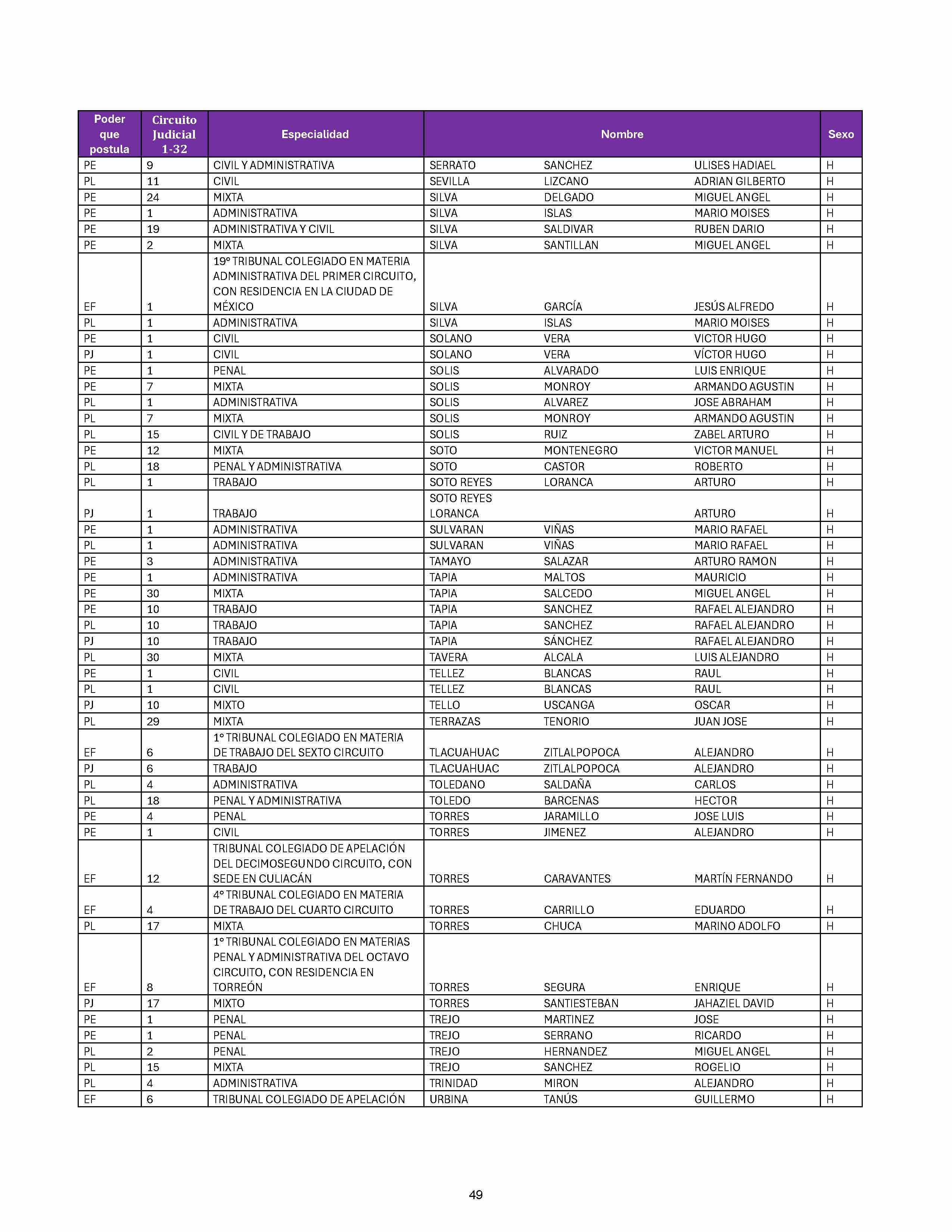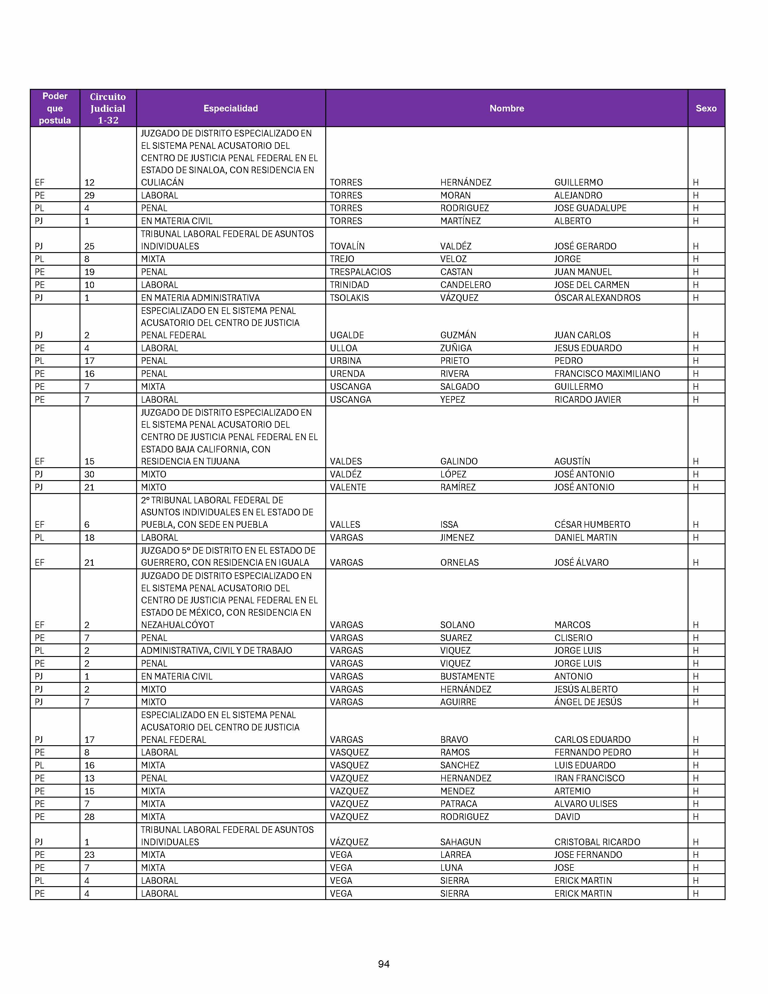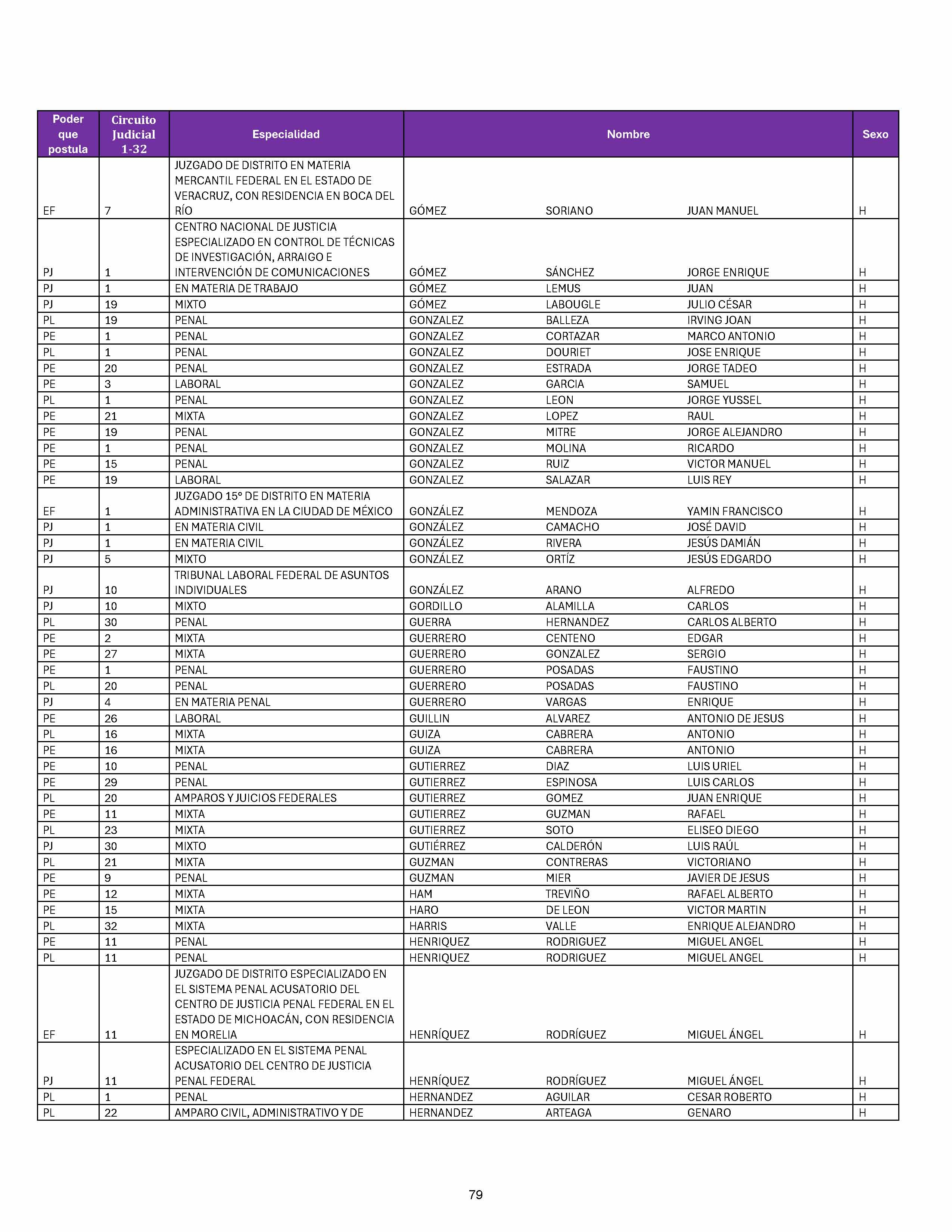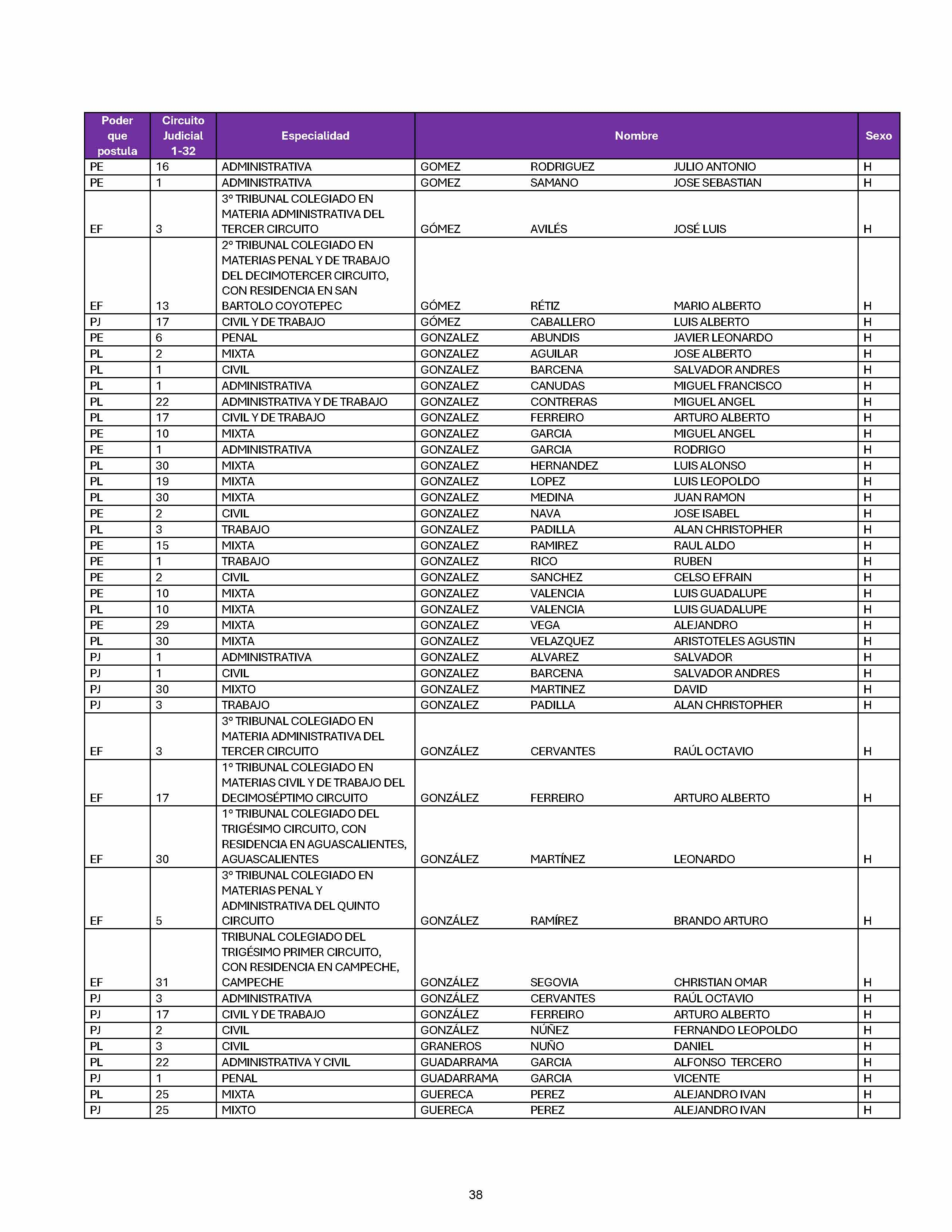 | 137. | GREGORIO RAFAEL OLVERA BONALES | JUZGADOS DE DISTRITO | TERCERO | TRIBUNAL LABORAL FEDERAL DE ASUNTOS INDIVIDUALES | Masculino | 99/202 4 |