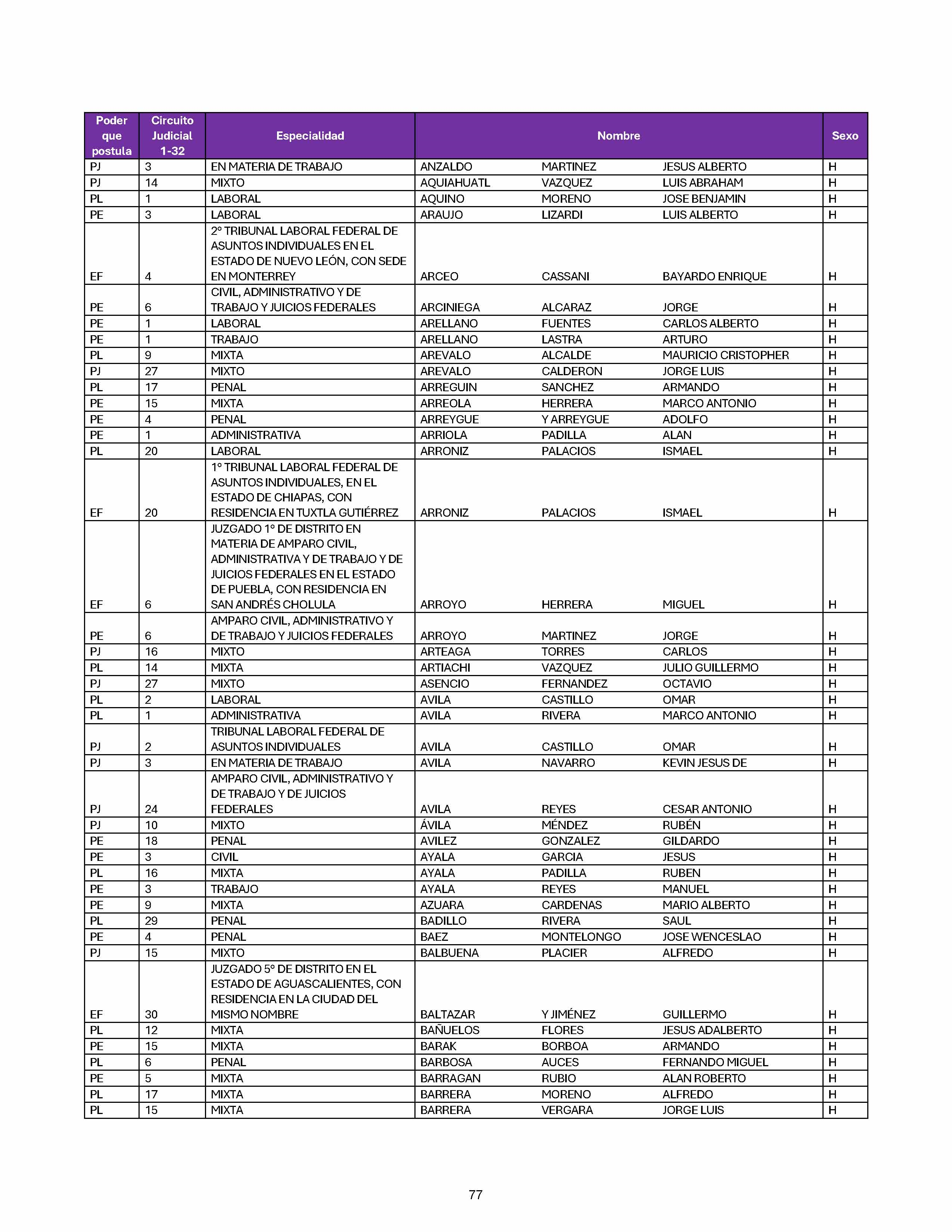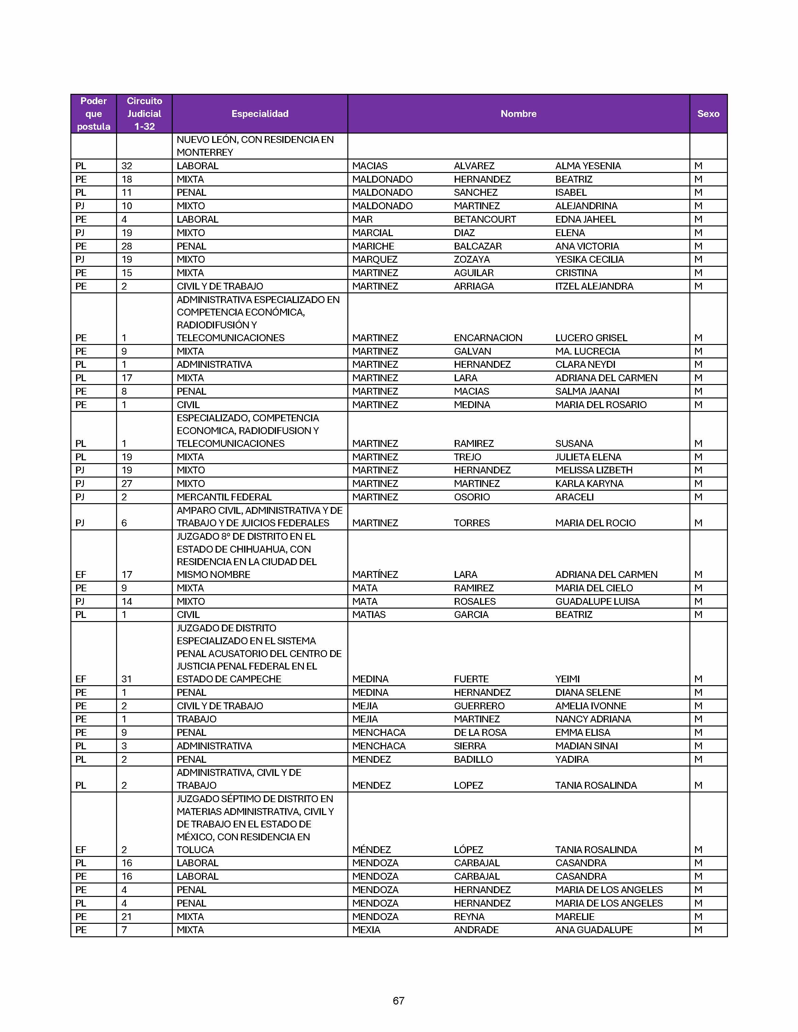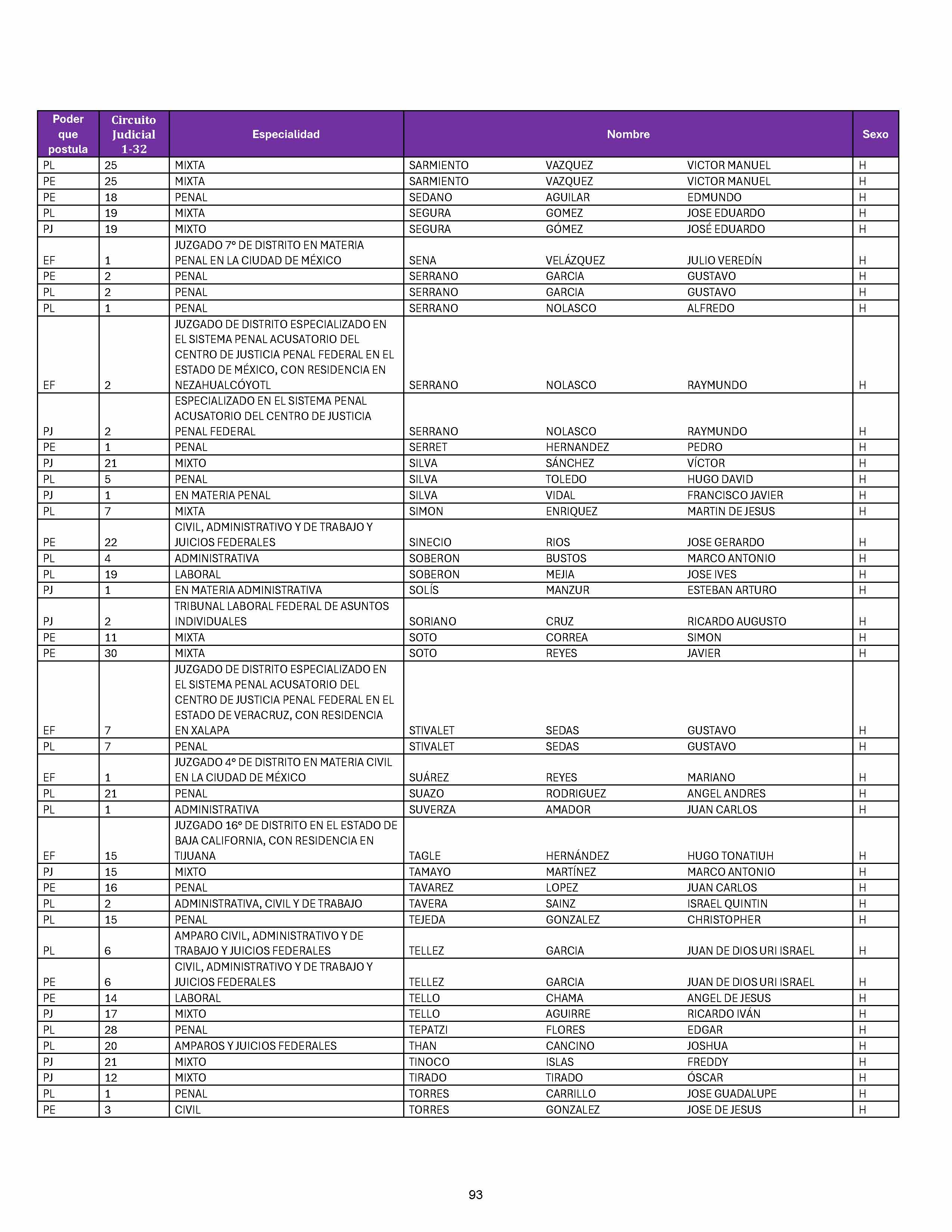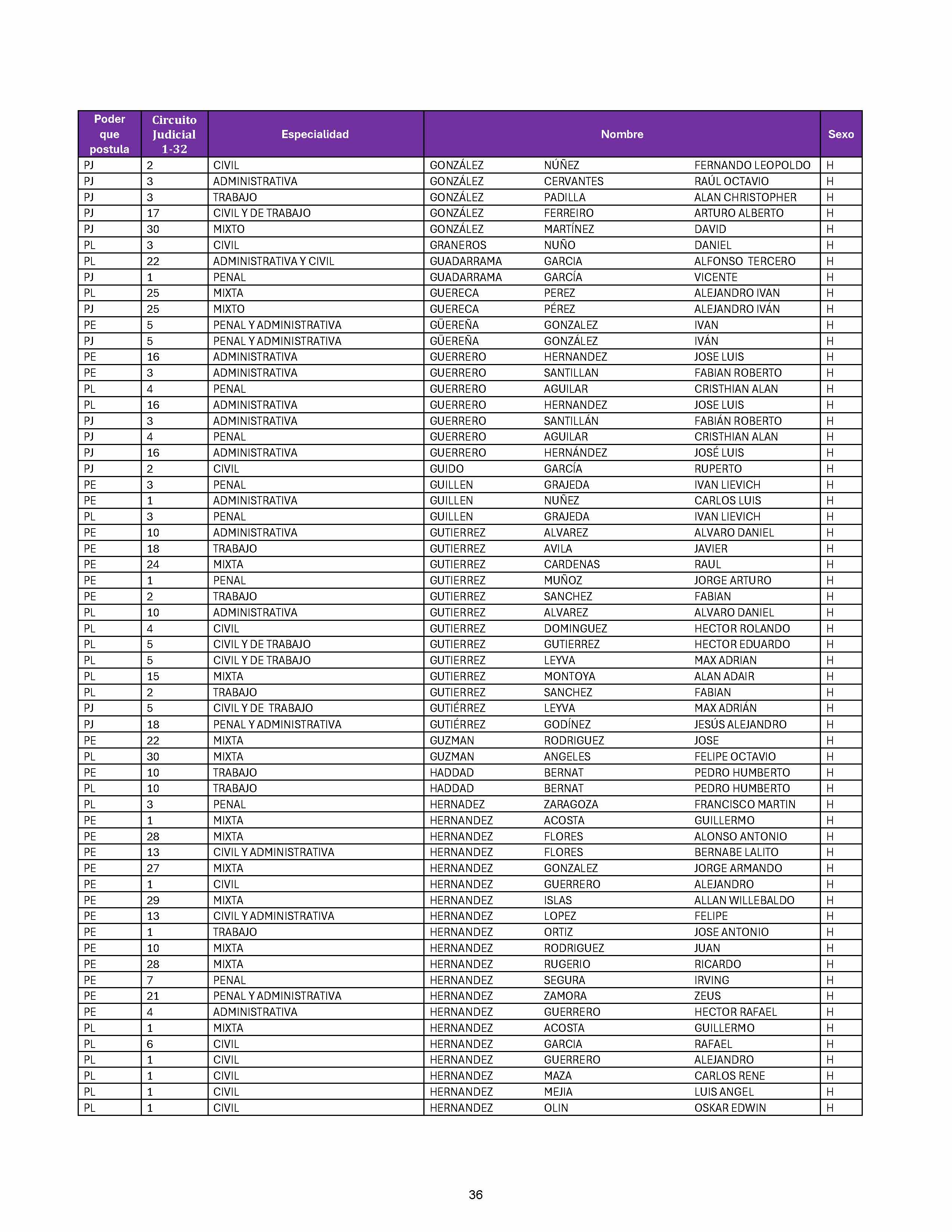 | 137. | GREGORIO RAFAEL OLVERA BONALES | JUZGADOS DE DISTRITO | TERCERO | TRIBUNAL LABORAL FEDERAL DE ASUNTOS INDIVIDUALES | Masculino | 99/202 4 |