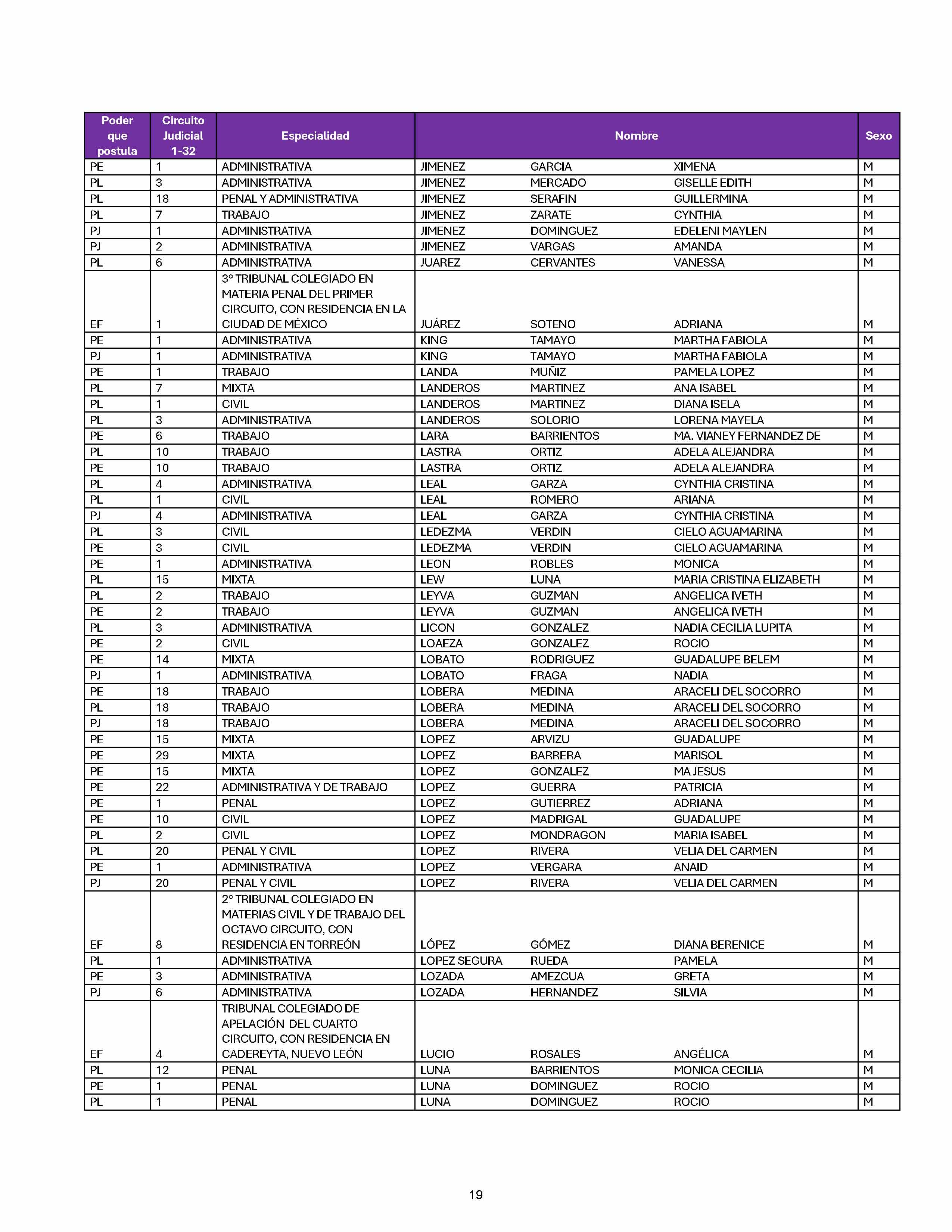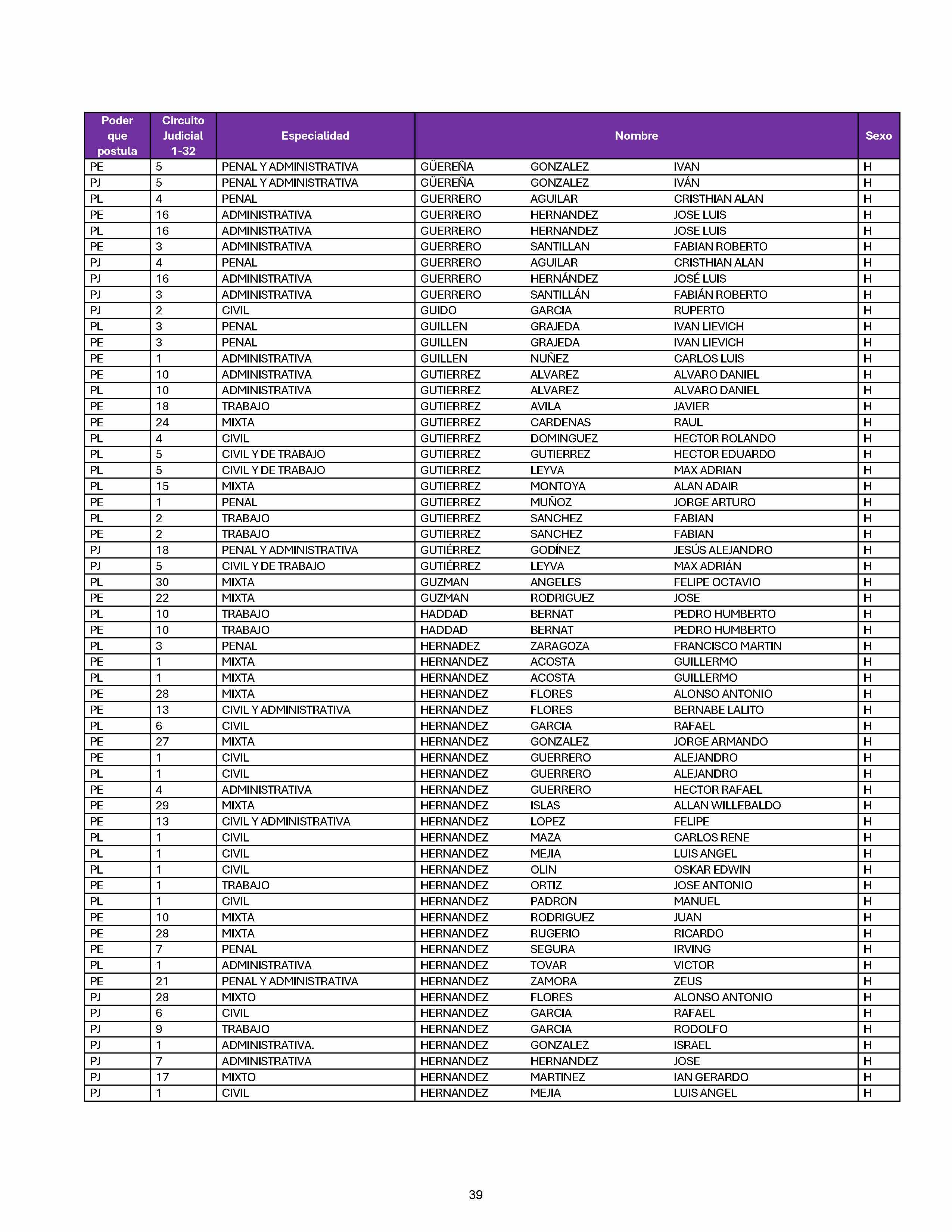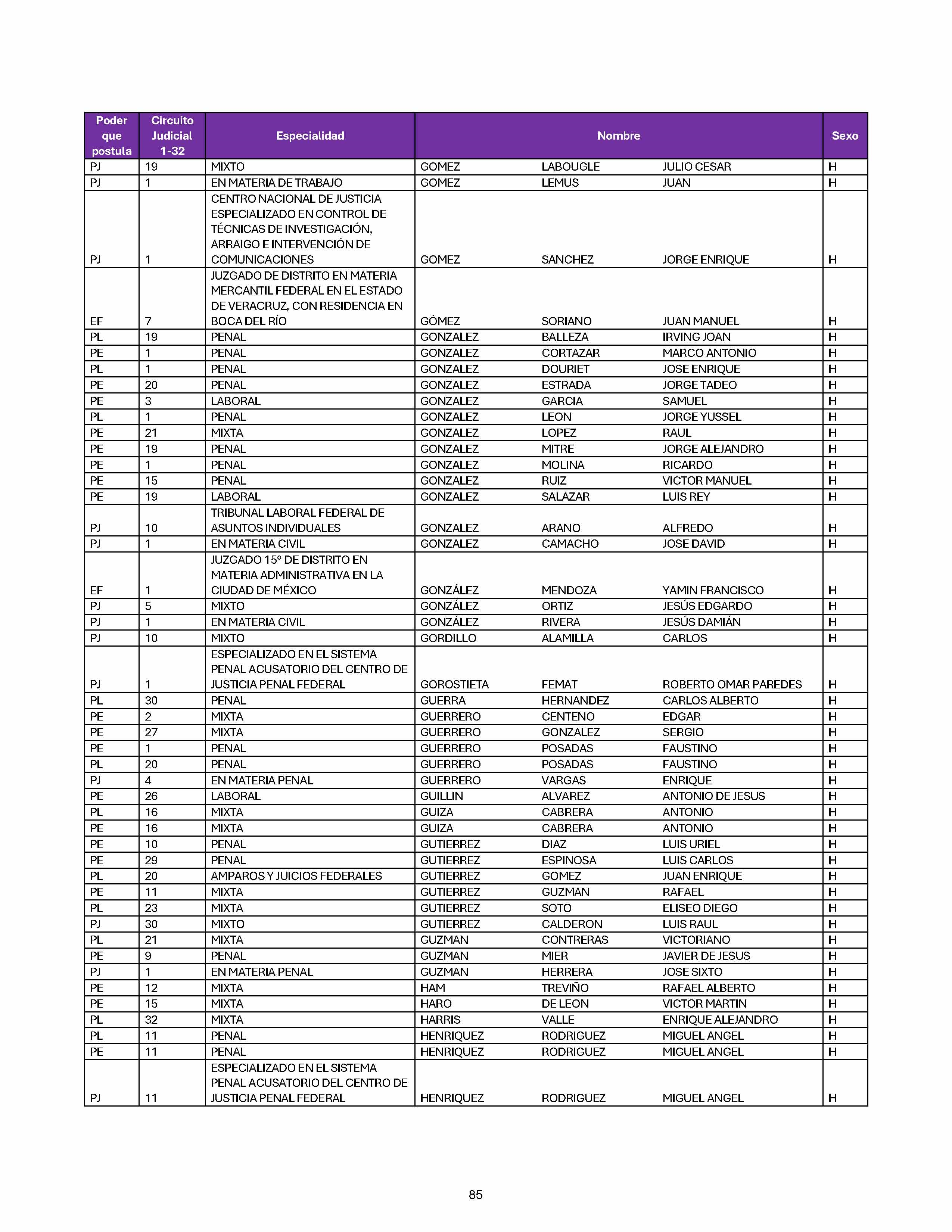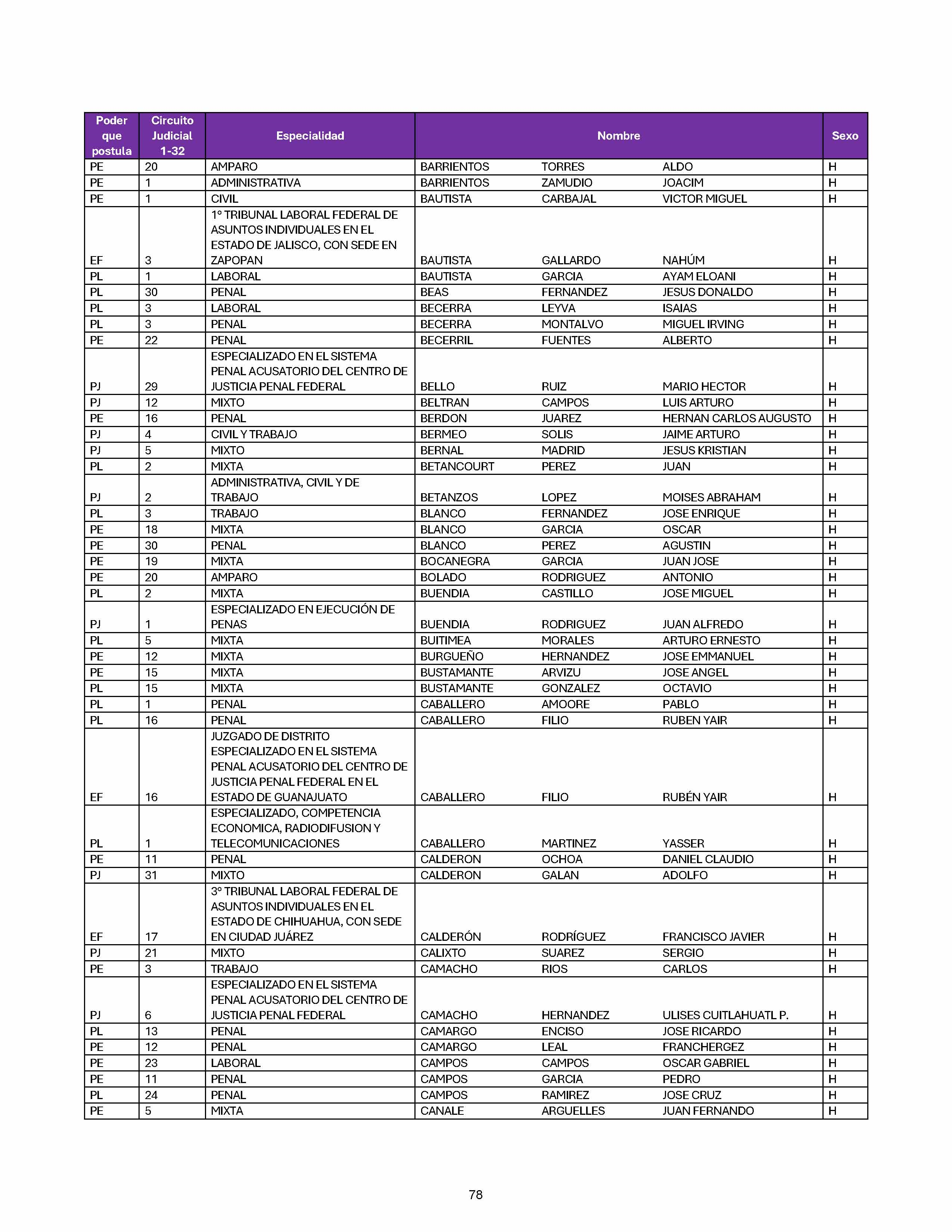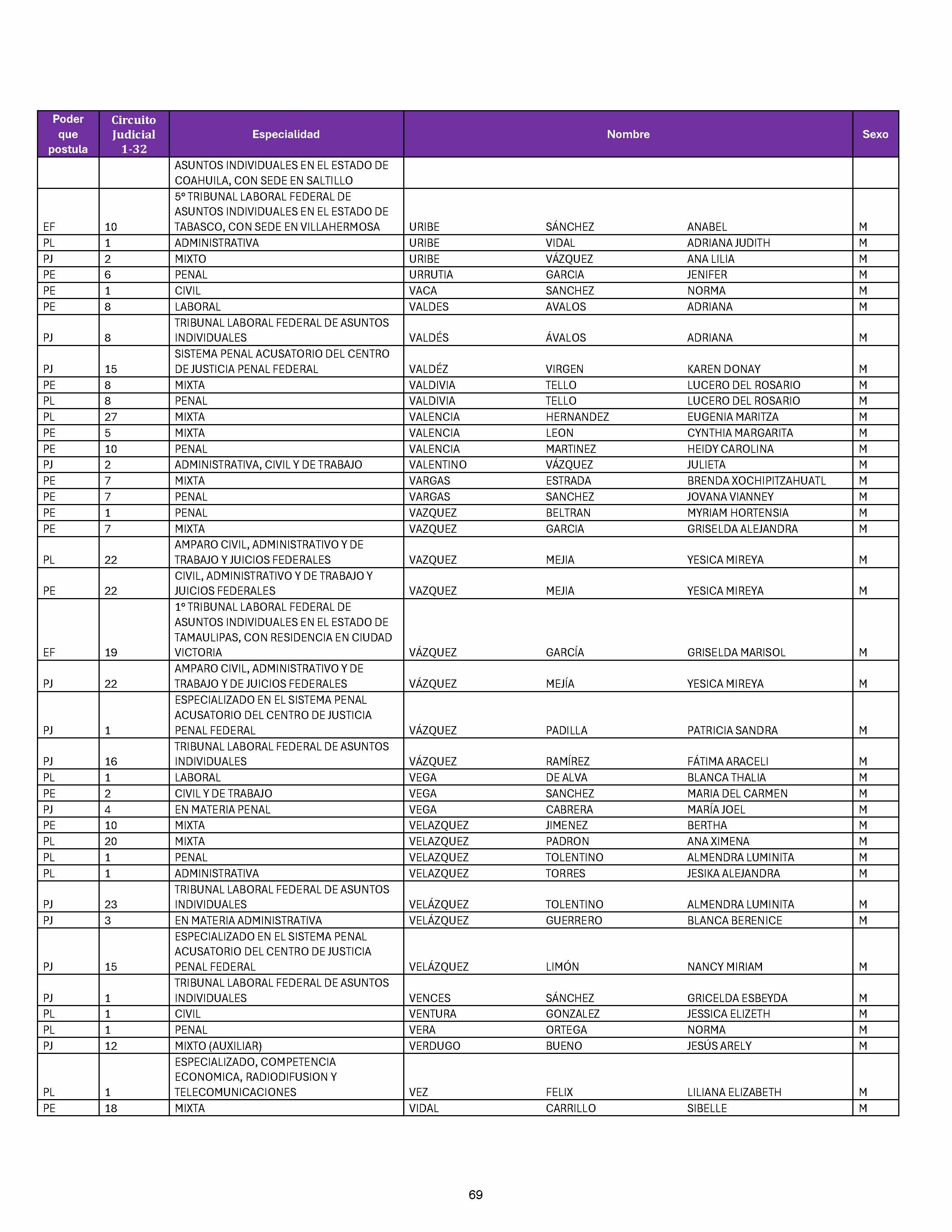 | 137. | GREGORIO RAFAEL OLVERA BONALES | JUZGADOS DE DISTRITO | TERCERO | TRIBUNAL LABORAL FEDERAL DE ASUNTOS INDIVIDUALES | Masculino | 99/202 4 |