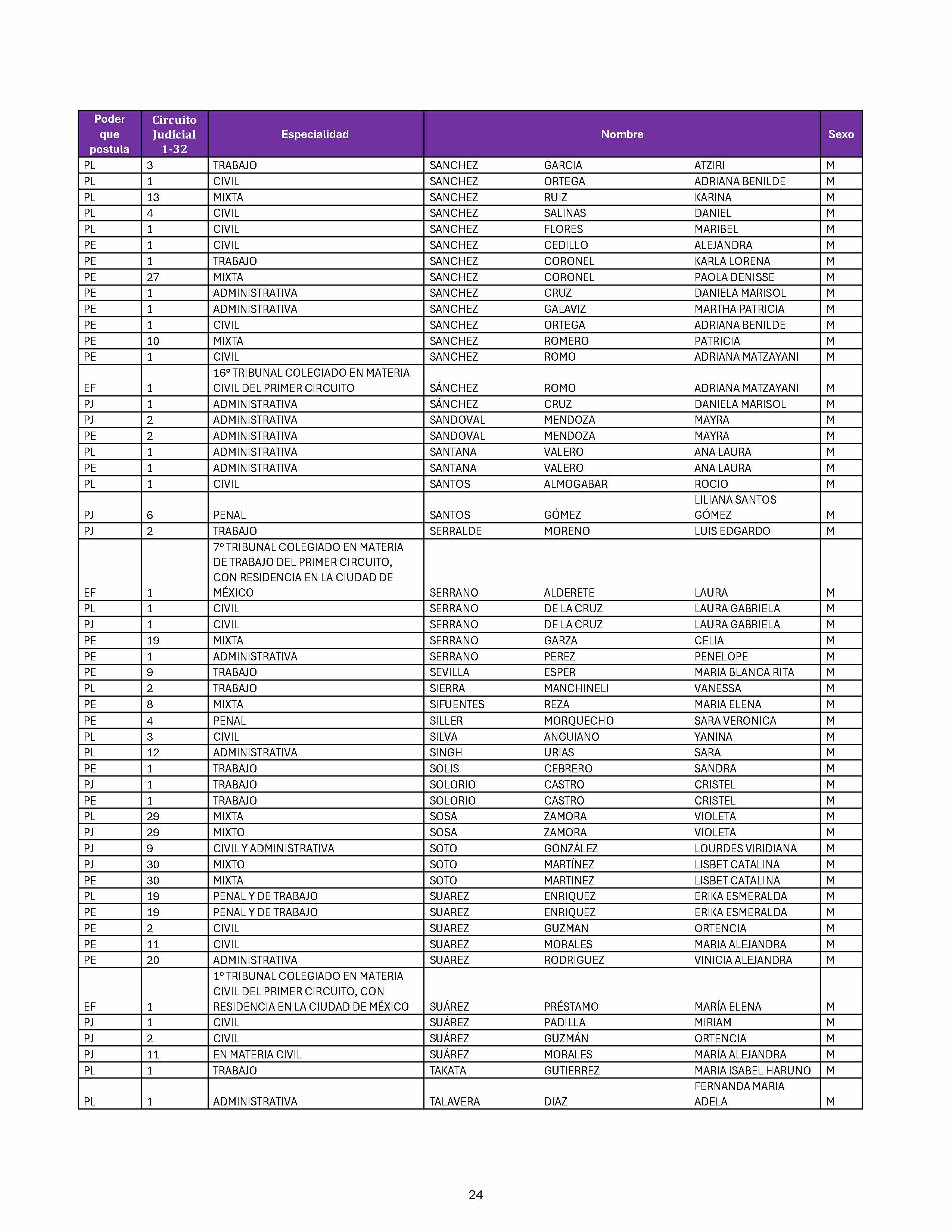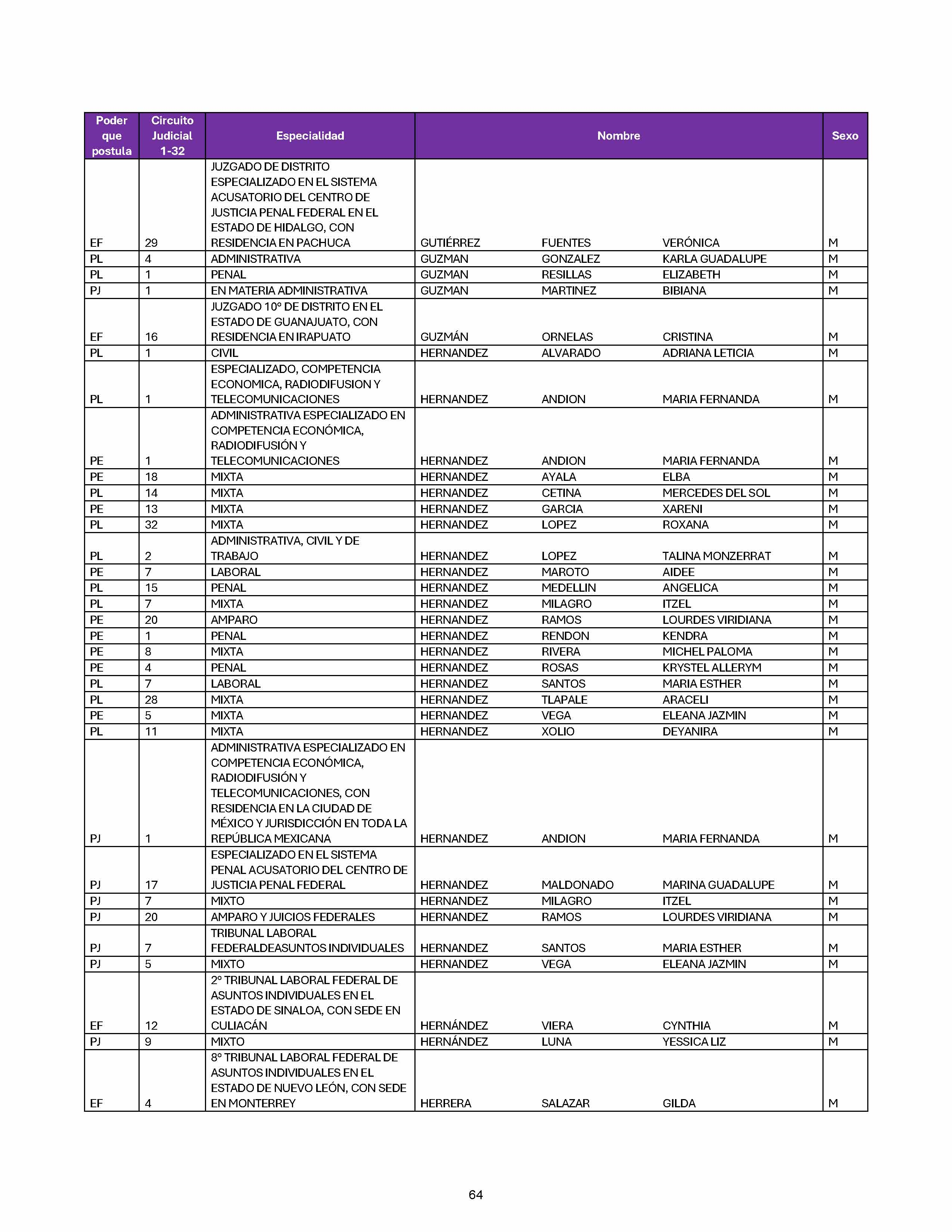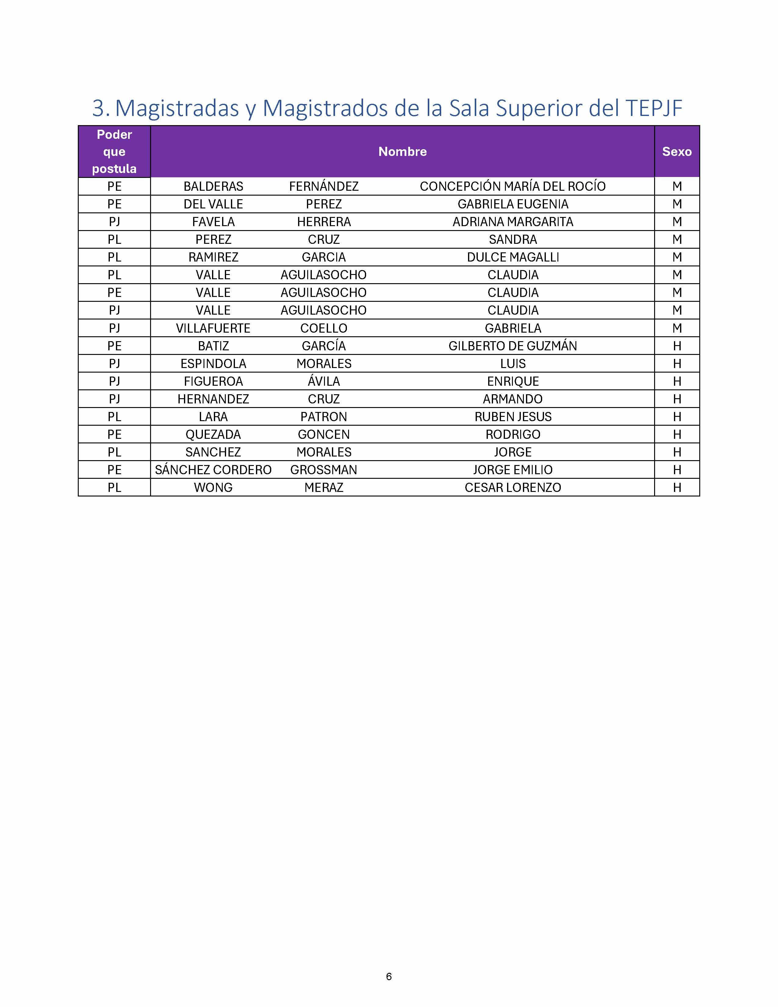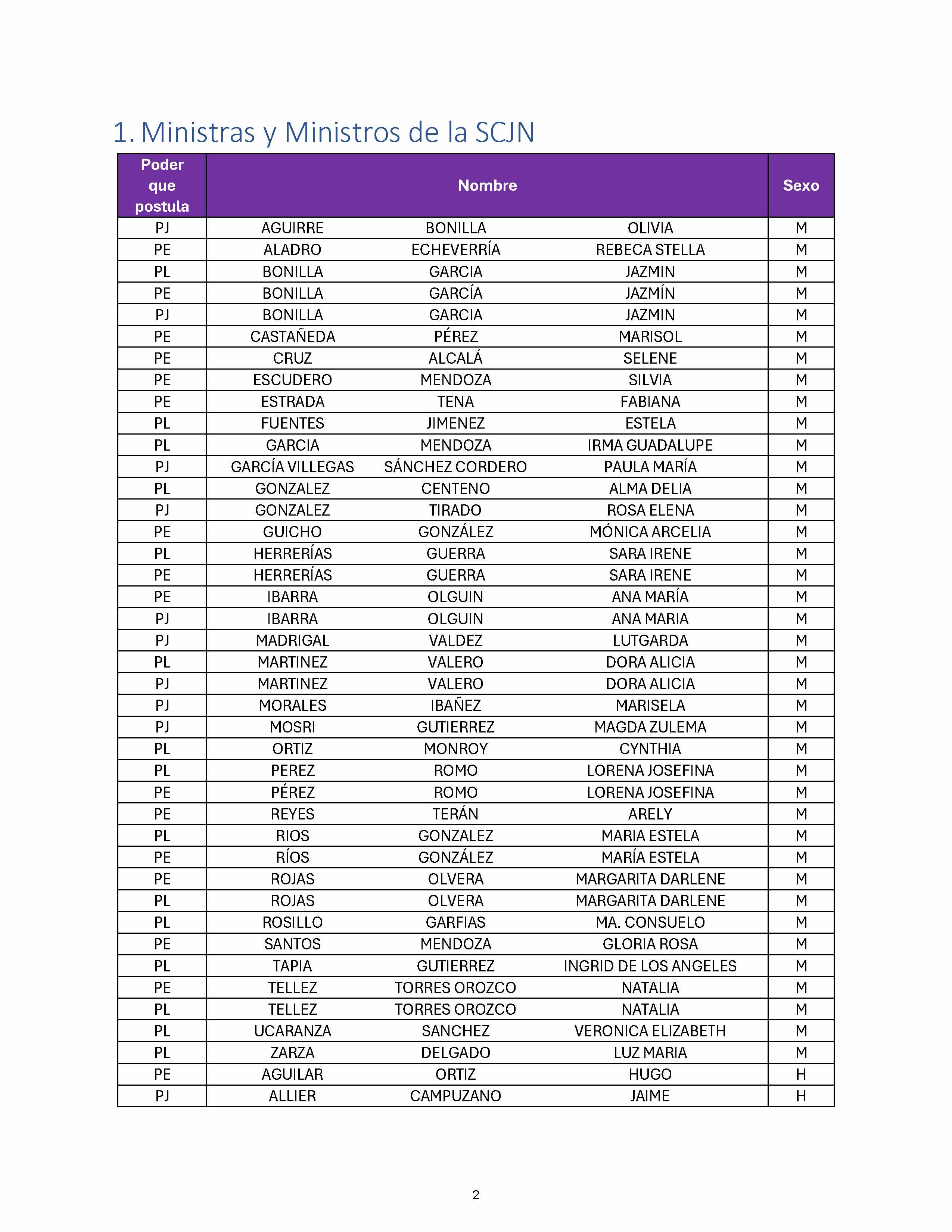 Asimismo, se adjunta al presente el concentrado de solicitudes de personas candidatas relativas al listado enviado por el Senado para los Cargos a elección del Proceso Electoral Extraordinario del Poder Judicial de la Federación 2024-2025, elaborada por la Dirección del Secretariado con corte al 16 de febrero de 2025 (Anexo 7).