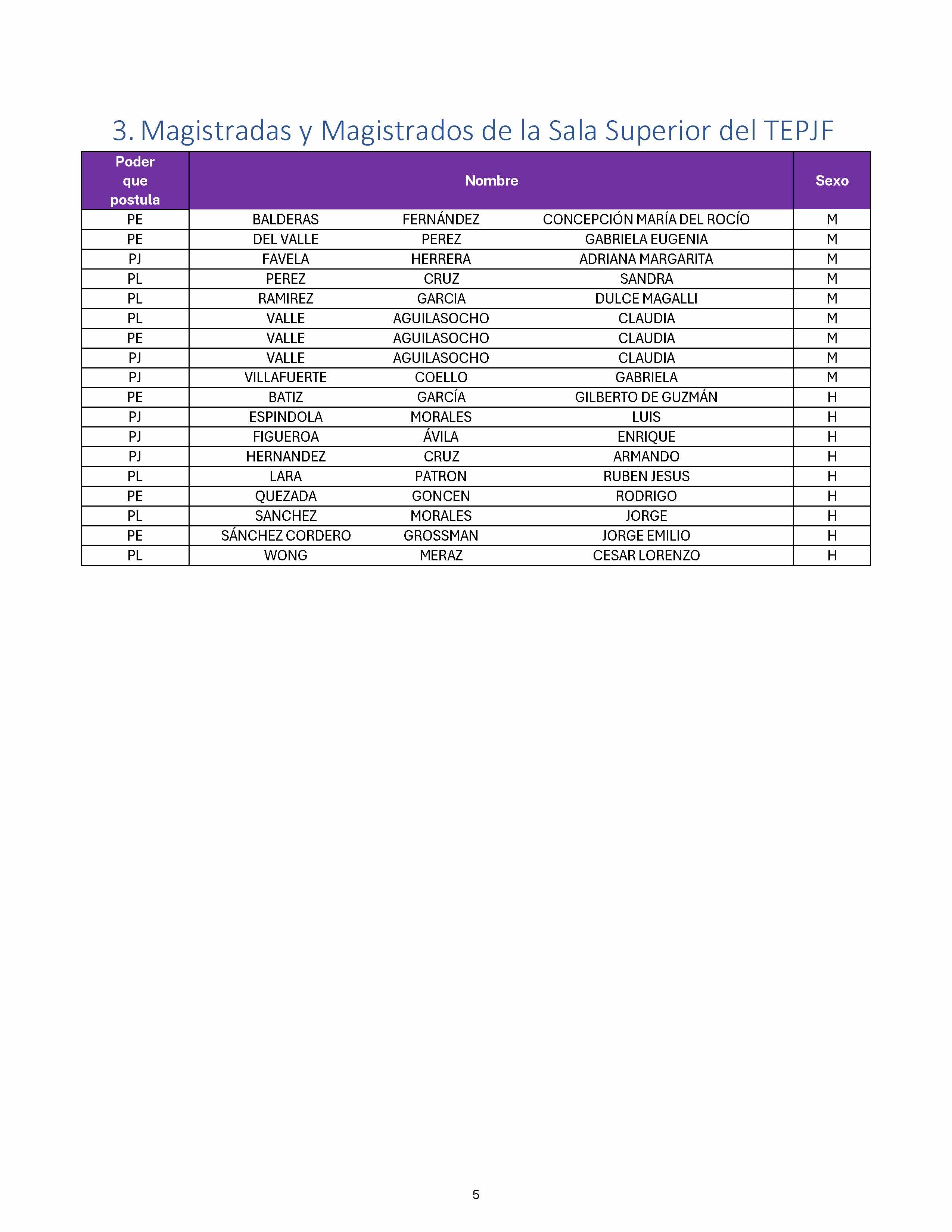 √ En la segunda entrega del Senado se integraron 3 Magistradas.