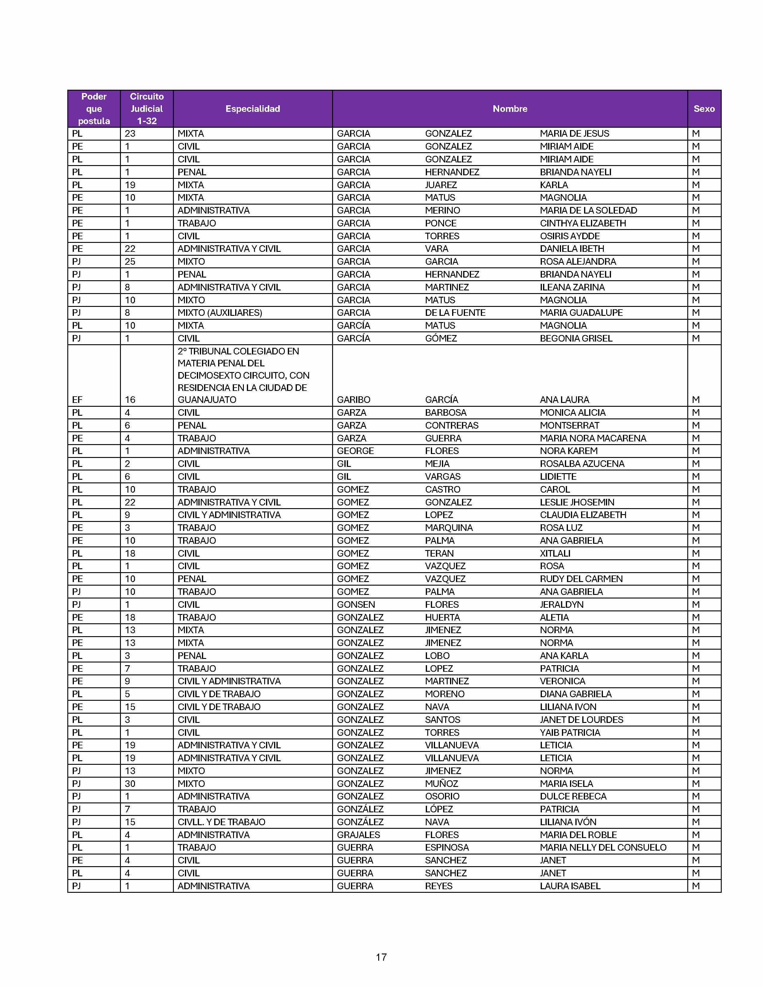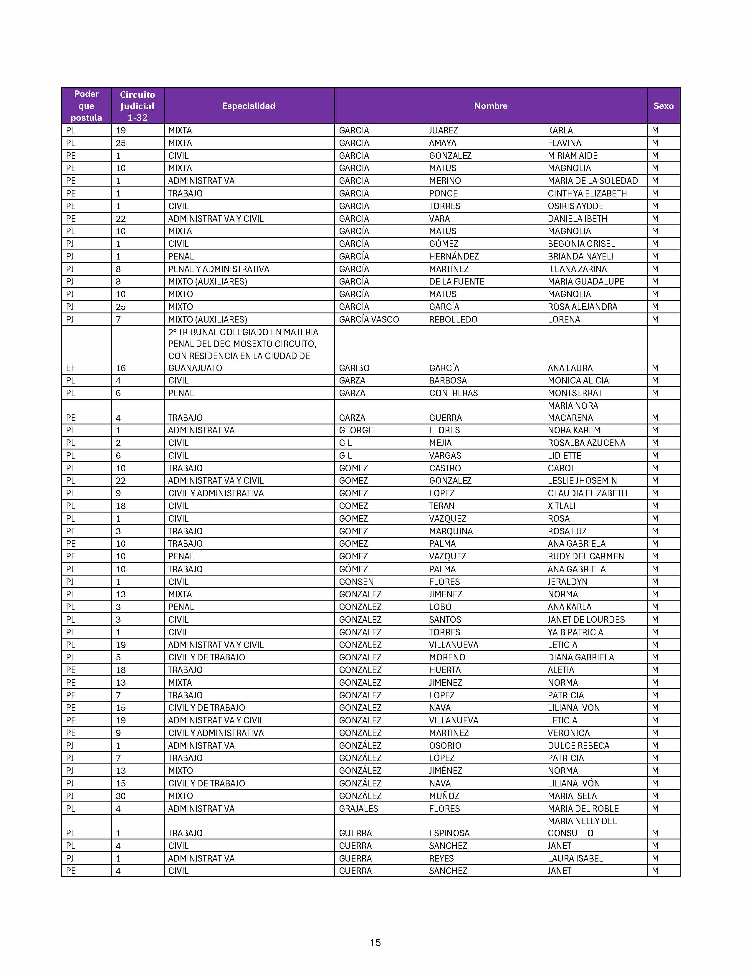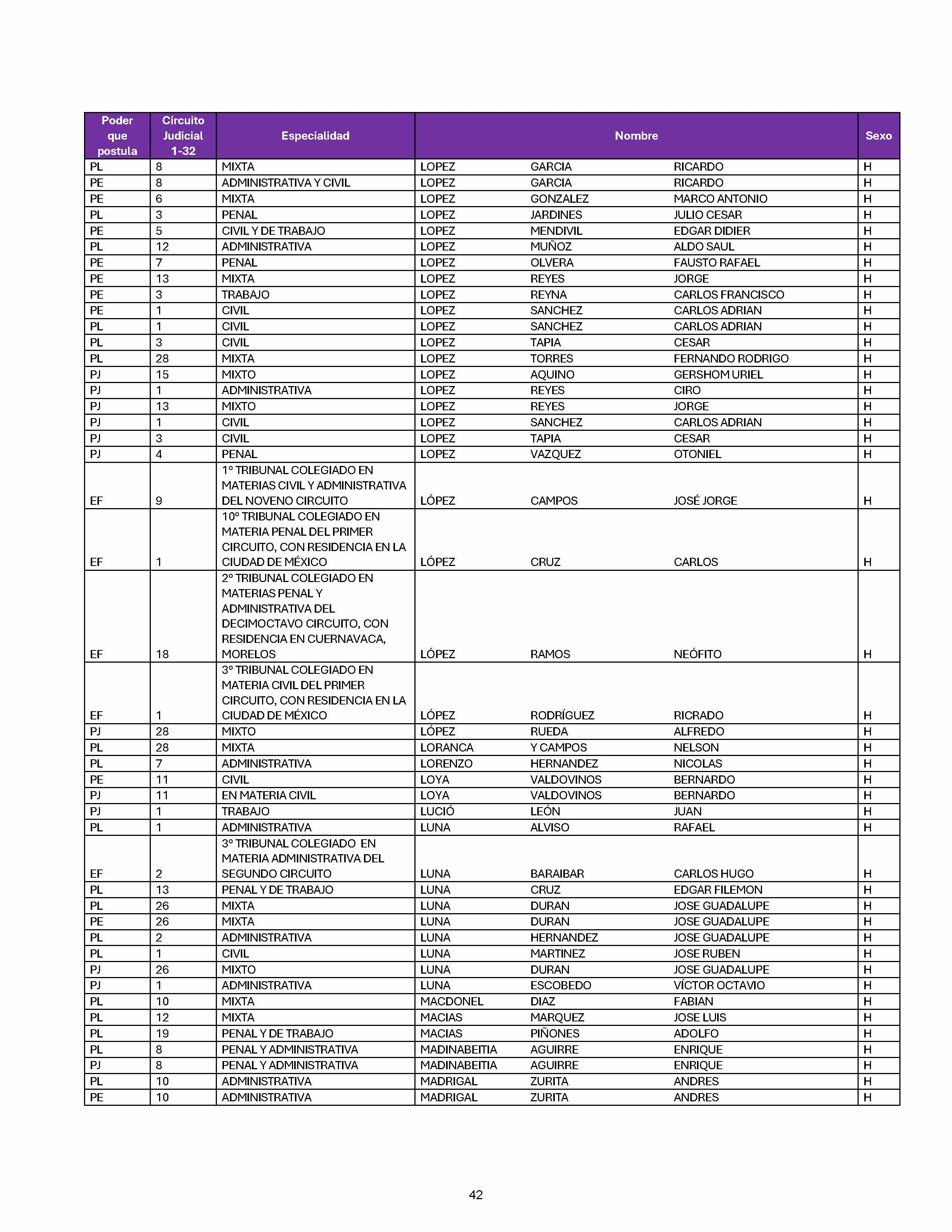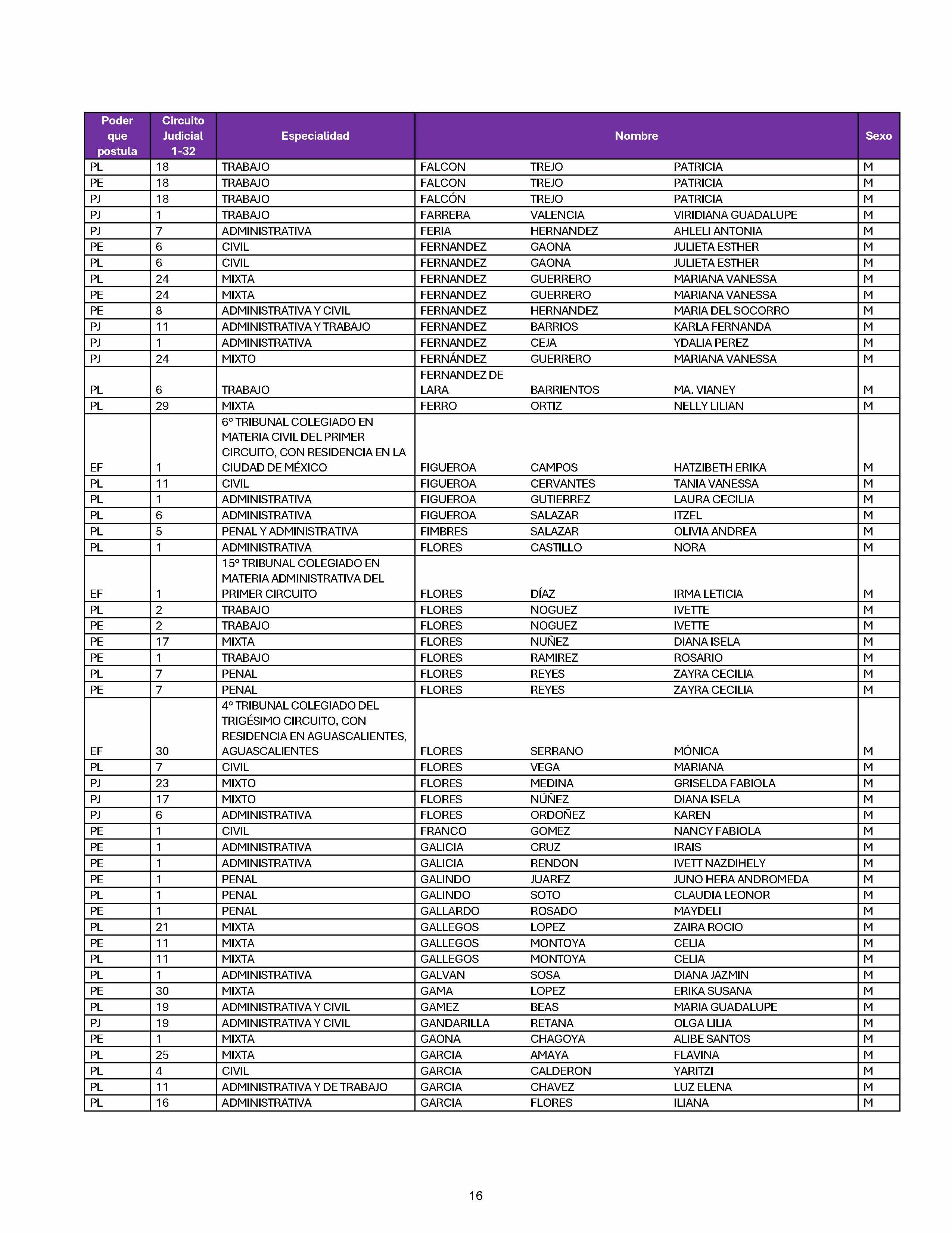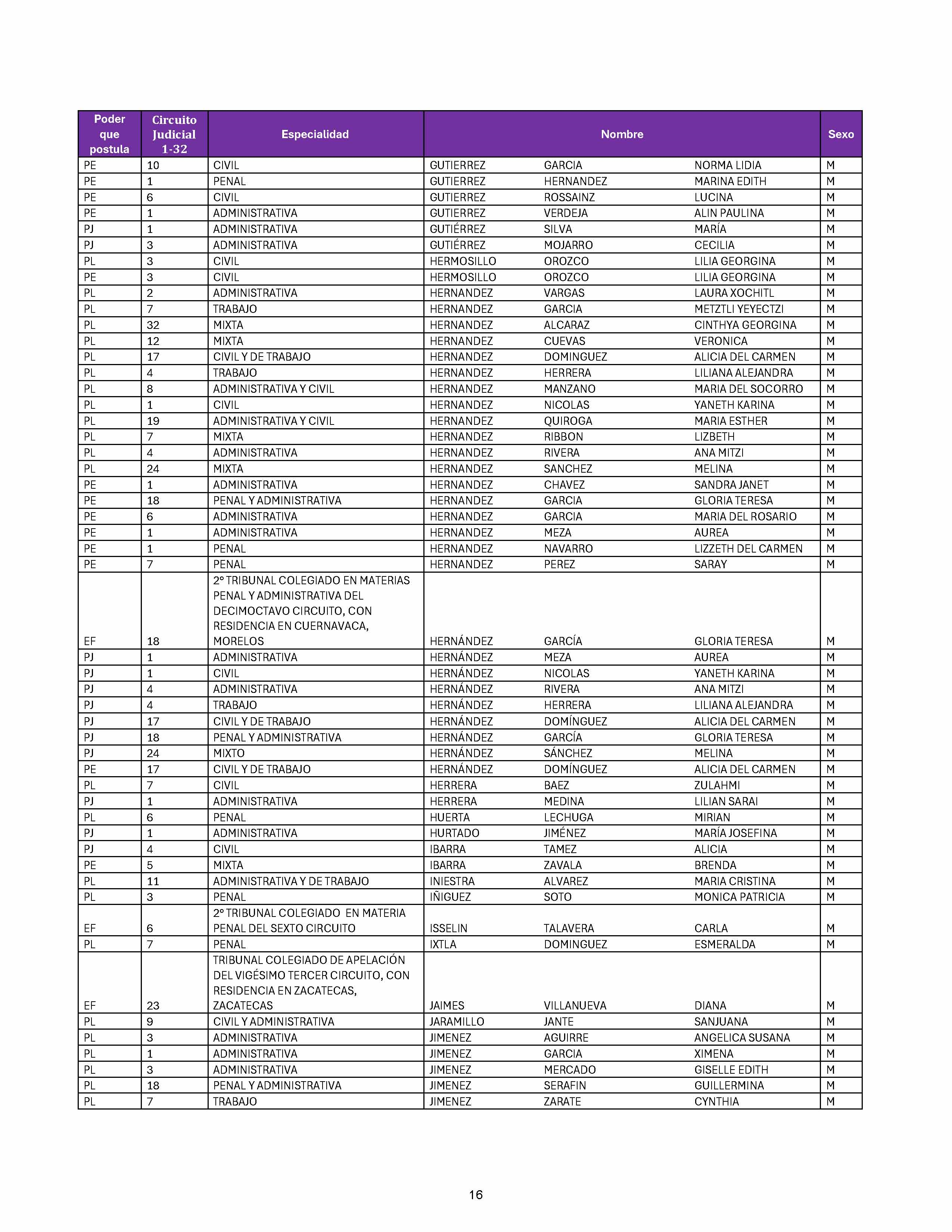 √ Se identificó que, al armar el Word para la publicación del 16 de febrero falto integrar 4 candidatos por omisión. Es importante señalar que el archivo Excel contiene el total de registros.