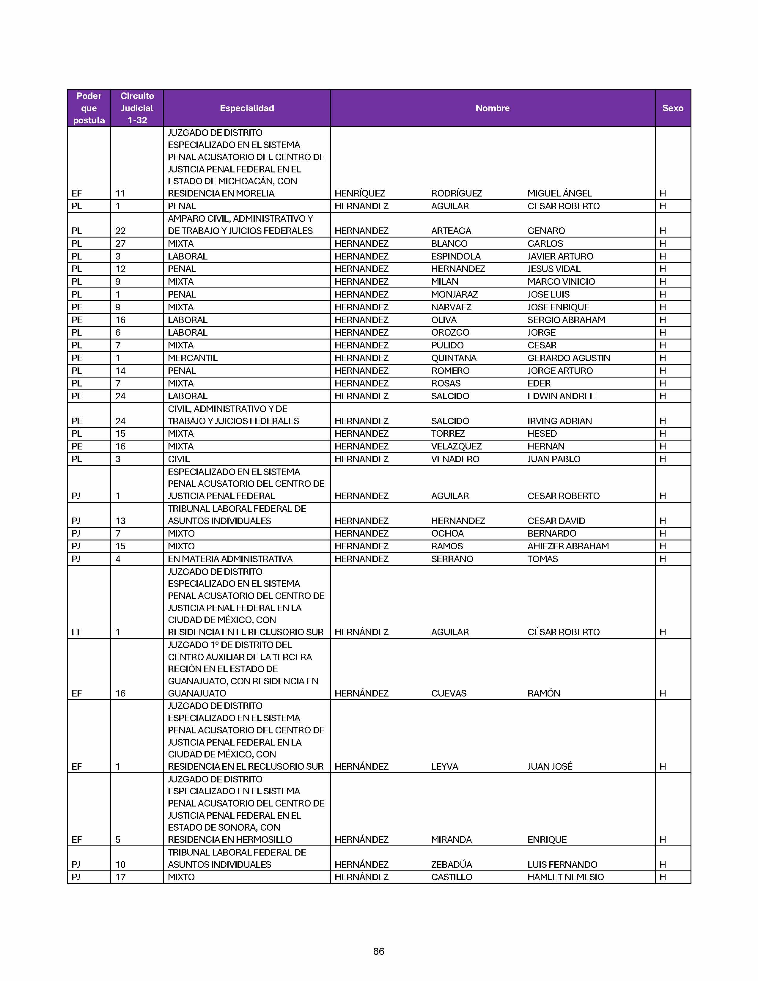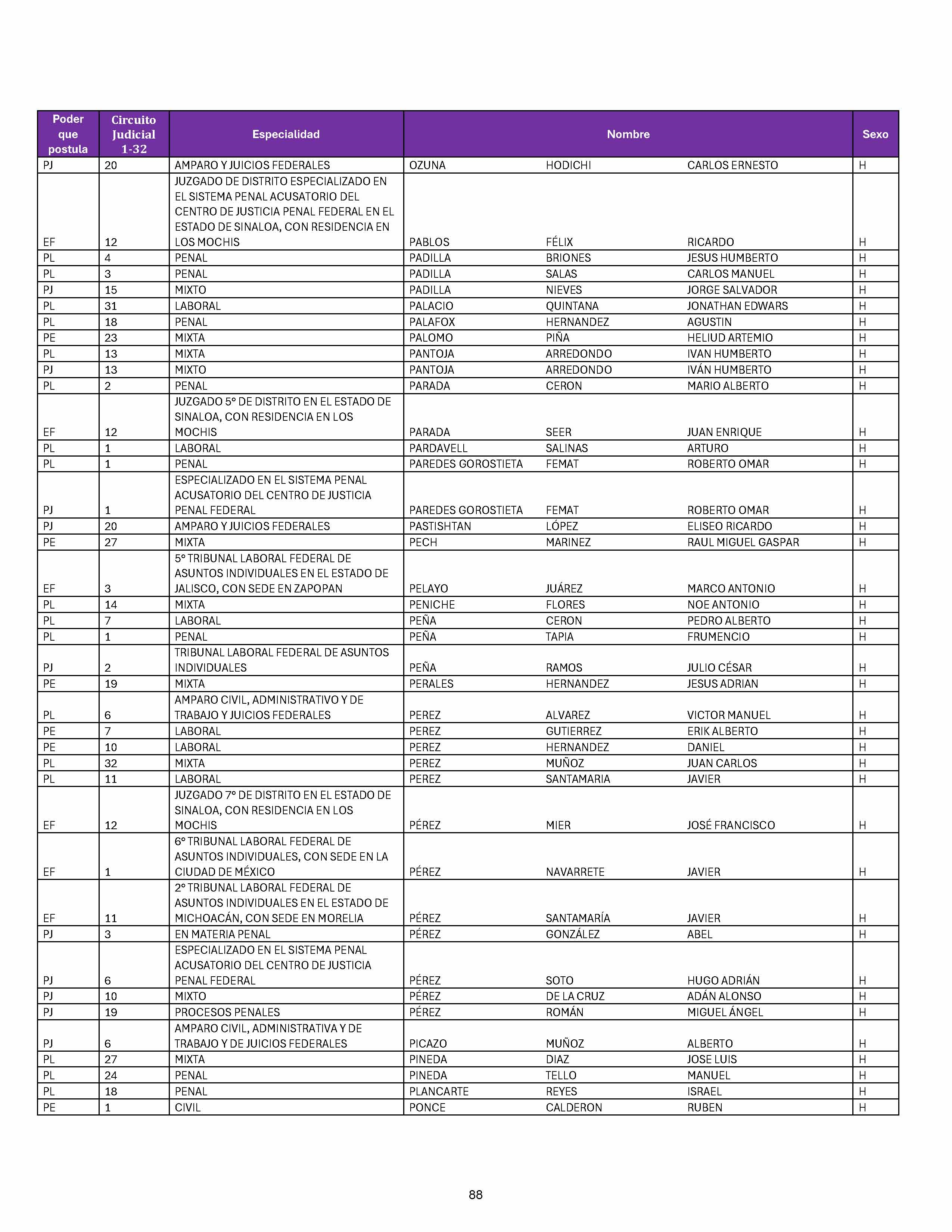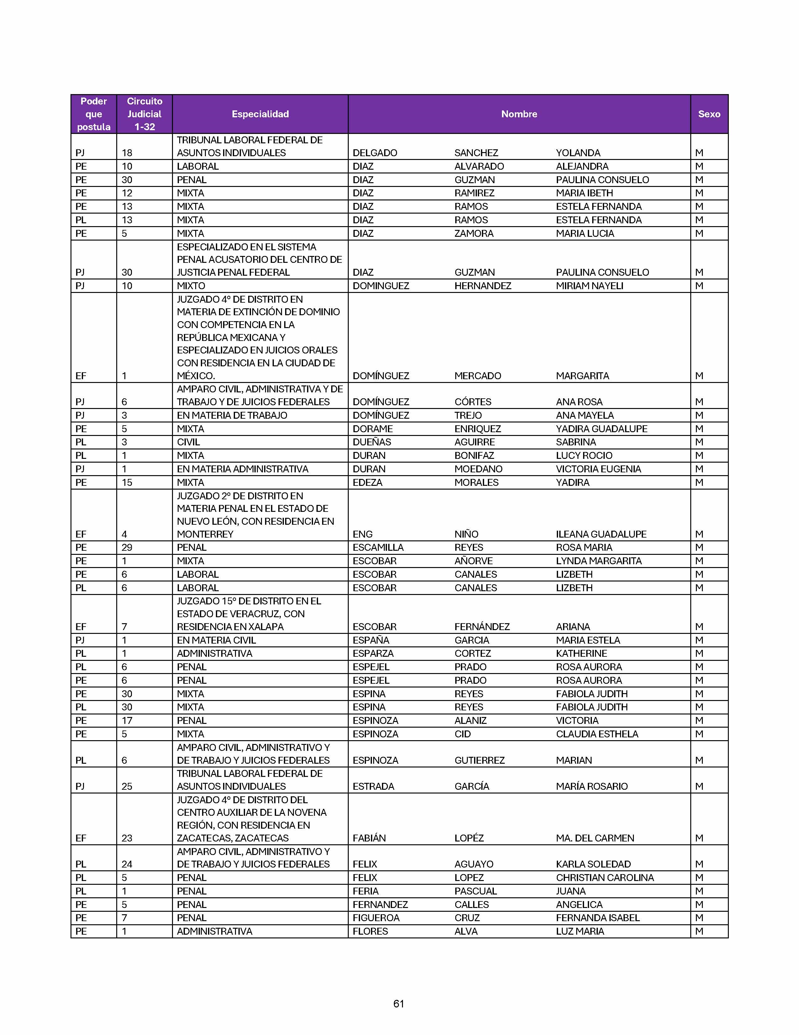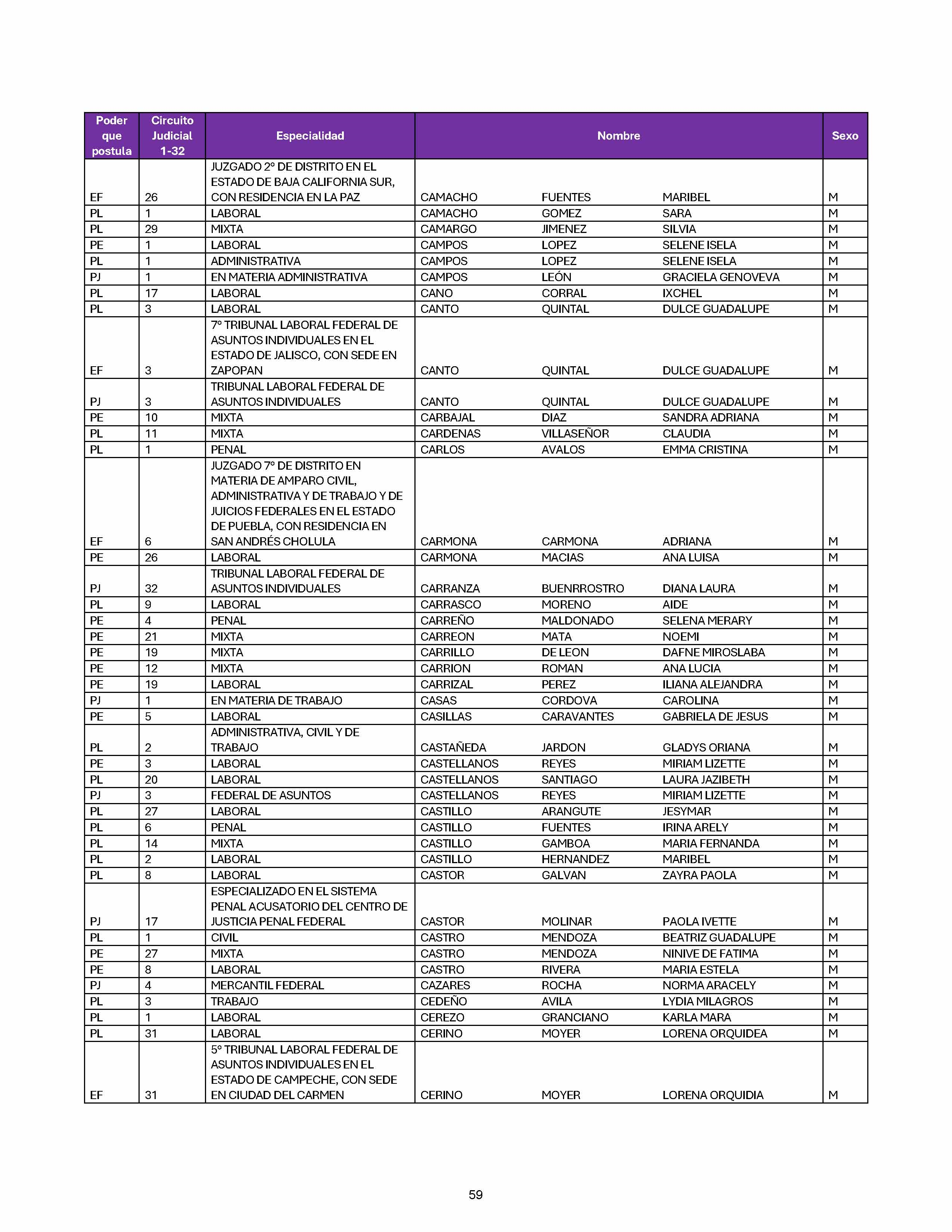 XVIII. Insaculación de la Mesa Directiva del Senado de la República. El 2 de febrero de 2025 se publicó en el DOF la lista que contiene la relación de los nombres que resultaron insaculados por la Mesa Directiva del Senado, ajustada al número de postulaciones para cada cargo, atendiendo a su especialidad por materia y observando la paridad de género, así como los nombres de las personas de aquellos cargos en los que no existió el número de aspirantes necesarios para las ternas o duplas correspondientes y que no se sometieron al procedimiento de insaculación pública, para determinar las candidaturas del Poder Judicial de la Federación en relación con el PEEPJF 2024-2025.