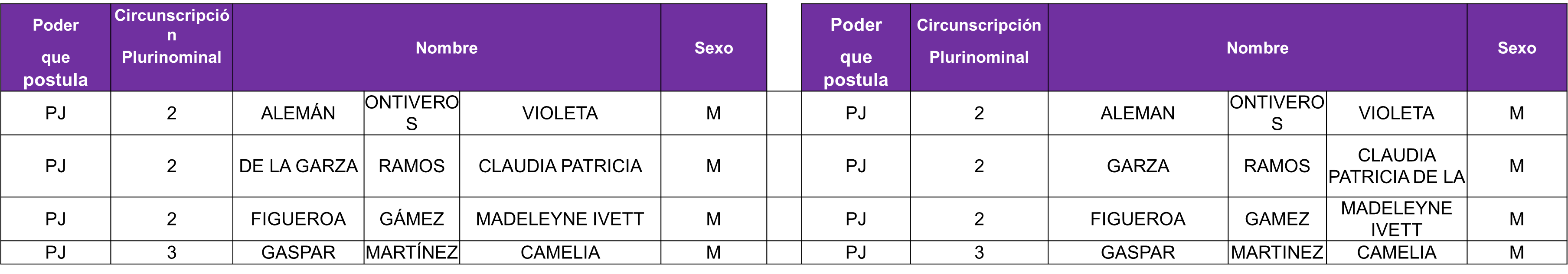√ Se identificaron 63 registros en los que se agregaron acentos a los apellidos y nombres de los candidatos o se actualizaron los nombres.