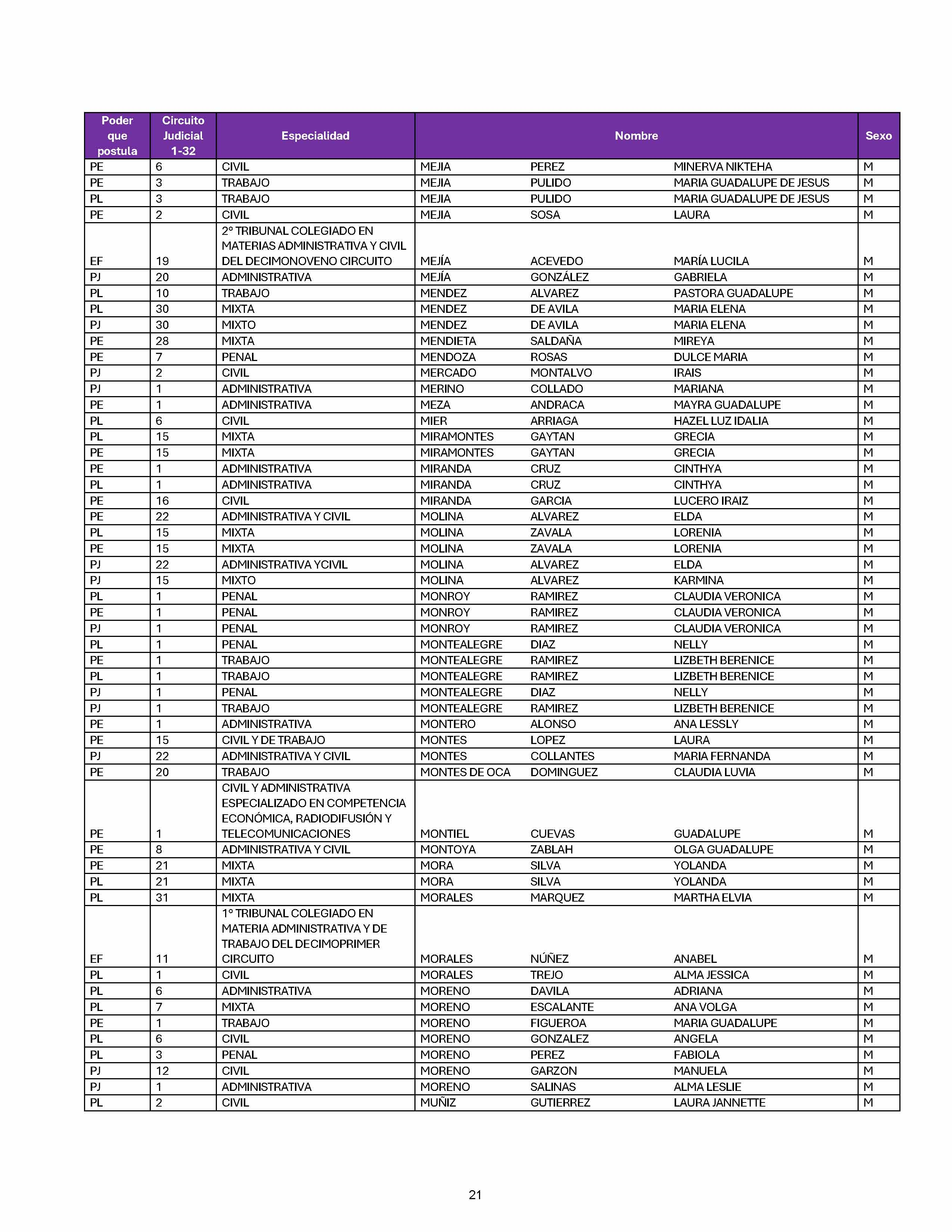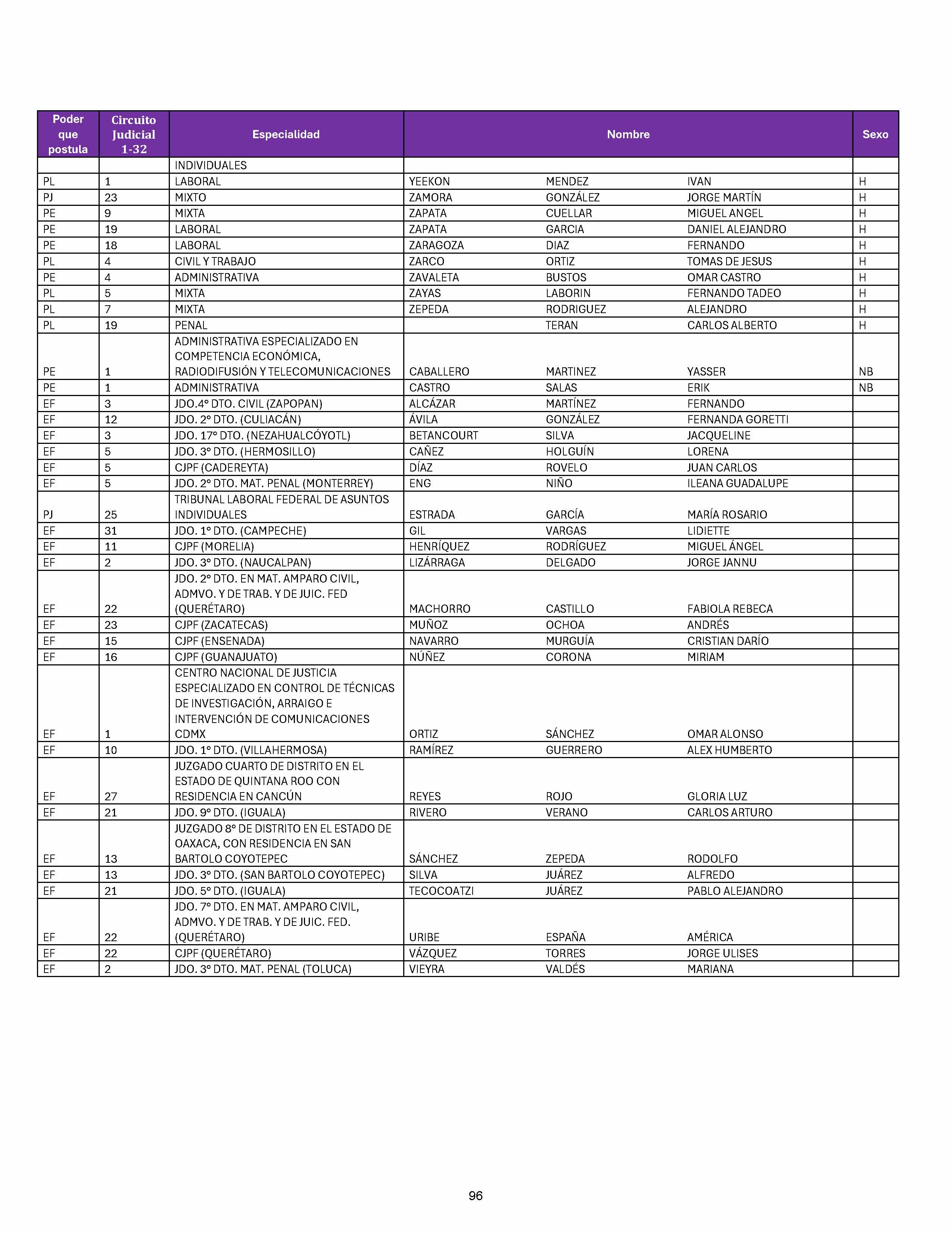 | Personas Juzgadoras | Personas ministras, magistradas y juezas que integran el Poder Judicial de la Federación, electas por mayoría relativa y voto directo de la ciudadanía |