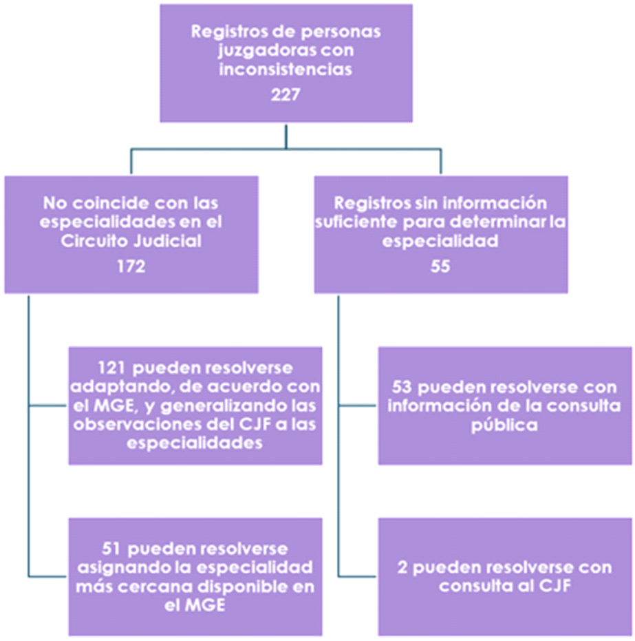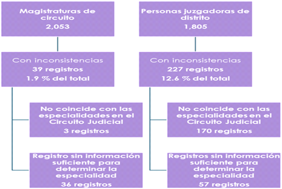 | REGISTROS DE CANDIDATURAS EN FUNCIONES SIN INFORMACIÓN DE LA ESPECIALIDAD. | CONSULTAR DIRECTAMENTE CON EL CJF | LA INFORMACIÓN DEL CAMPO NO ES SUFICIENTE PARA DETERMINAR LA ESPECIALIDAD | SE CONSULTARON TODOS LOS REGISTROS CON ESTA PROBLEMÁTICA EN LA SESIÓN DE LA MESA INTERINSTITUCIONAL DEL 18 DE MARZO, PUDIENDO EL CJF APORTAR INFORMACIÓN DE LA ESPECIALIDAD DE ACUERDO CON LA CANDIDATURA | 2 |