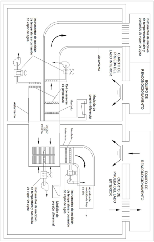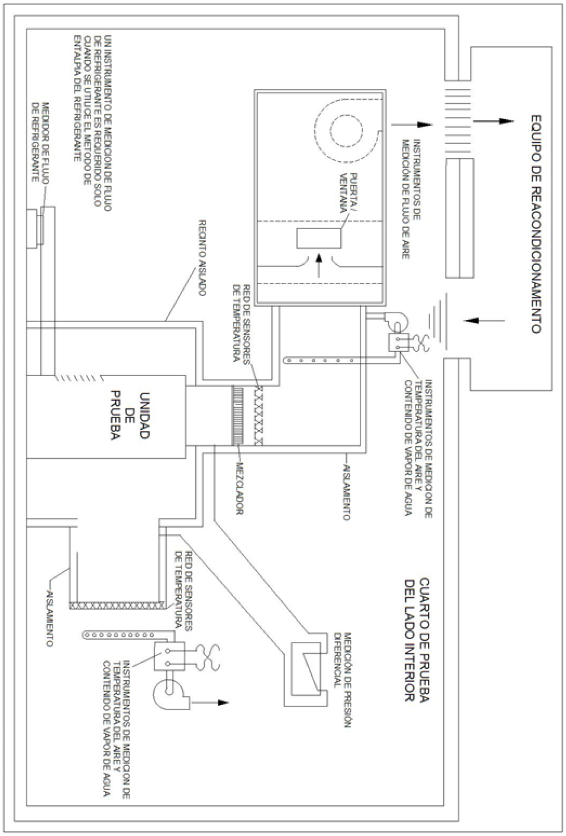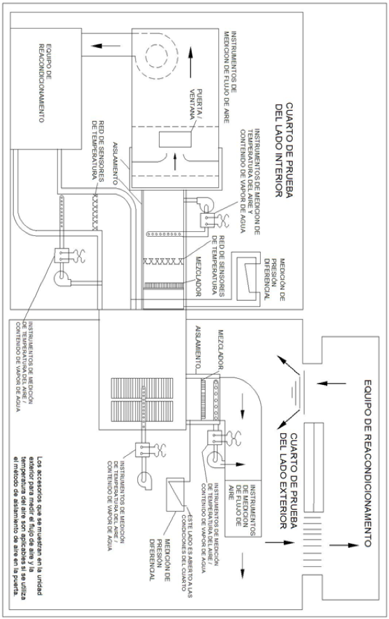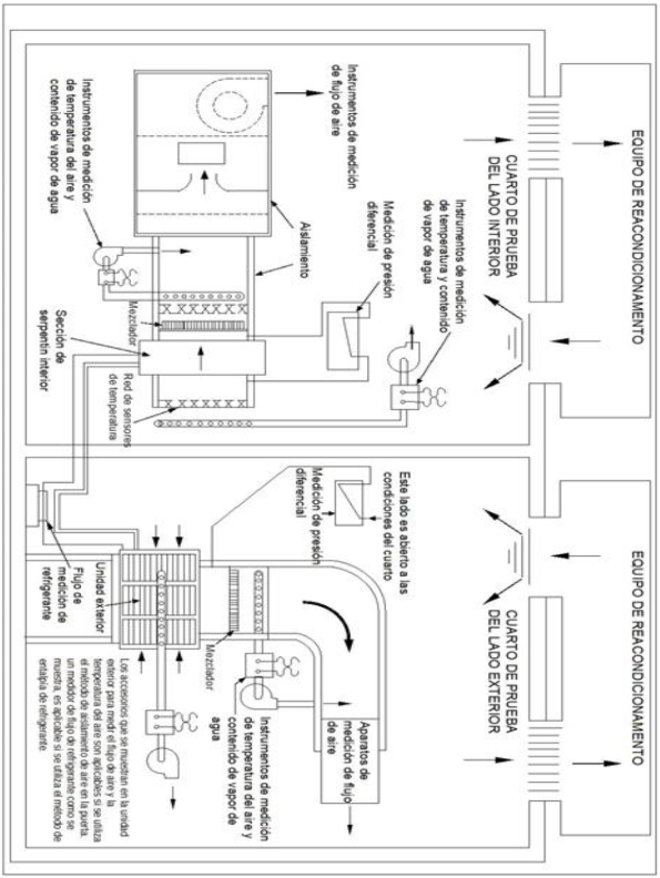 | Arreglo de componentes | Método de enfriamiento del serpentín condensador | Método de aire entalpía del lado interior | Método de aire entalpía del lado exterior | Método de calibración de compresor | Método de entalpía de refrigerante | Método de flujo de agua del serpentín condensador | Medición indirecta de flujo de aire |