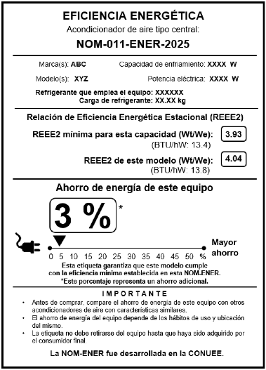 NORMA Oficial Mexicana NOM-011-ENER-2025, Eficiencia energética en acondicionadores de aire tipo central, paquete o dividido. Límites, métodos de prueba y etiquetado.