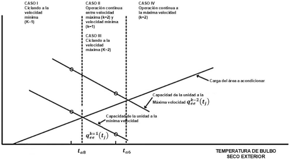 Figura 1b - Diagrama esquemático de varios modos de operación para la unidad de capacidad por etapas en modo frio