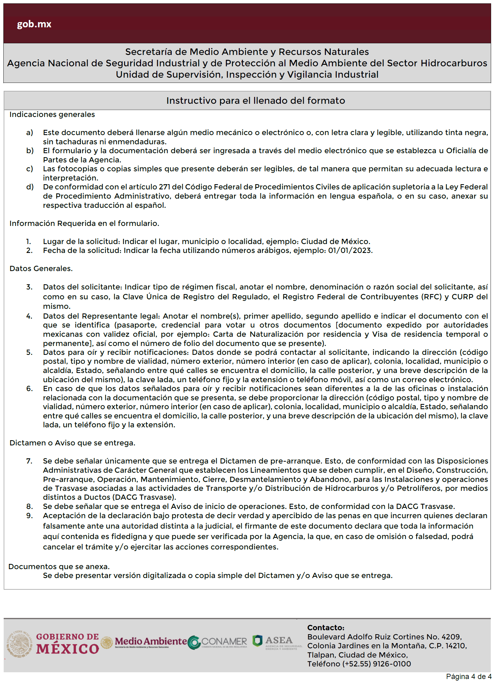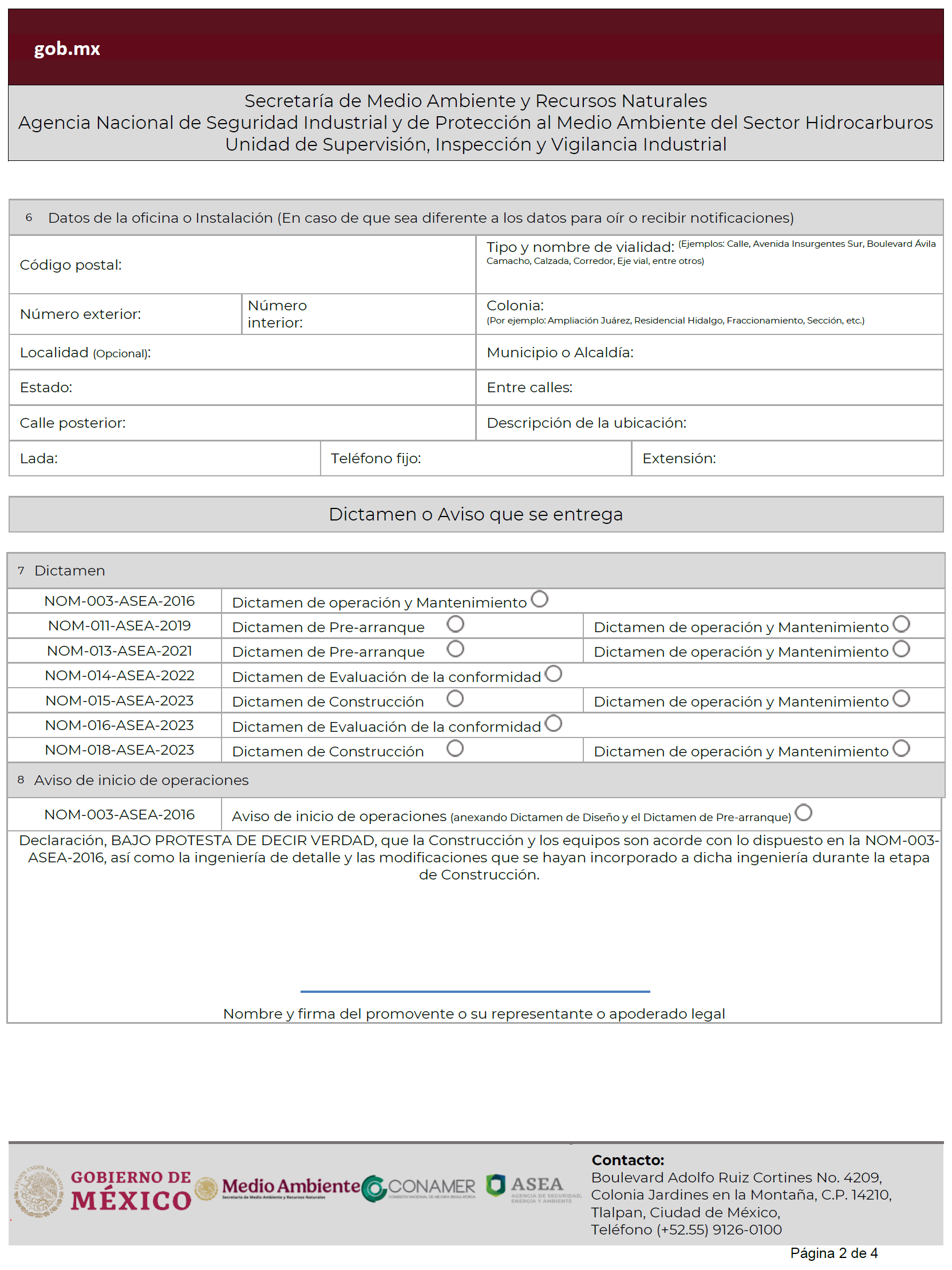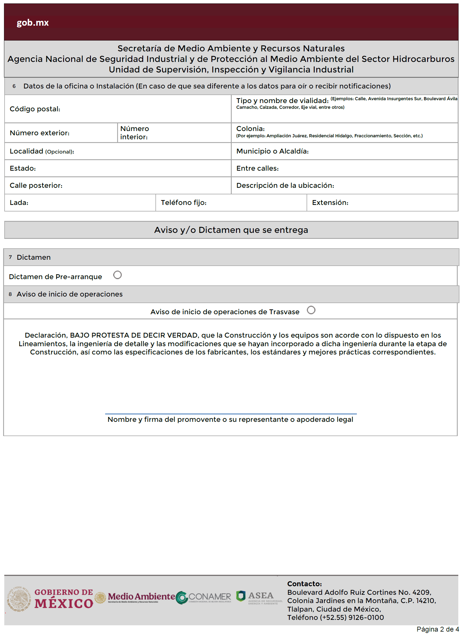 | 10 | ASEA-02-008-A | Aviso de inicio de operaciones del Sector Hidrocarburos |